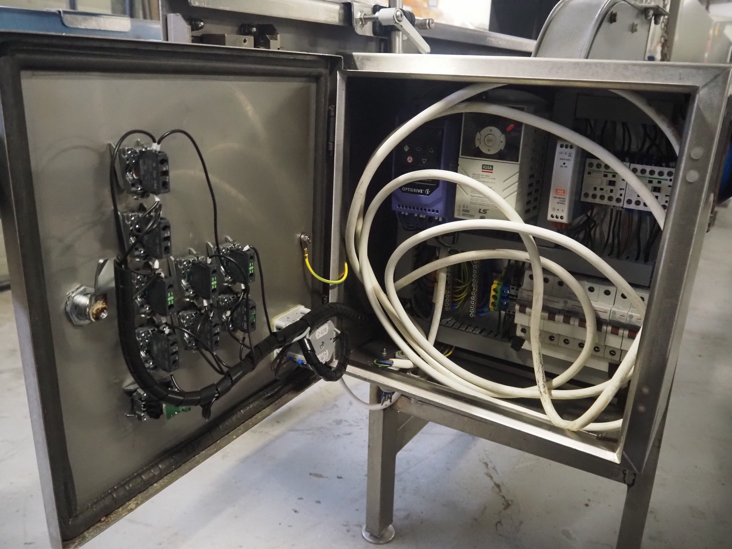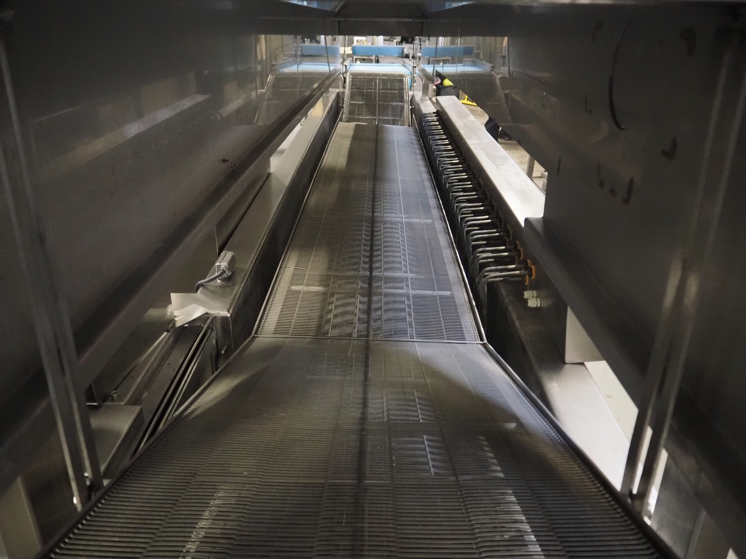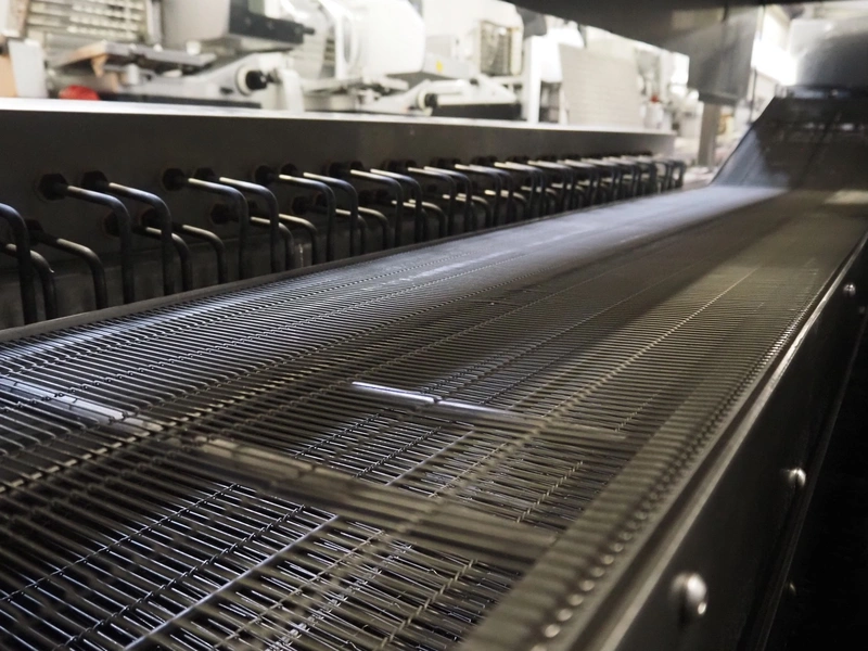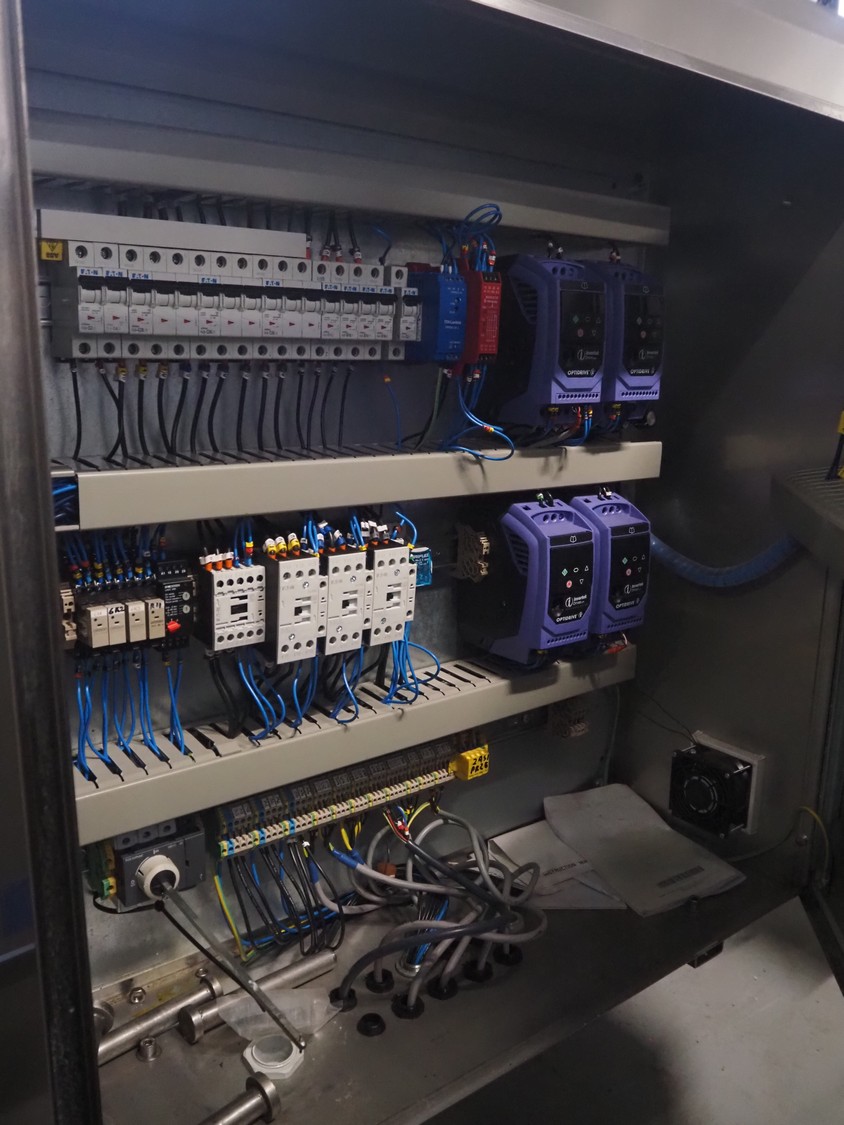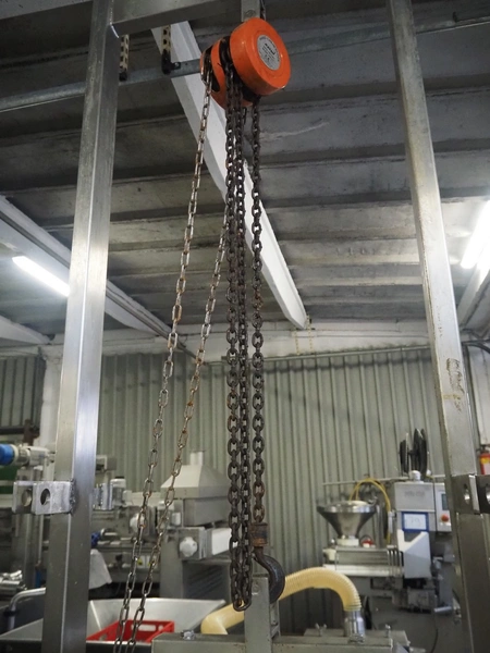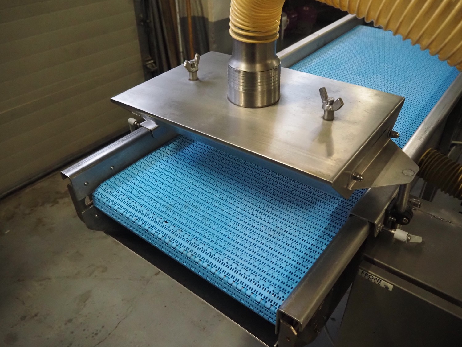Bulldog frying tunnel, s/s mesh belt, belt width: 400 mm, total dimensions: 5600 mm x 1200 mm x 2800. Including Normit belt with blower, type: CC air-cooling belt, number: 298114, year of construction: 2017, plastic belt, belt width: 495 mm, total dimensions: 1500 mm x 1100 mm x 1300 mm.