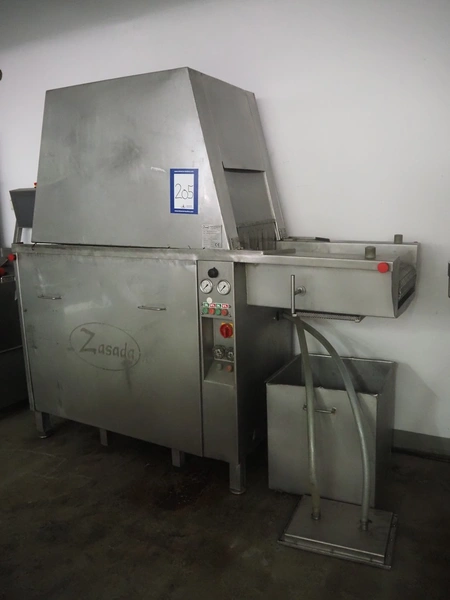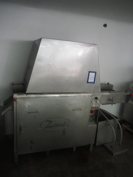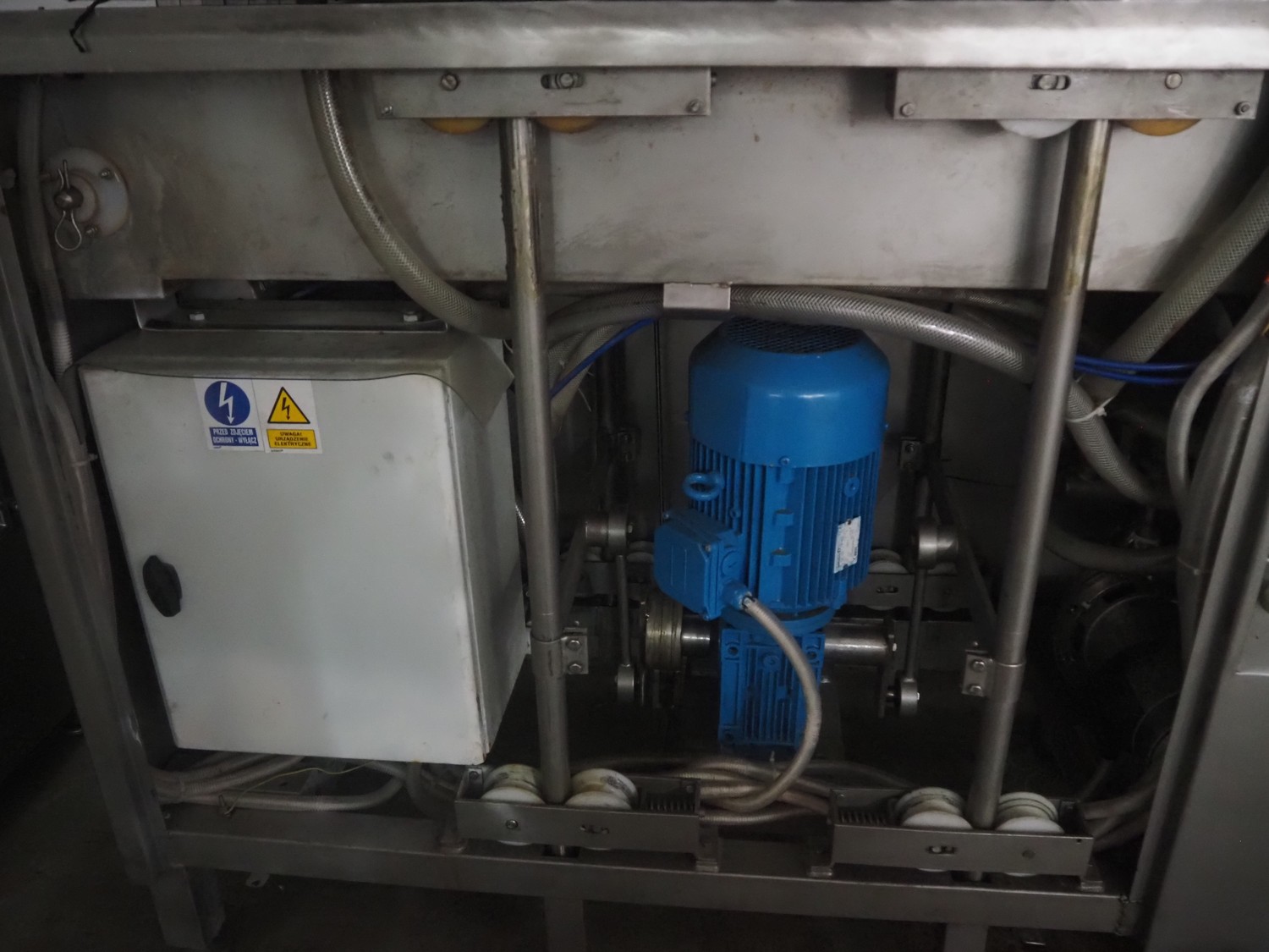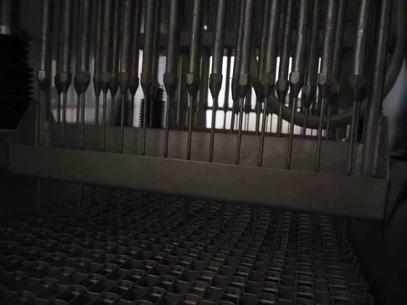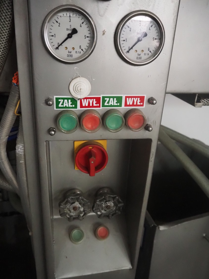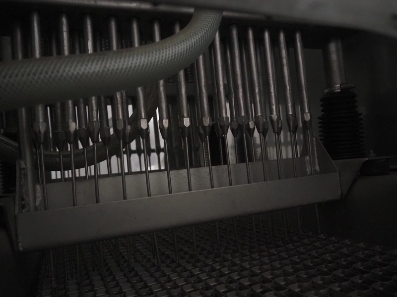 Zasada ZUP SP. z.o.o. injector, model: NASTRZYKIWARKA ZASADA, type: NAS 50, year of construction: 2012, 400 V, 3 Ph, 50 Hz, 5.5 kW, 50 needles, s/s belt, belt width: 430 mm, clearance: 430 mm x 180 mm, total dimensions: 2100 mm x 730 mm x 1970 mm.