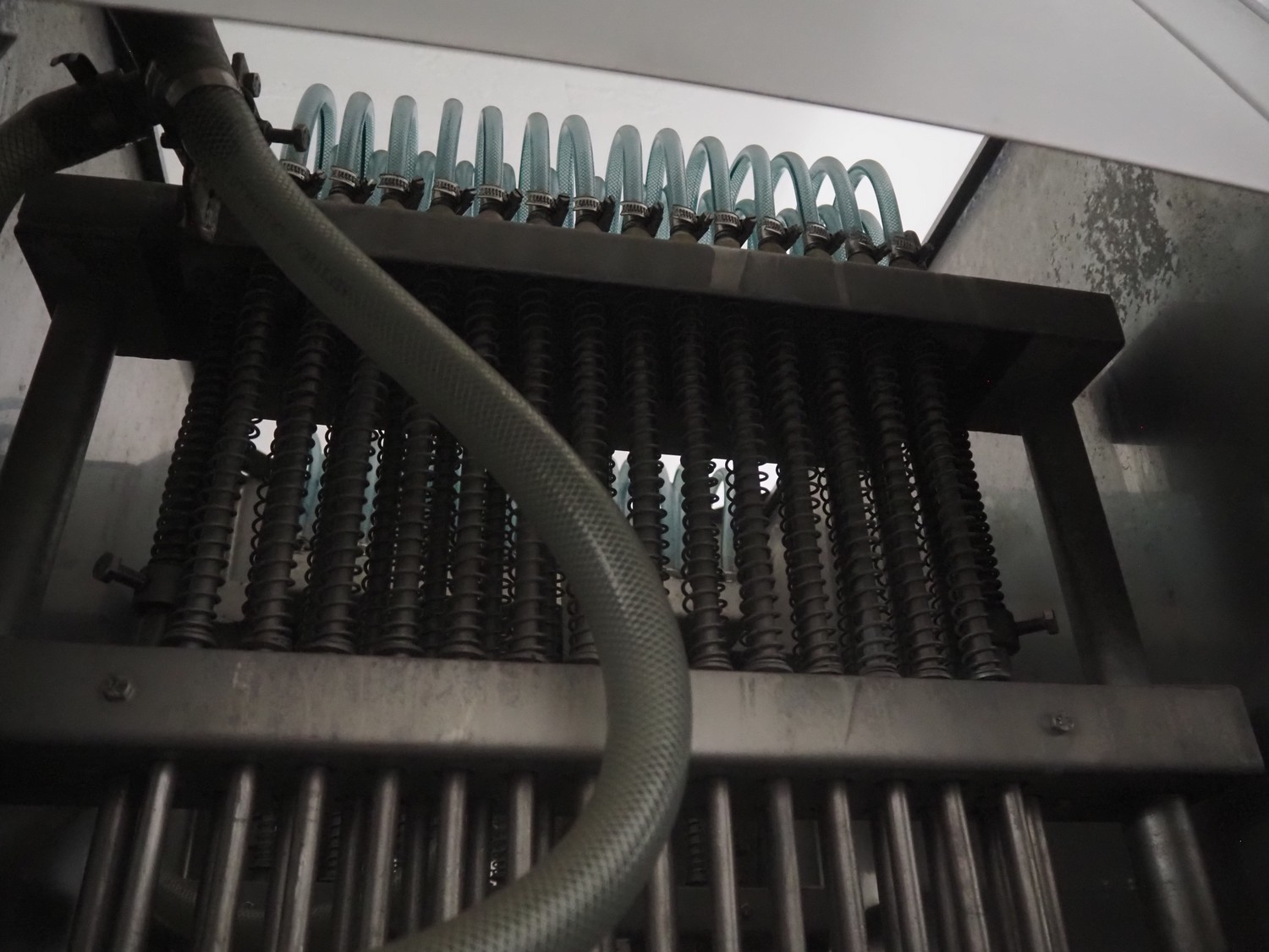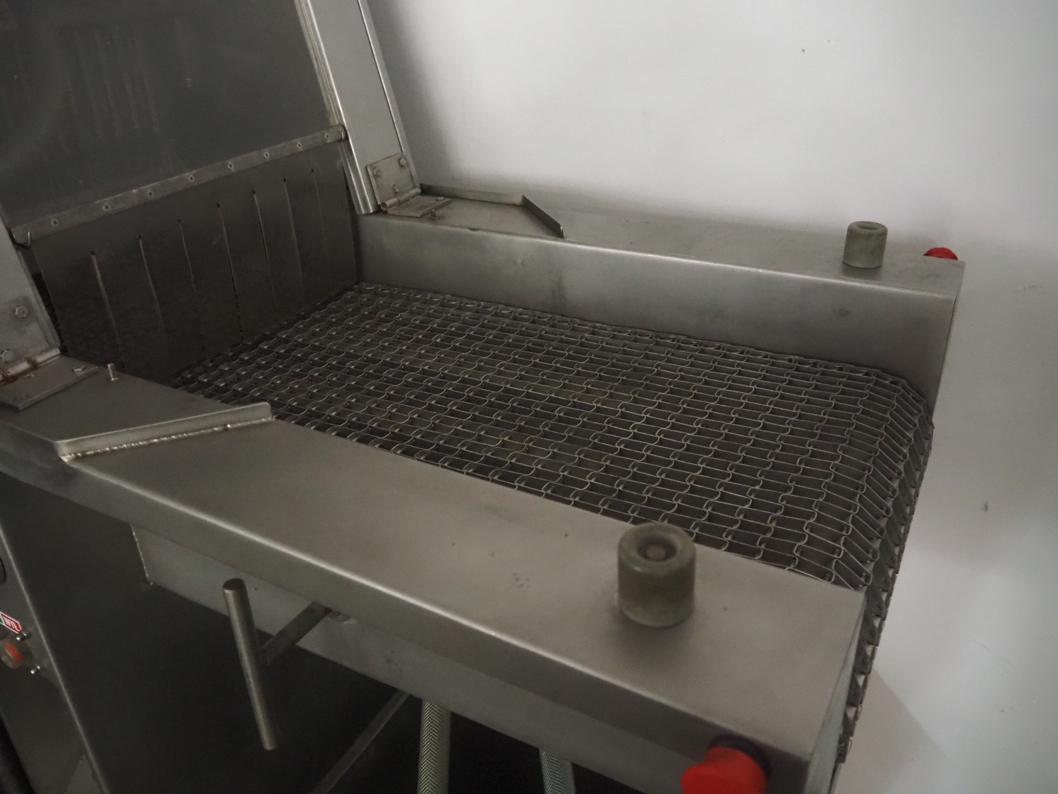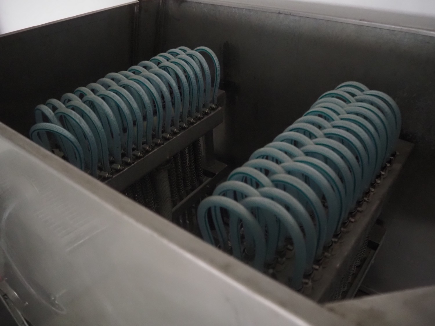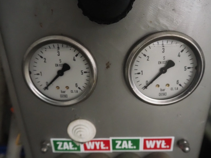 Zasada ZUP SP. z.o.o. injector, model: NASTRZYKIWARKA ZASADA, type: NAS 50, year of construction: 2012, 400 V, 3 Ph, 50 Hz, 5.5 kW, 50 needles, s/s belt, belt width: 430 mm, clearance: 430 mm x 180 mm, total dimensions: 2100 mm x 730 mm x 1970 mm.