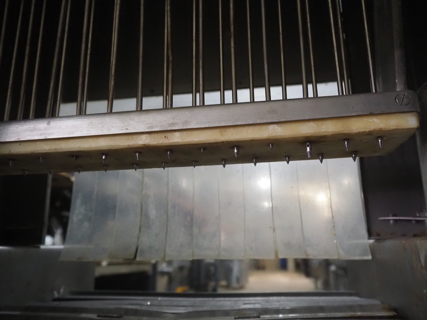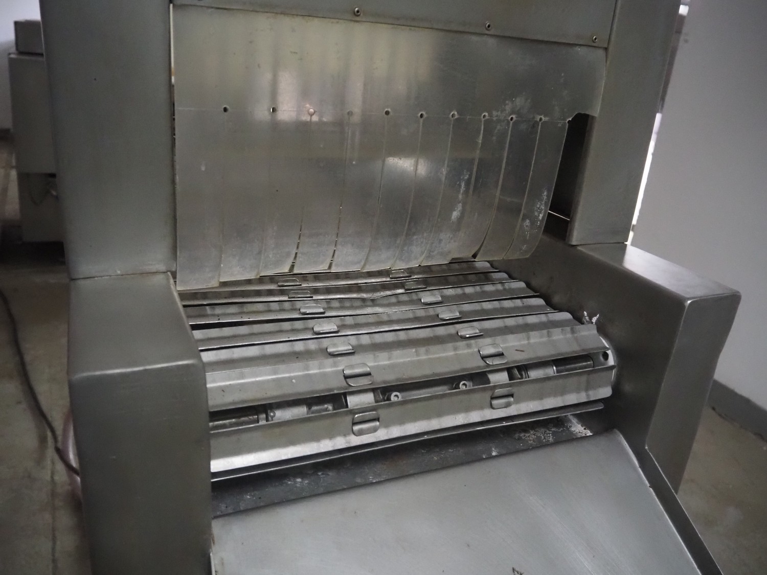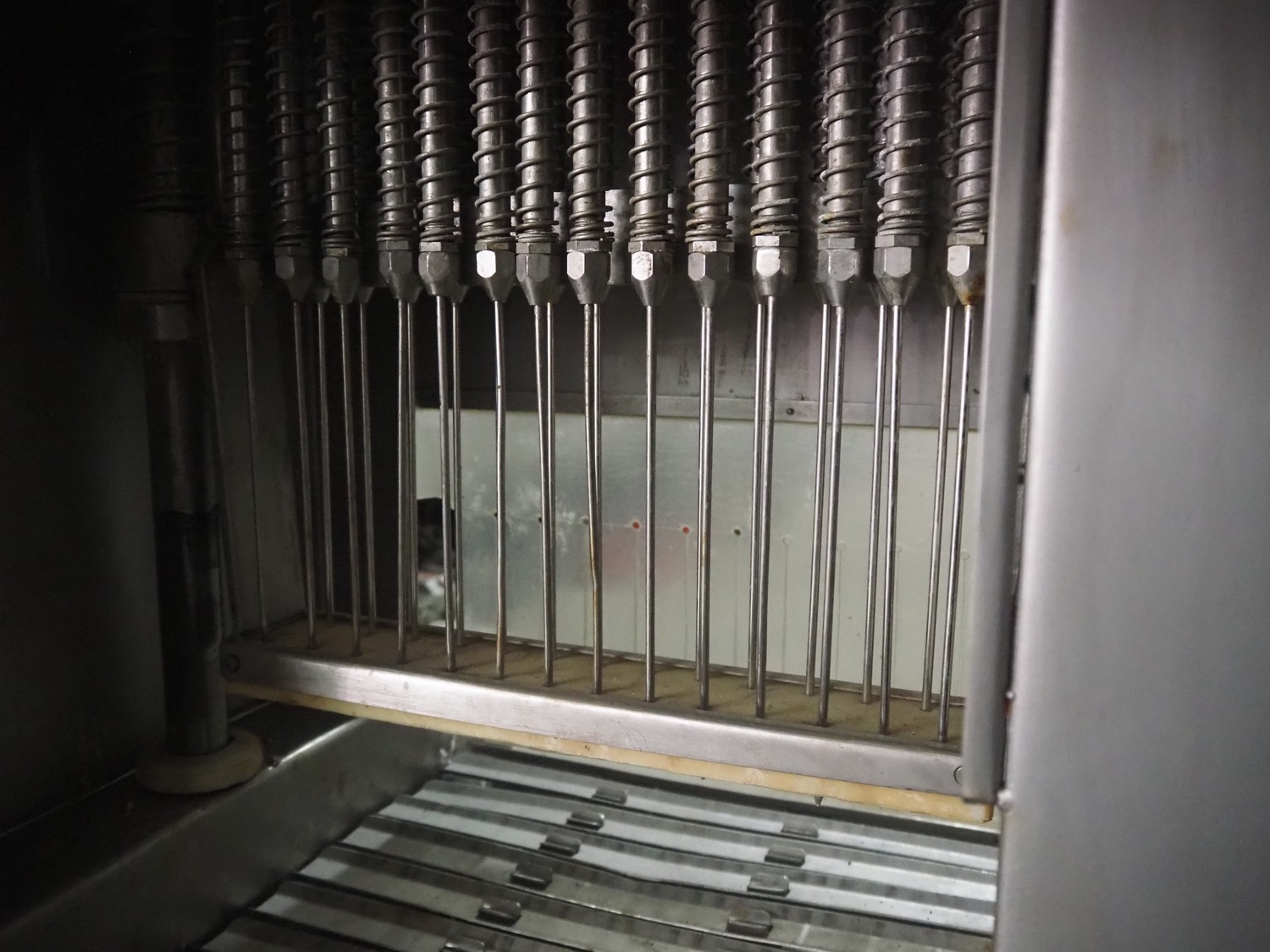 S/s injector, 27 needles, s/s belt, belt width: 400 mm, clearance: 400 mm x 210 mm, total dimensions: 1230 mm x 600 mm x 1850 mm.