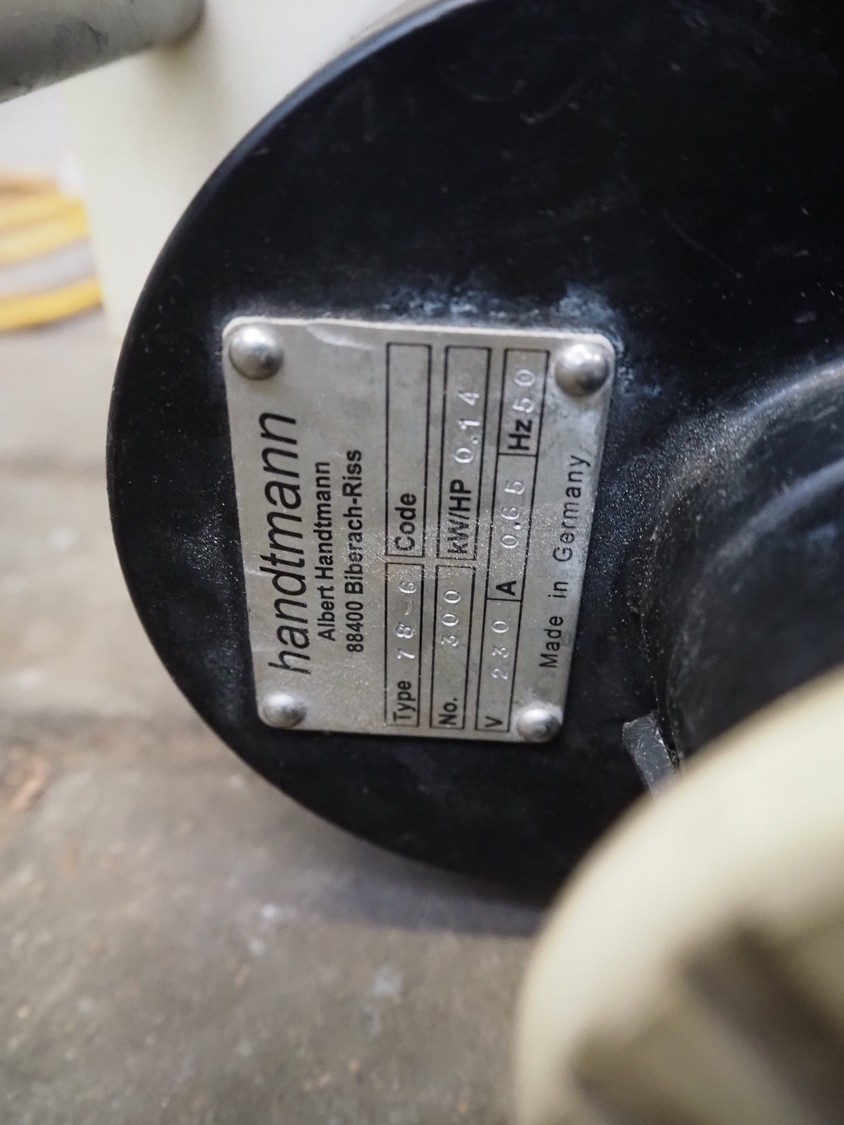 Handtmann case spooling device, type: 78-6, number: 300, 230 V, 50 Hz, 0.65 A, 0.14 kW, dimensions: 500 mm x 200 mm x 220 mm.