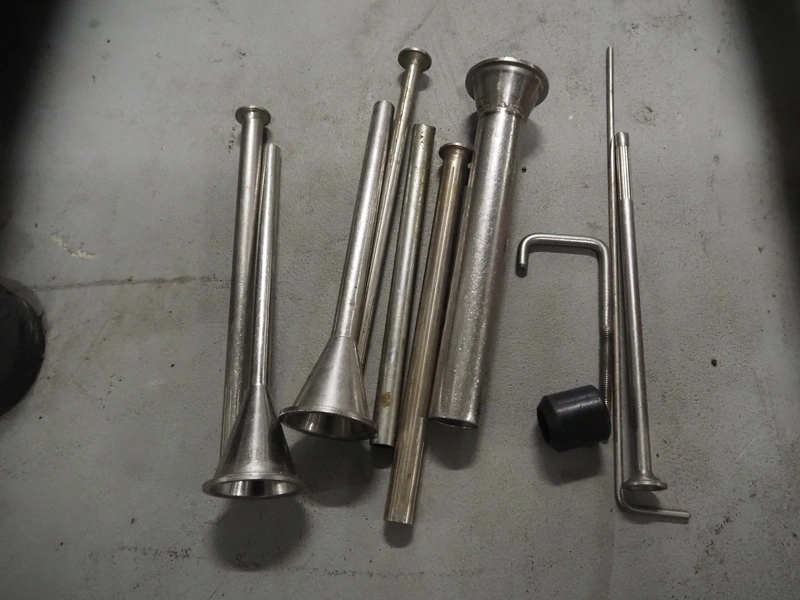 Vemag Maschinenbau GmbH linking attachment and case holding device, number: 8590049, dimensions: 640 mm x 400 mm x 340 mm. Including extra filling pipes, different sizes.