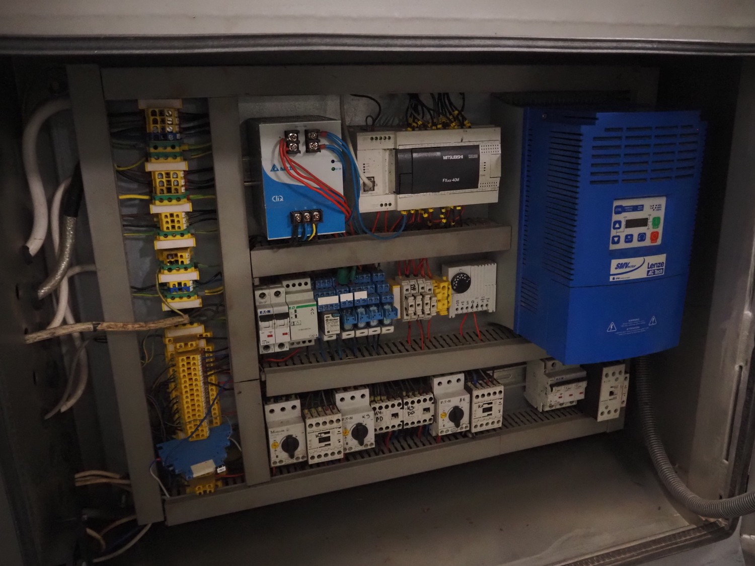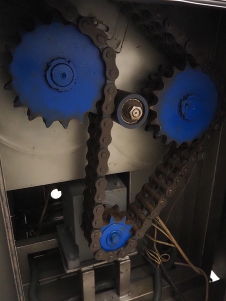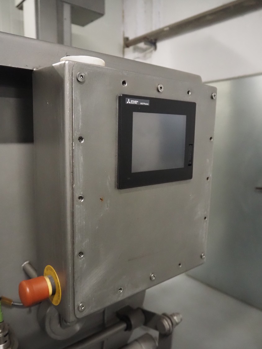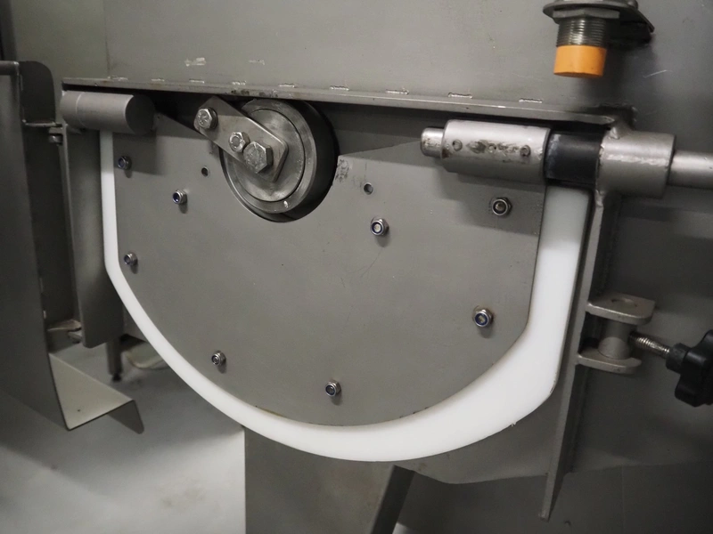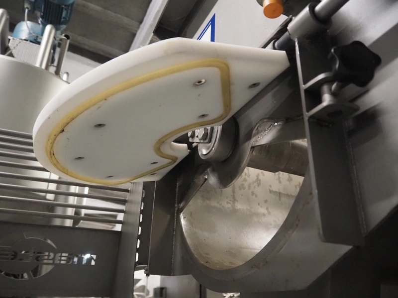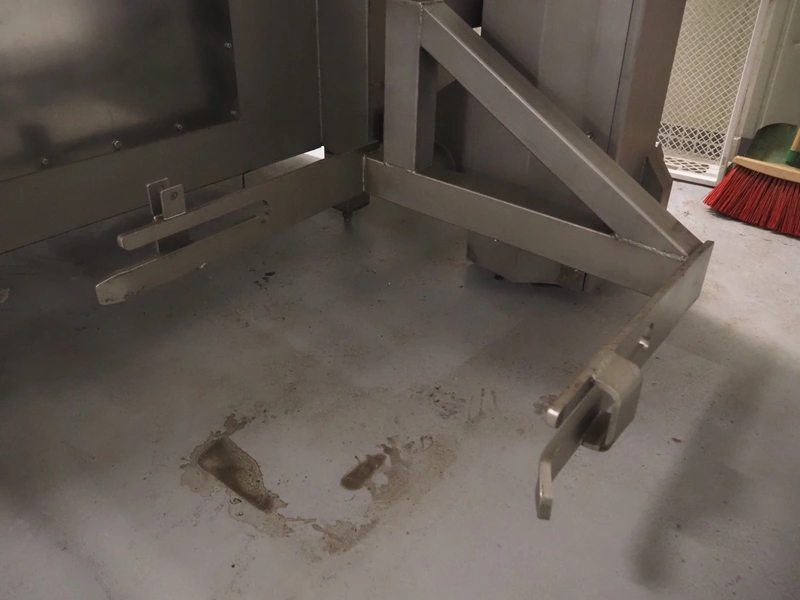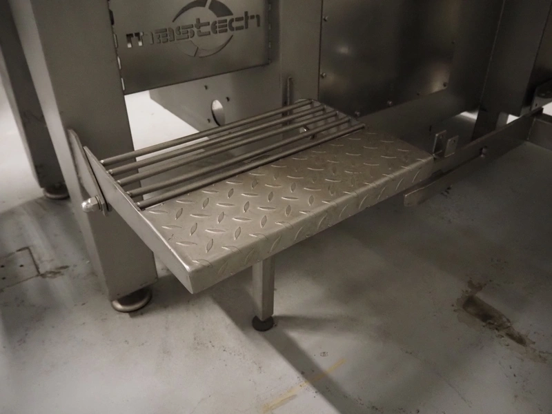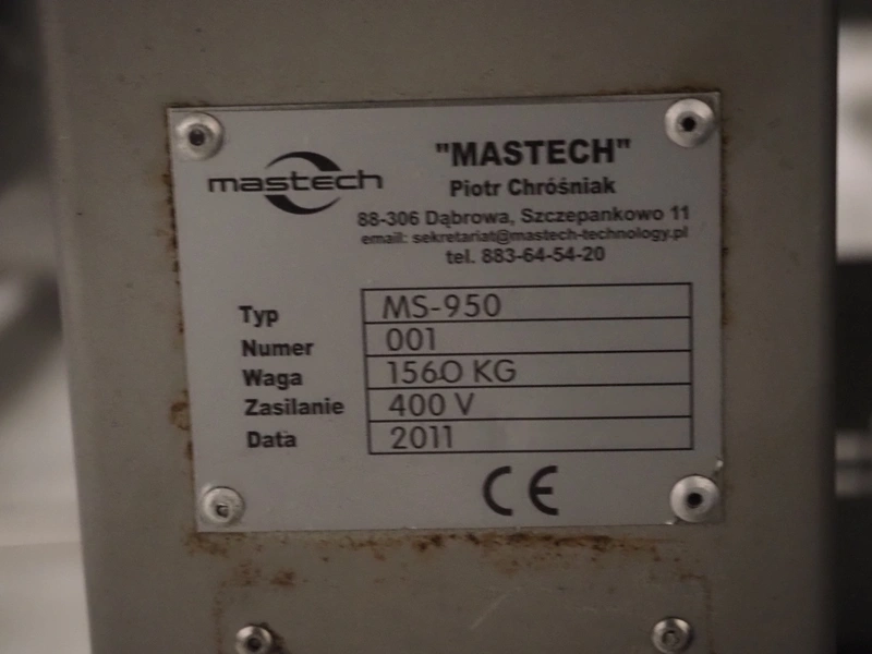 Mastech double shaft paddle mixer with lifter for 200 liter meat bins, type: MS-950, number: 001, year of construction: 2011, 400 V, weight: 1560 kg, volume: 950 liter, length paddles: (2x) 1500 mm, total dimensions: 2060 mm x 2100 mm x 2860 mm.