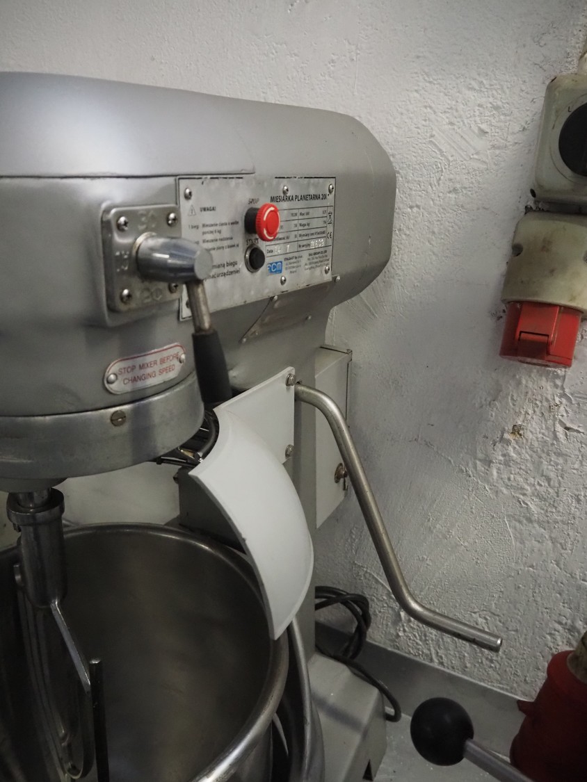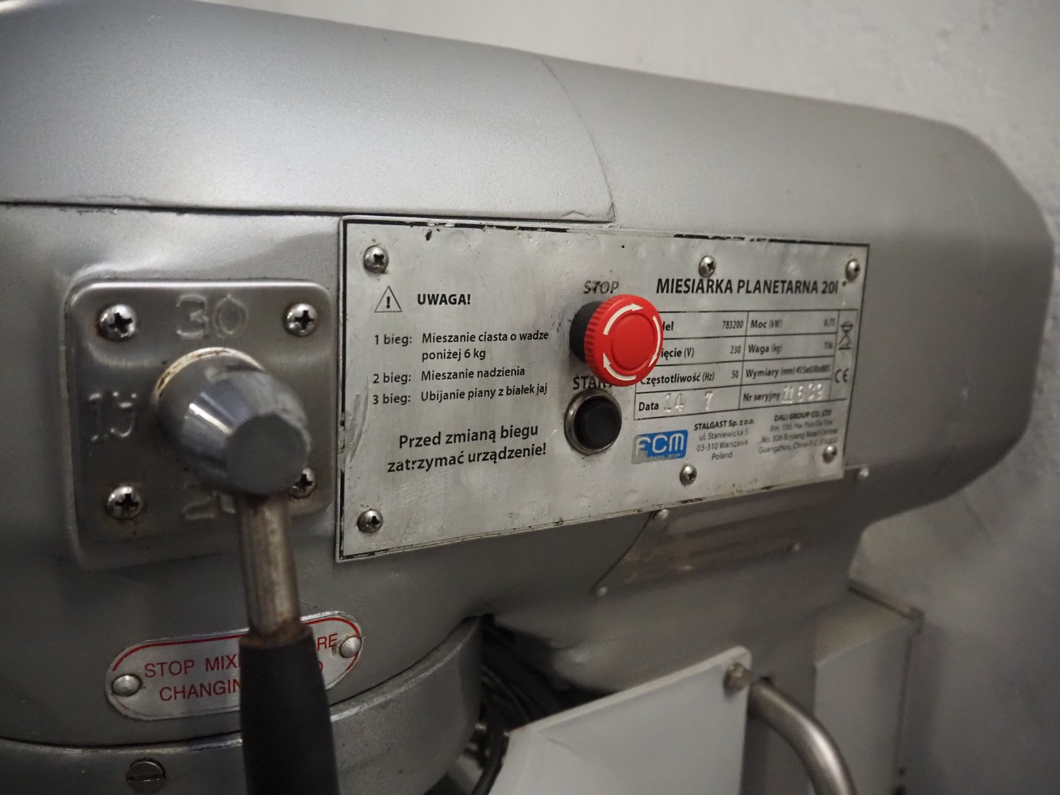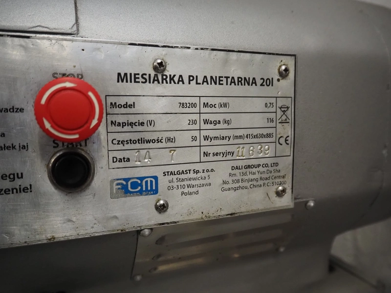 Stalgast SP. Z.o.o. table model mixer, model: 783200, number: 11639, year of construction: 07-2014, 230 V, 50 Hz, 0.75 kW, 116 kg, volume: 20 liter, dimensions: 400 mm x 550 mm x 750 mm. Including paddle and spiral.