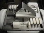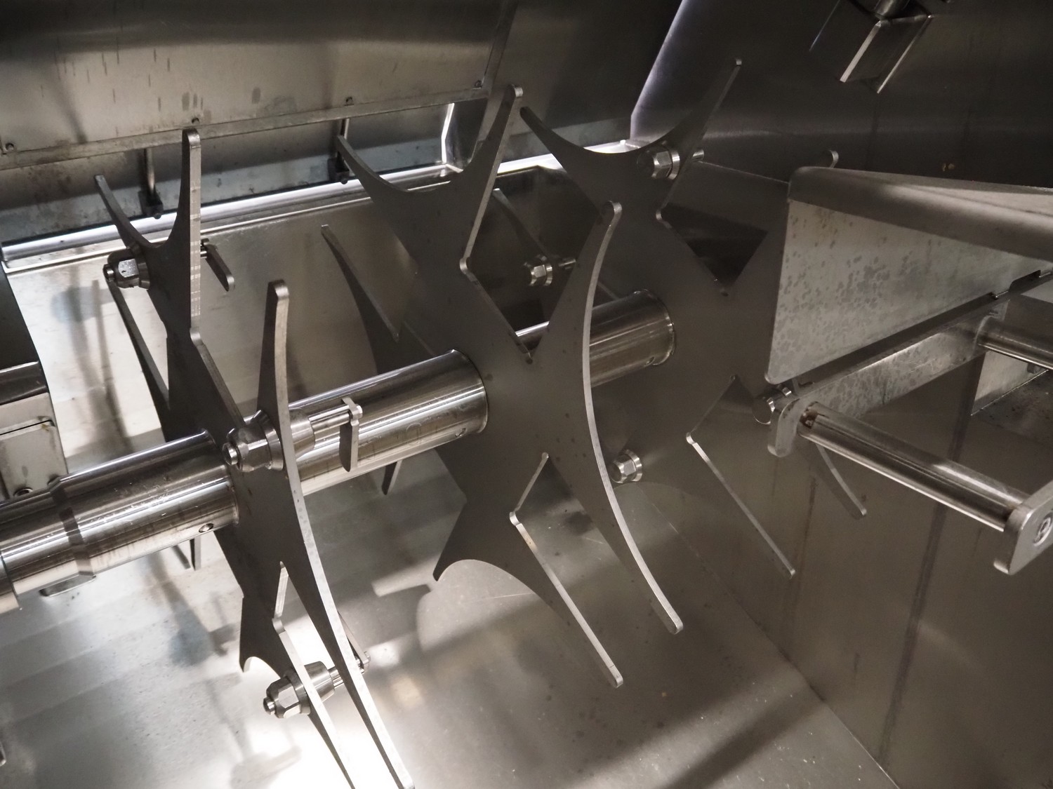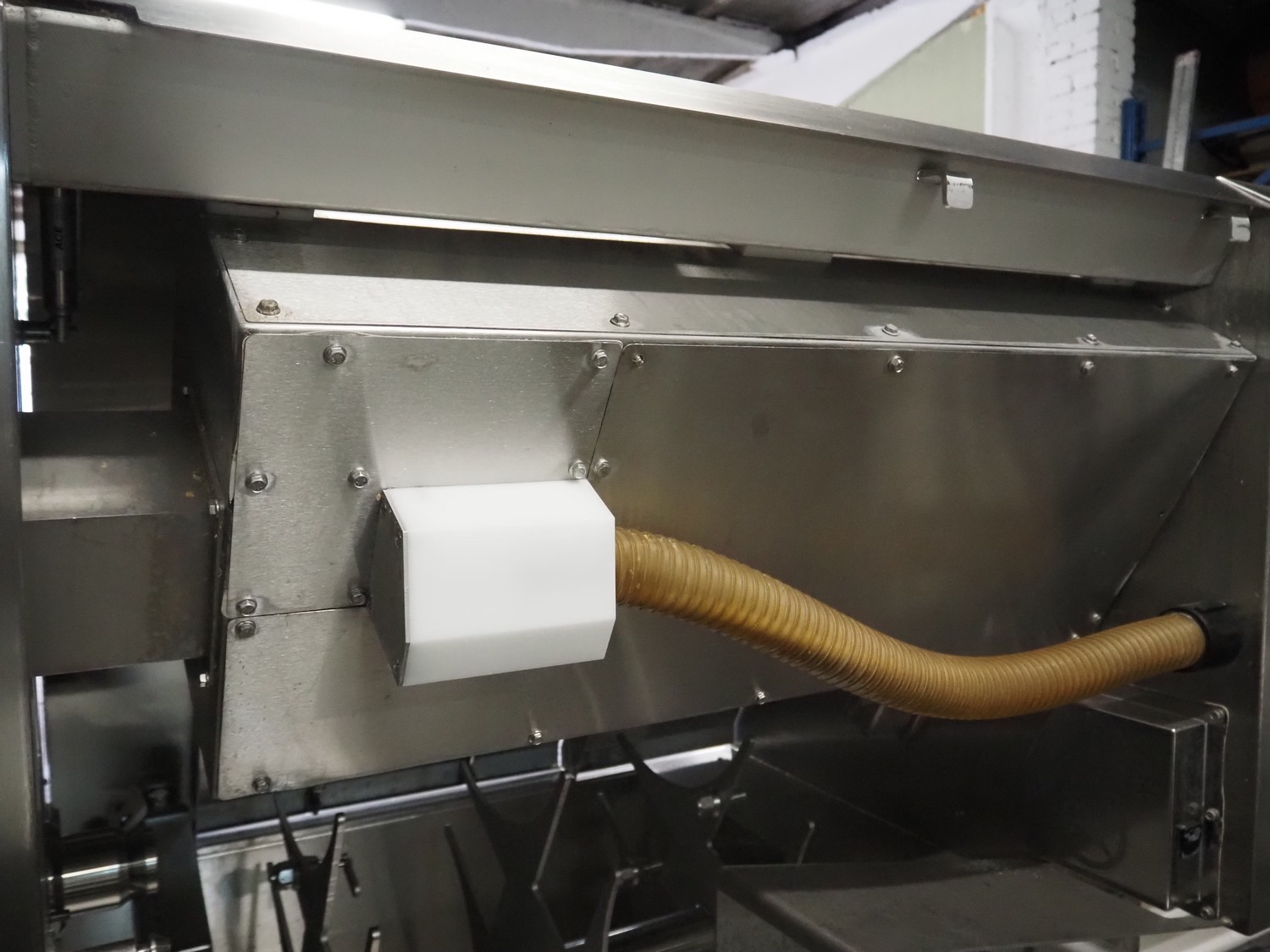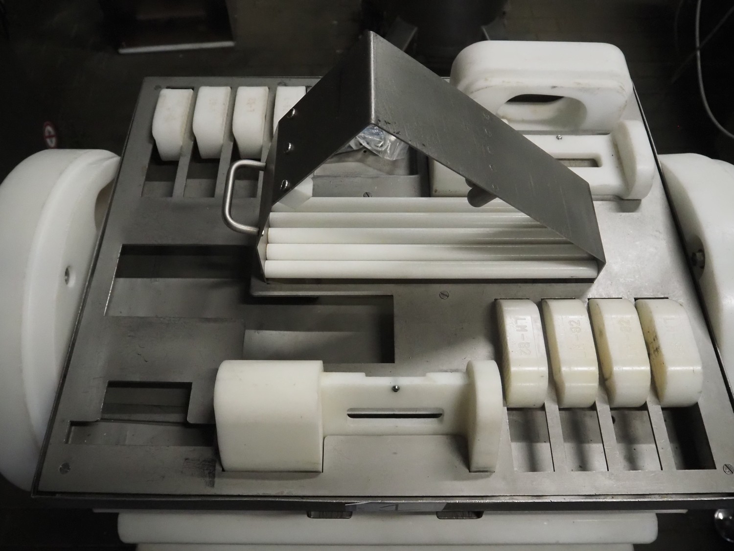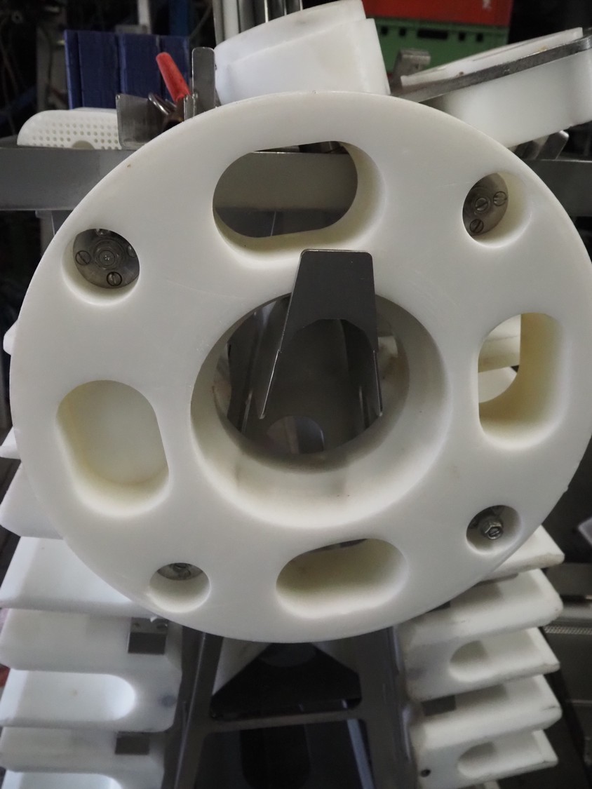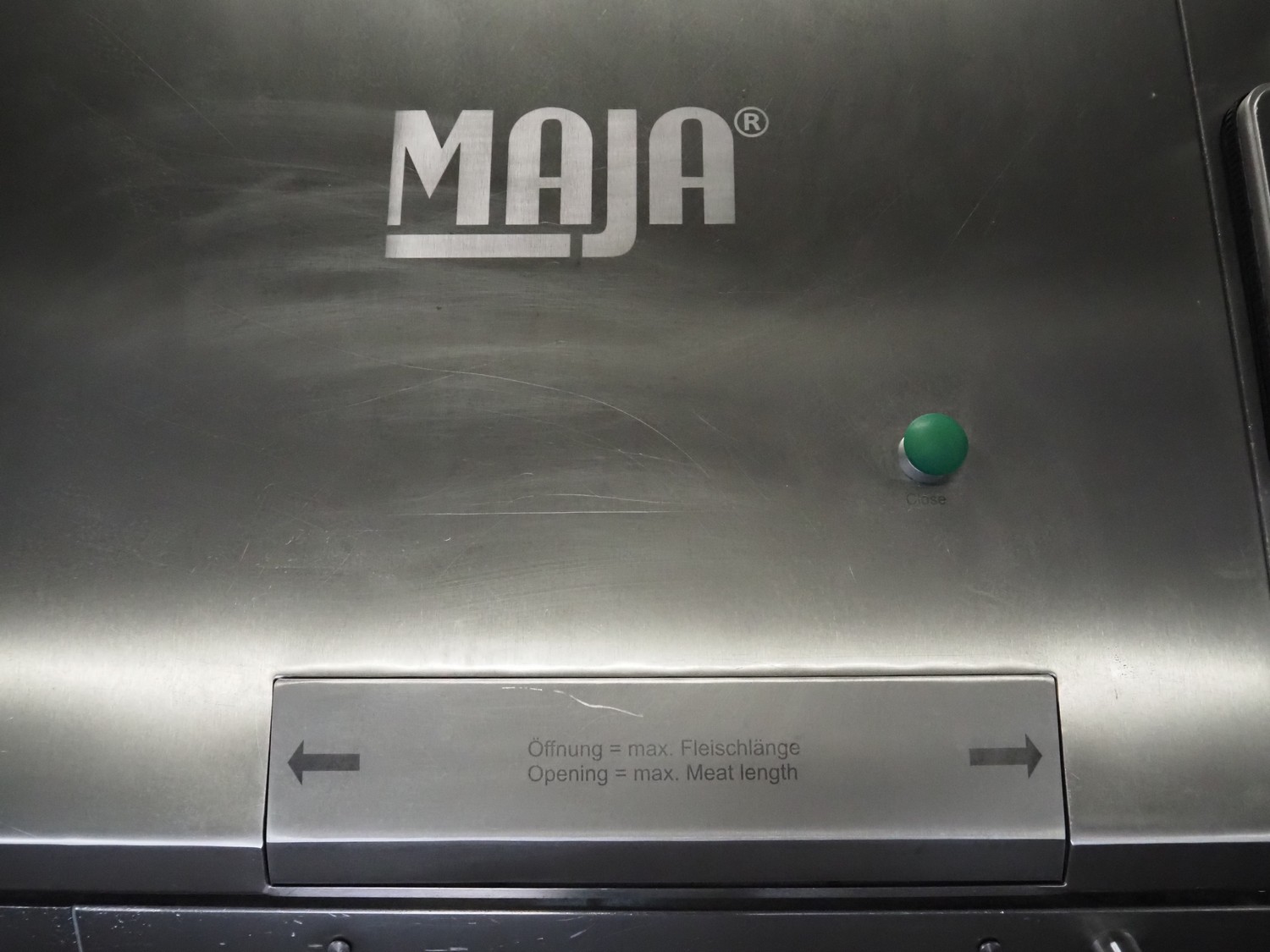 Maja portion cutter, type: C-01200, outfeed clearance: 200 mm x 100 mm, total dimensions: 1890 mm x 1070 mm x 1850 mm. Including 2 trolleys with dyes, knives and other spare parts, dimensions dyes: Ø 480 mm, dimensions knives: Ø 280 mm, total dimensions trolley: (2x) 950 mm x 800 mm x 1480 mm.