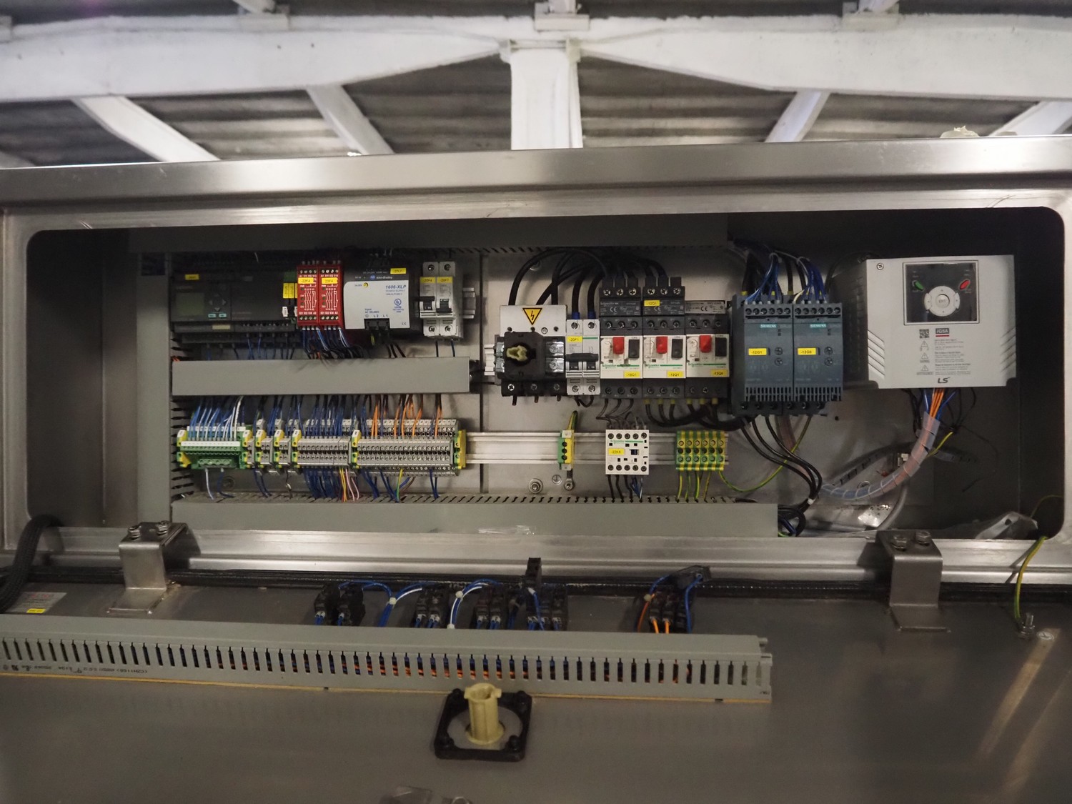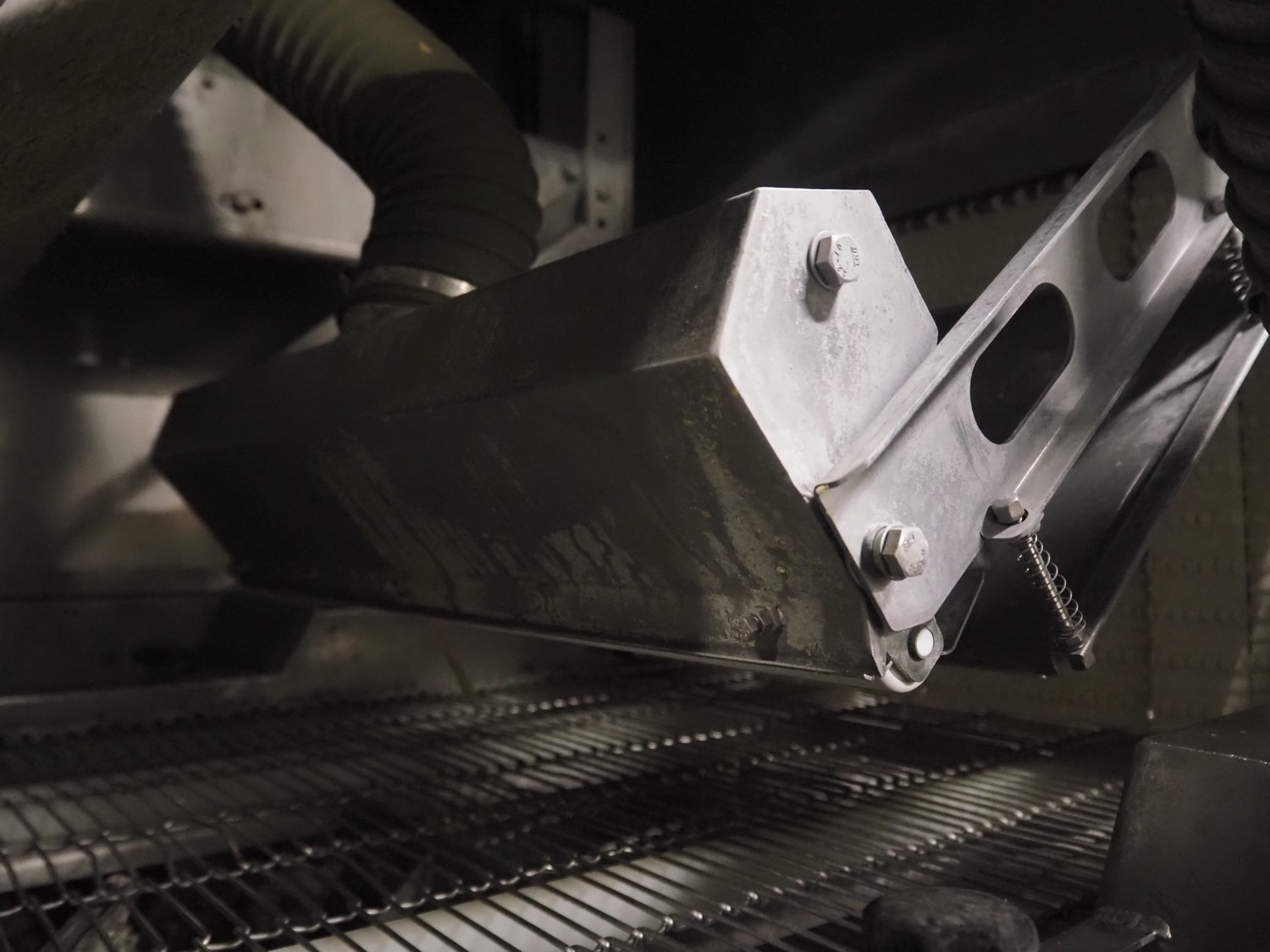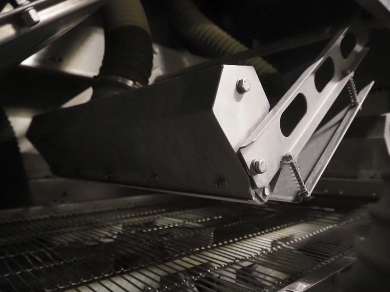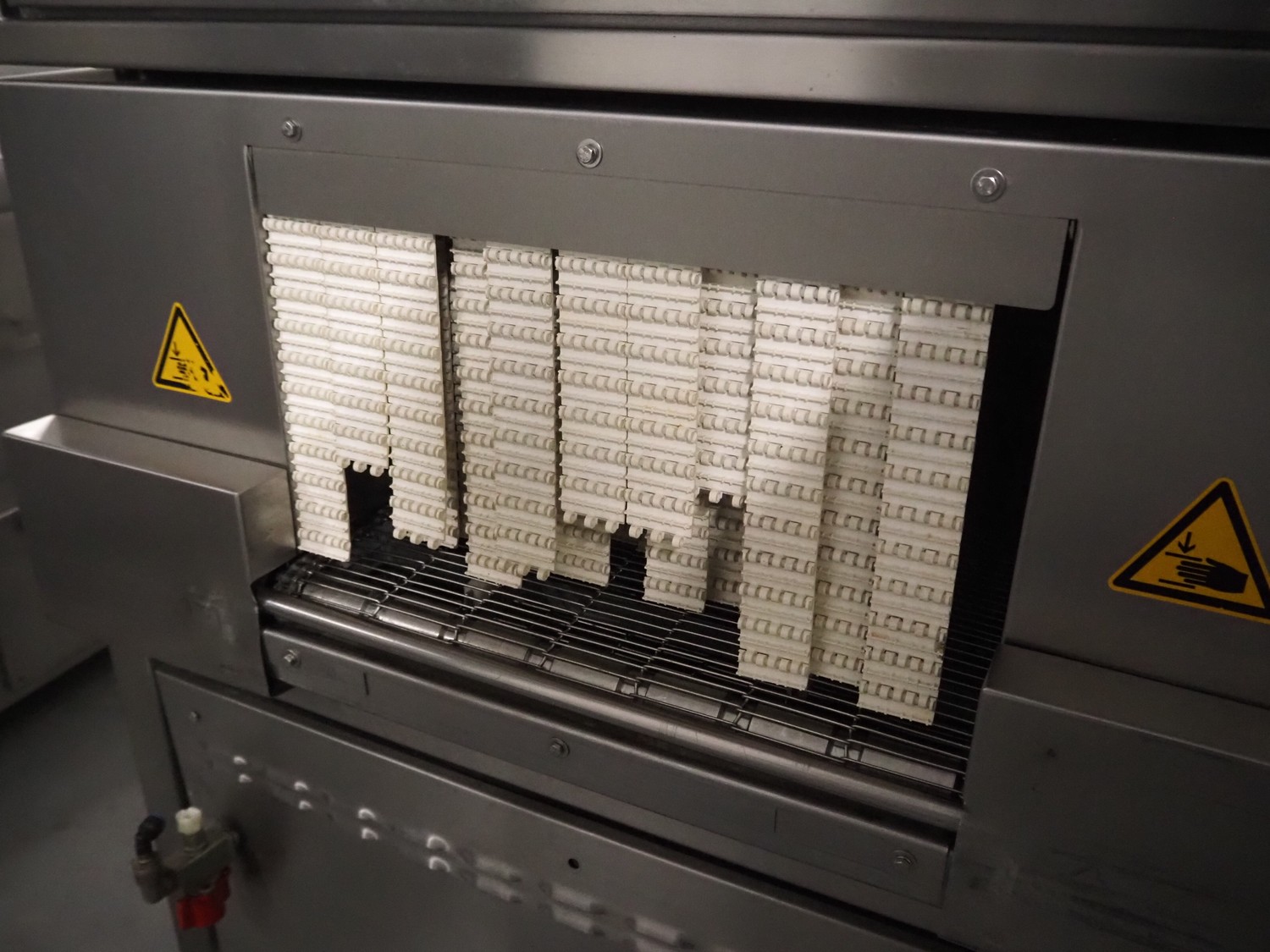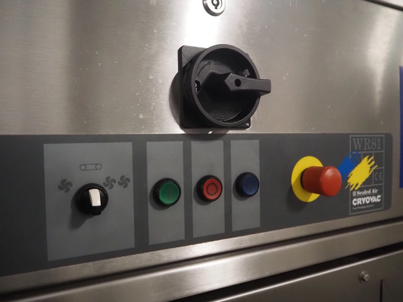 Cryovac drying tunnel, model: WR81, s/s mesh belt, belt width: 550 mm, clearance: 560 mm x 300 mm, (3x) blowers, working width blower: (3x) 550 mm, total dimensions: 2050 mm x 1170 mm x 1700 mm.