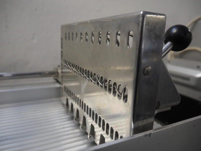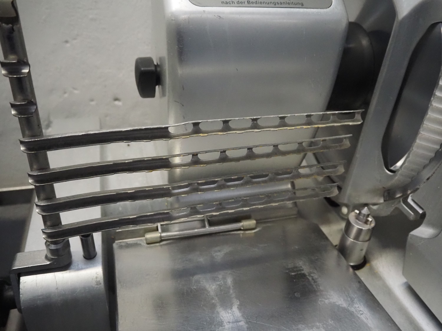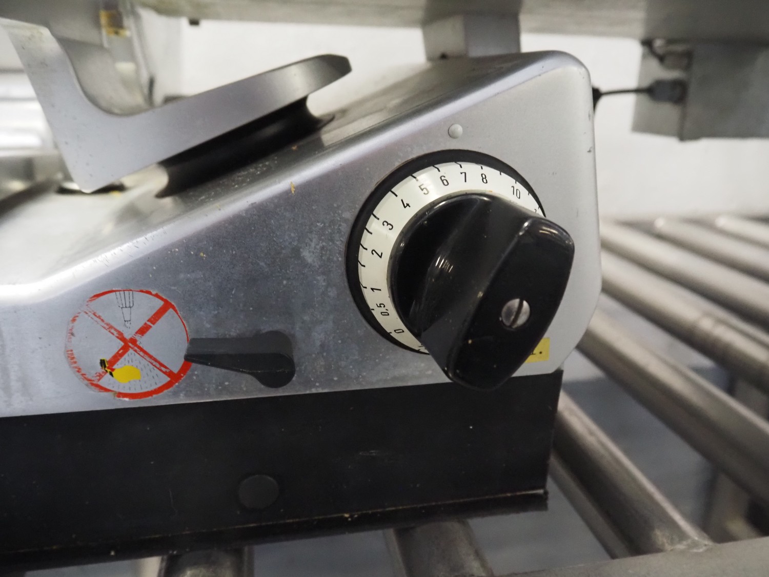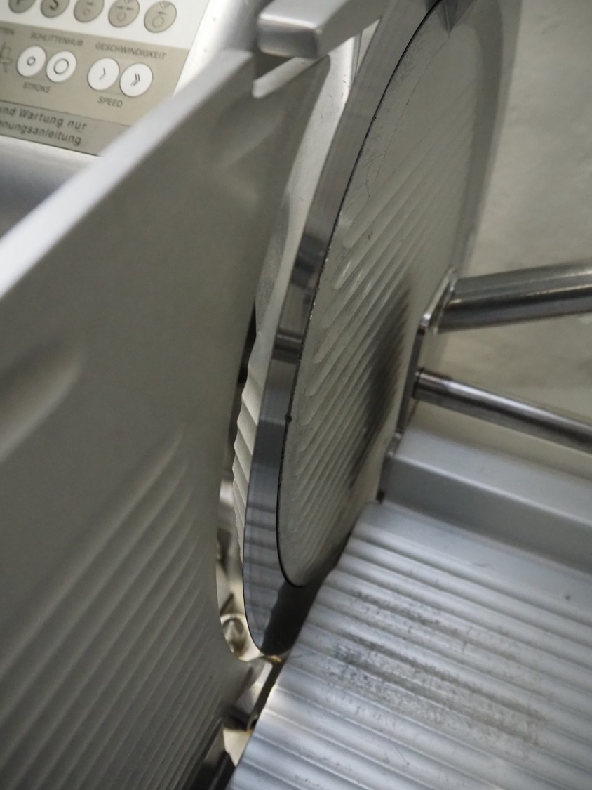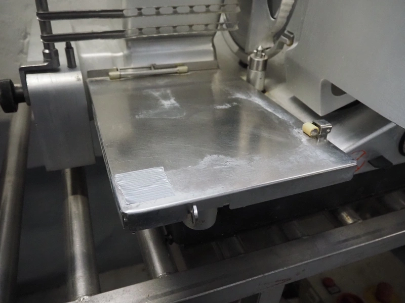 Bizerba automatic slicer, model: VS 12 D-V/R, number: 2127412, year of construction: 2003, 230/400 V, 3 Ph, 50 Hz, 1.9/1.38 A, 0.552 kW, dimensions: 1000 mm x 650 mm x 500 mm.