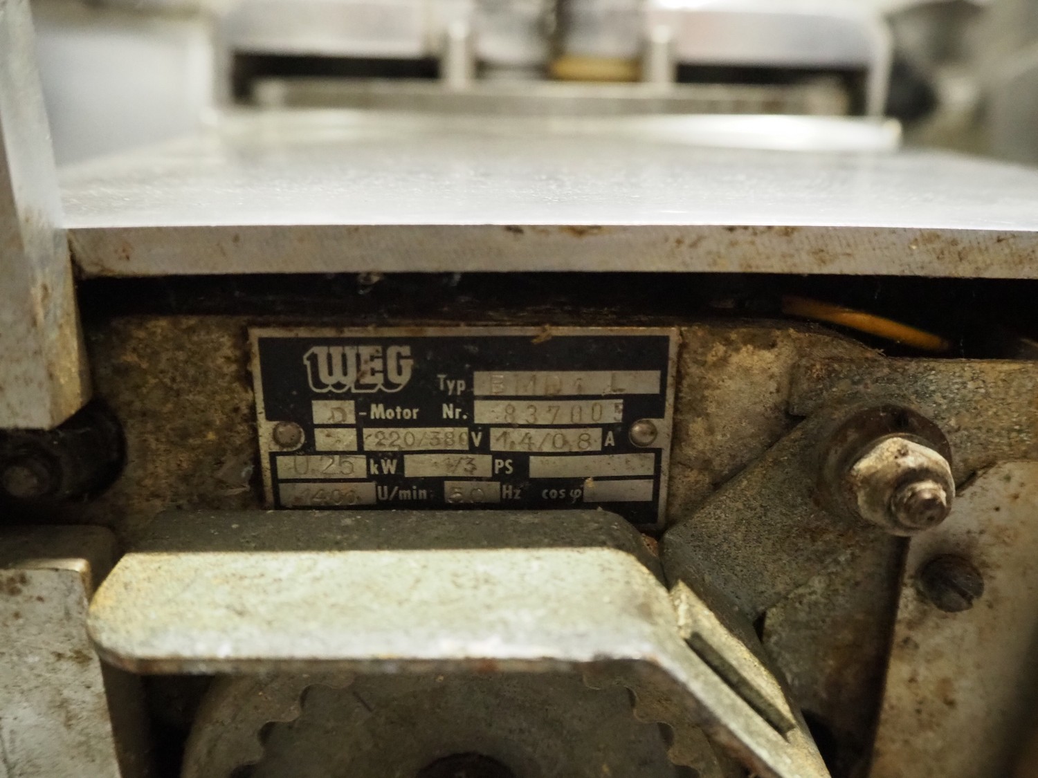 WEG table model tenderizer, number: 174603, working width: 180 mm, 42 knives, distance between knives: 4 mm, total dimensions: 400 mm x 230 mm x 430 mm.