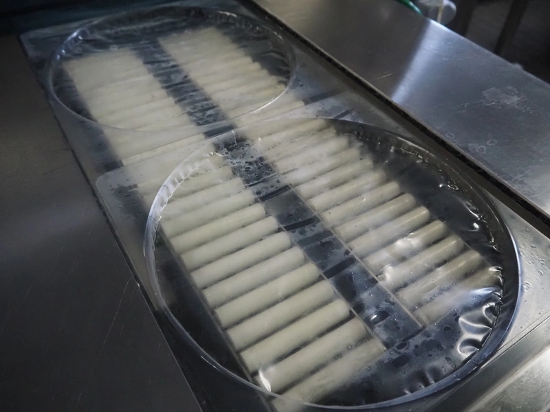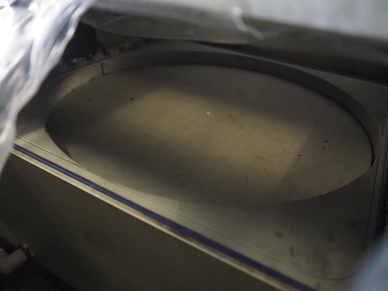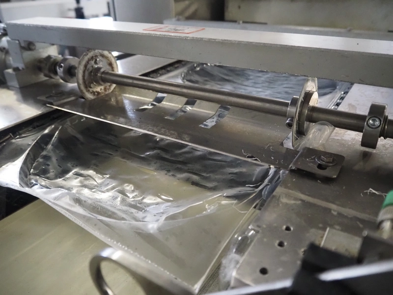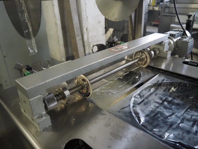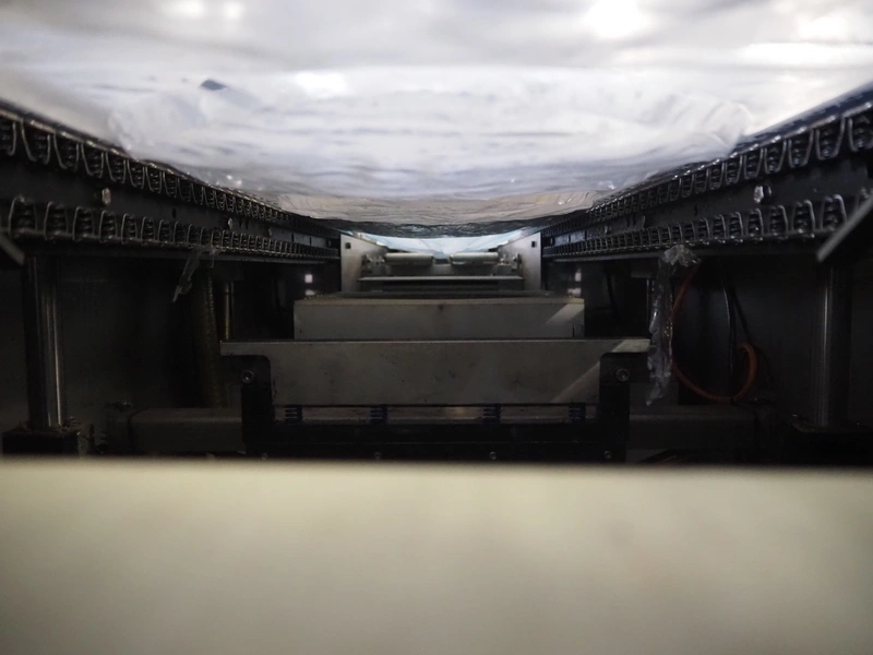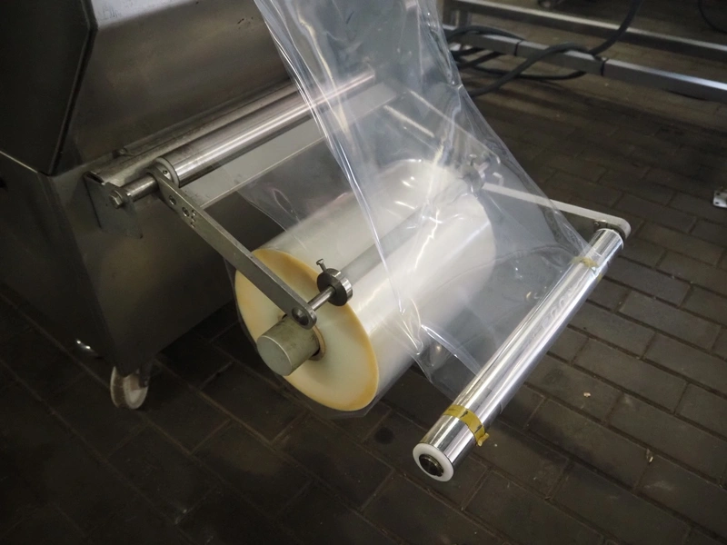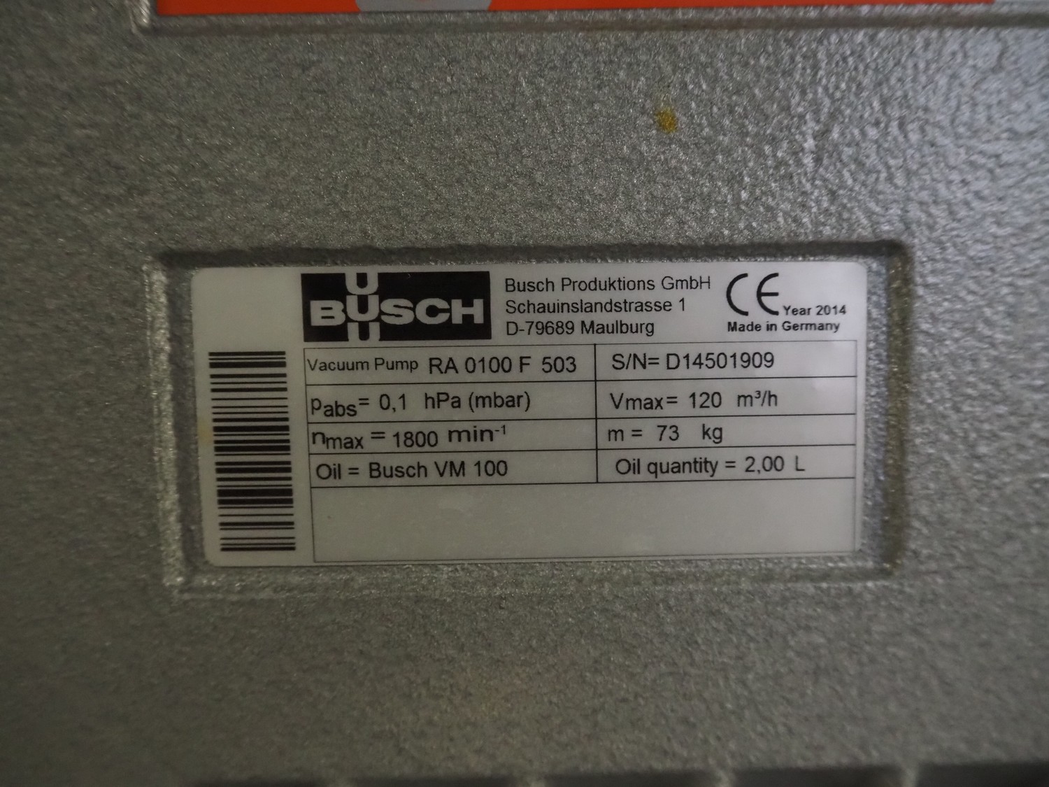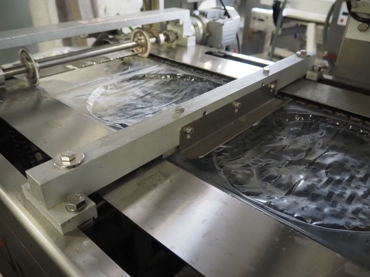 Ulma thermoformer, model: TF-MINI, number: 3011632, year of construction: 2008, 380 V, 50 Hz, 15 A, 17 kW, bottom film width: 330 mm, dye: Ø 280 mm, plastic outfeed belt, belt width: 265 mm, Busch vacuum pump, type: RA 0100 F 503, capacity: 120 m³ per hour, total dimensions: 3650 mm x 950 mm x 1600 mm.