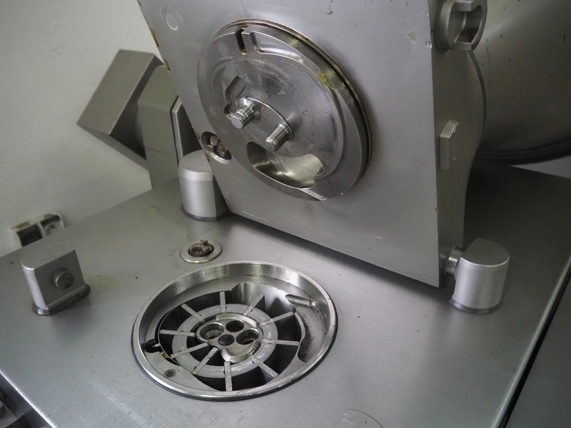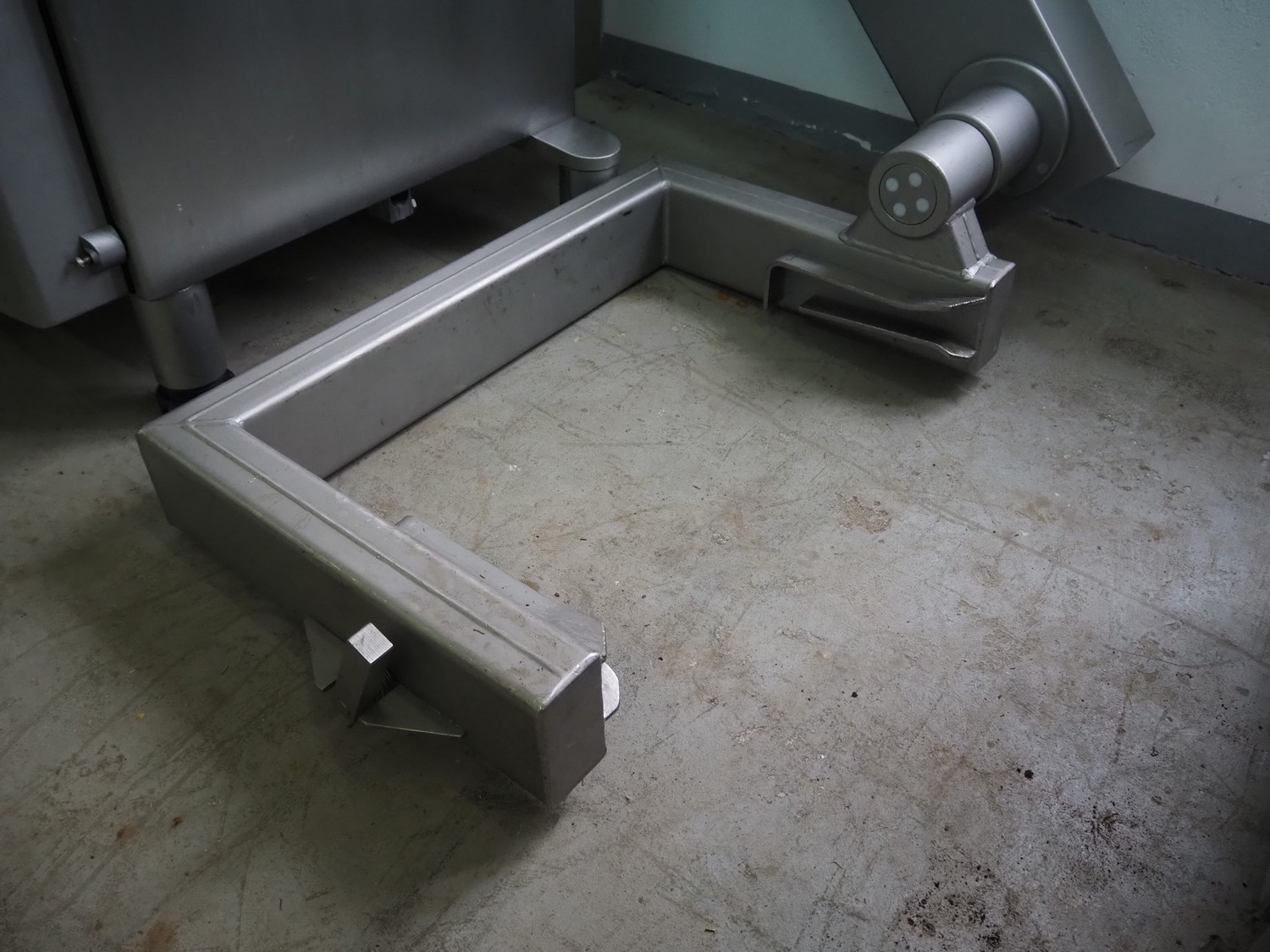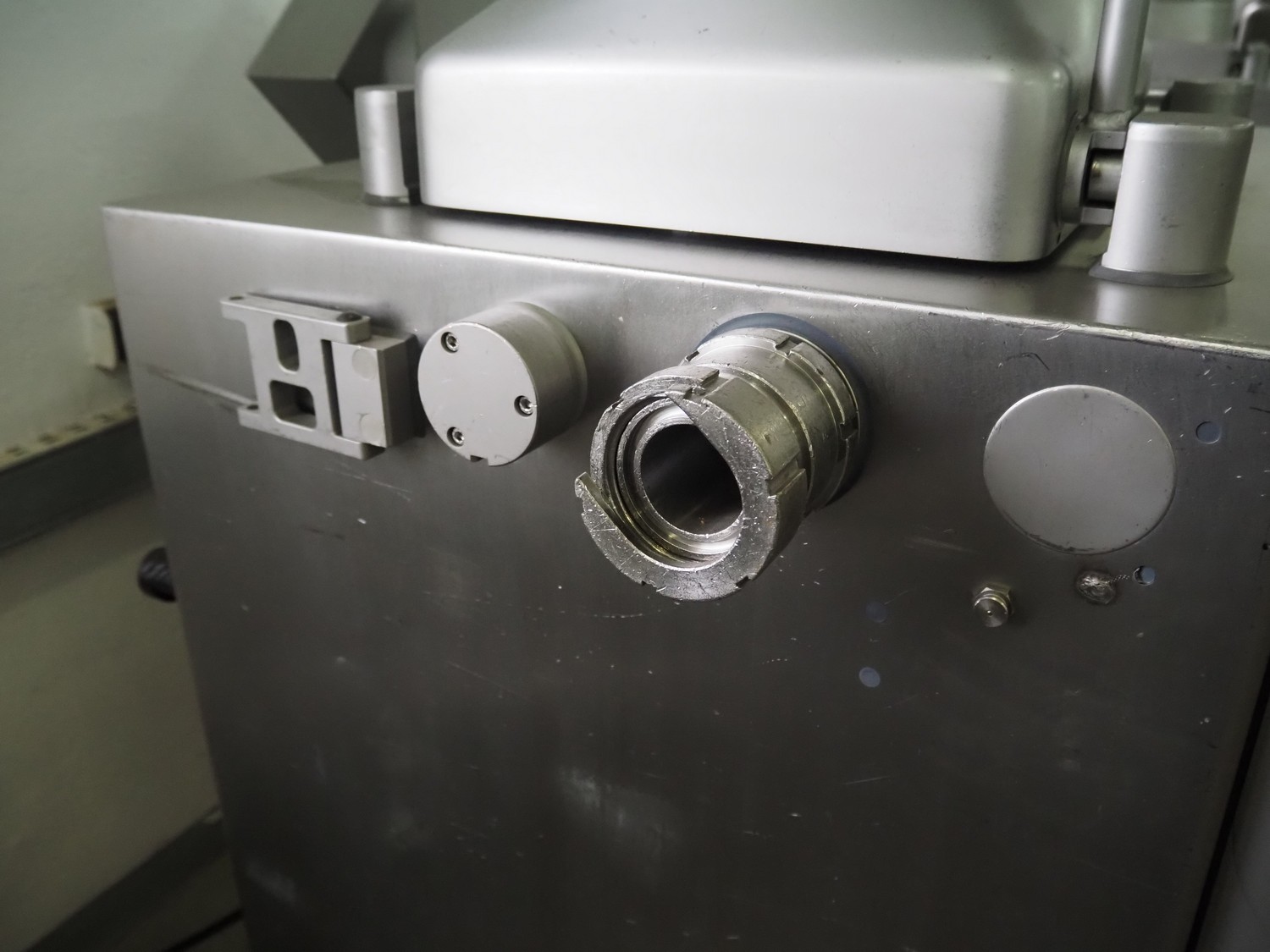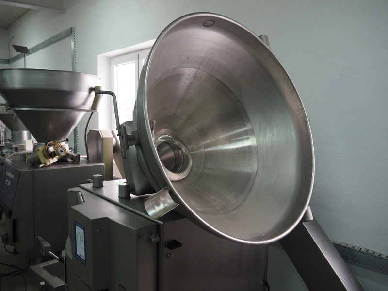 Handtmann vacuum filling machine with lifter for 200 liter meat bins, type: VF612, year of construction: 2007, 400 V, 3 Ph, 50 Hz, 6.5 A, 4.5 kW, dimensions: 2100 mm x 1400 mm x 2000 mm.