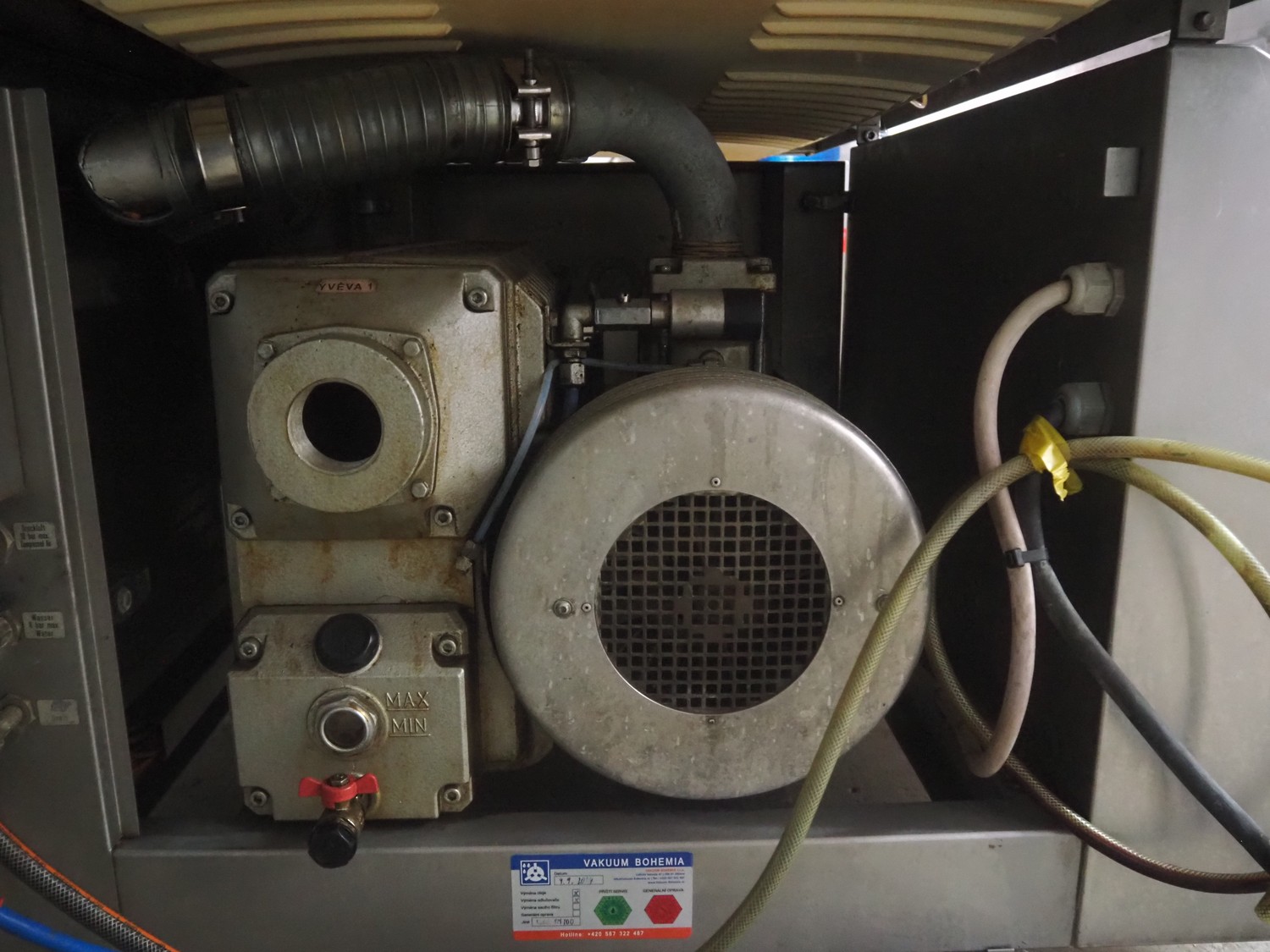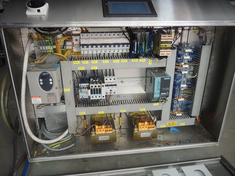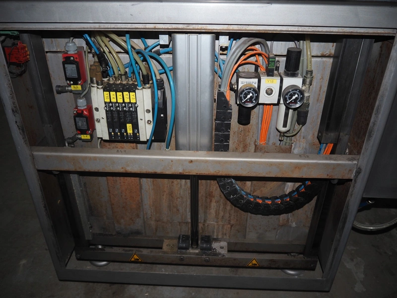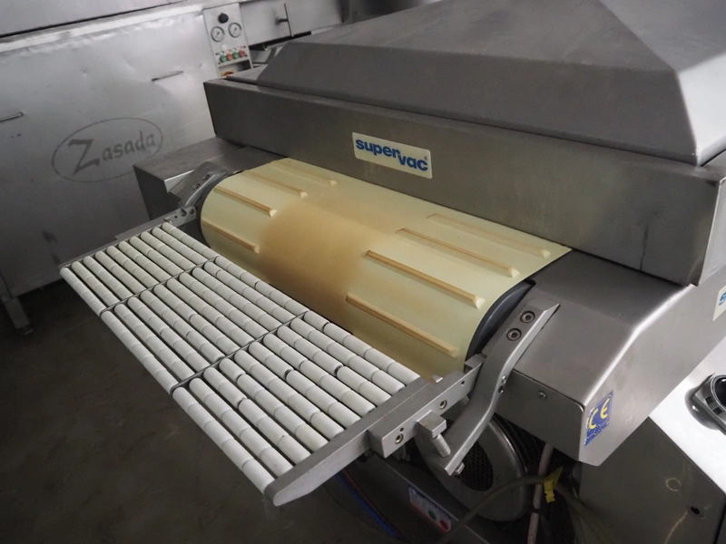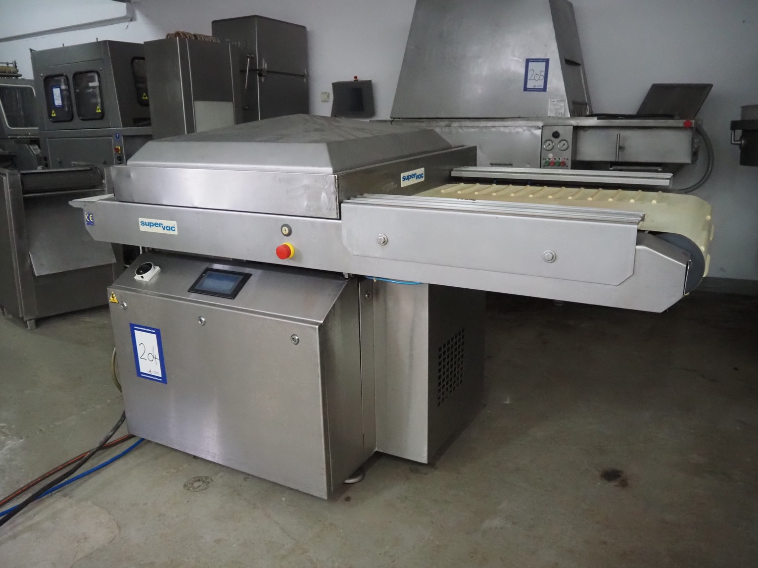 Supervac belt vacuum machine, type: GK402B, number: 208029, year of construction: 08, 400 V, 3 Ph, 50 Hz, 7.8 A, 3.34 kW, plastic belt, belt width: 620 mm, seal length: 720 mm, total dimensions: 2300 mm x 1200 mm x 1160 mm.