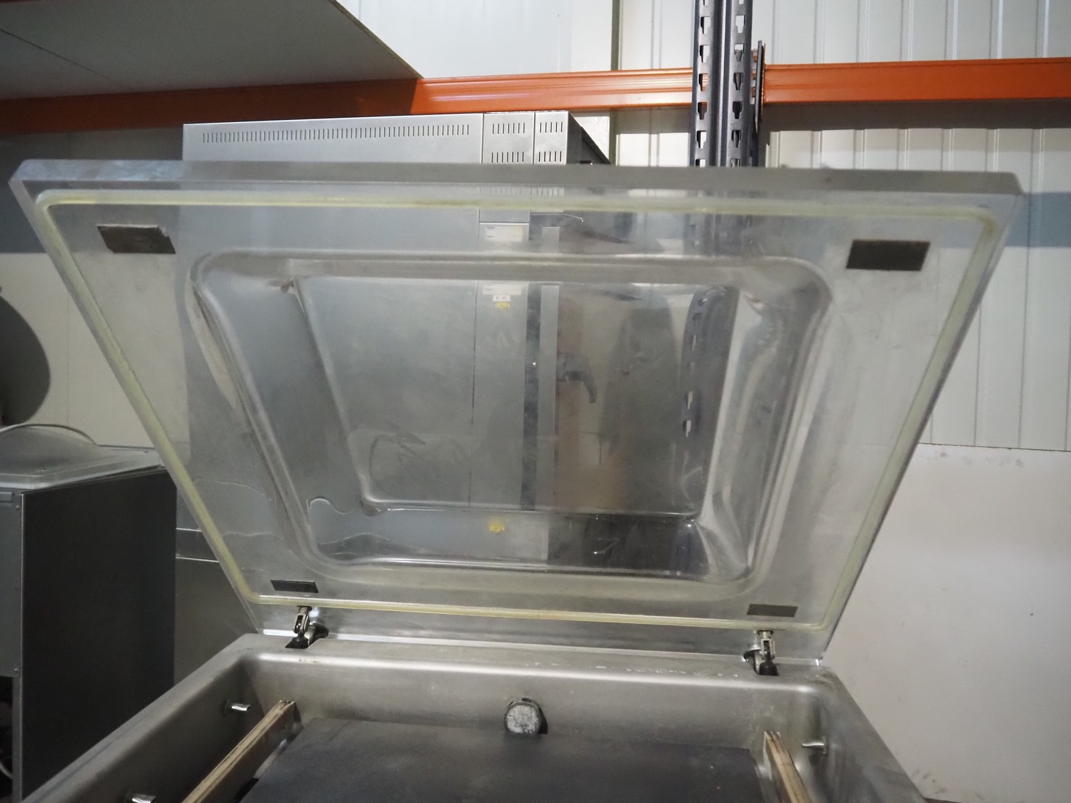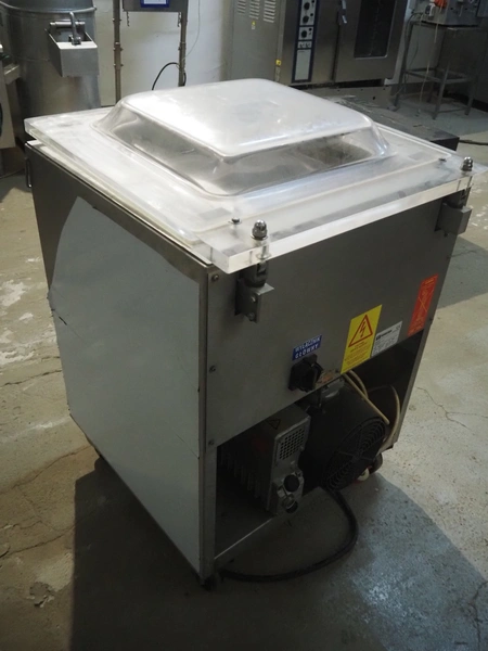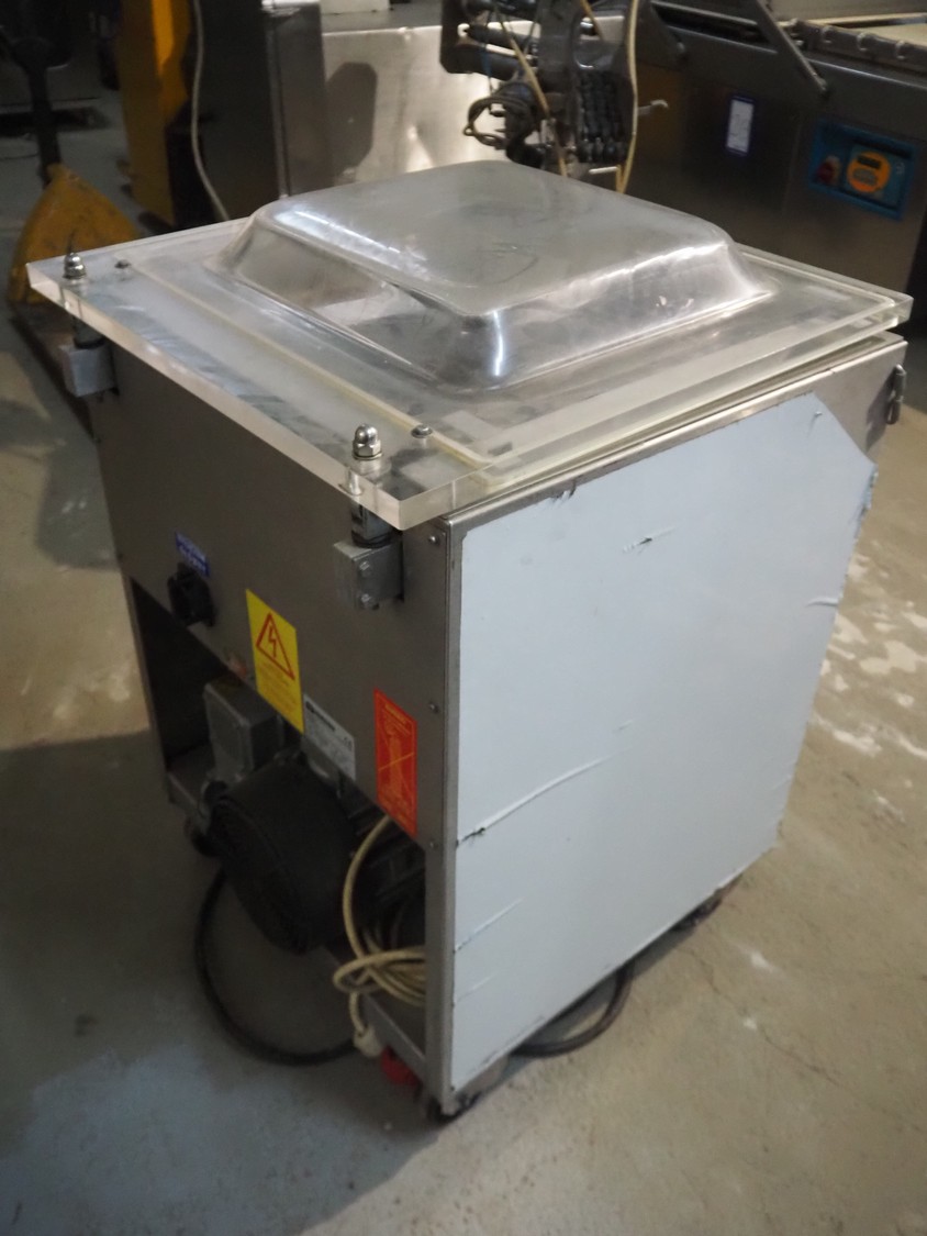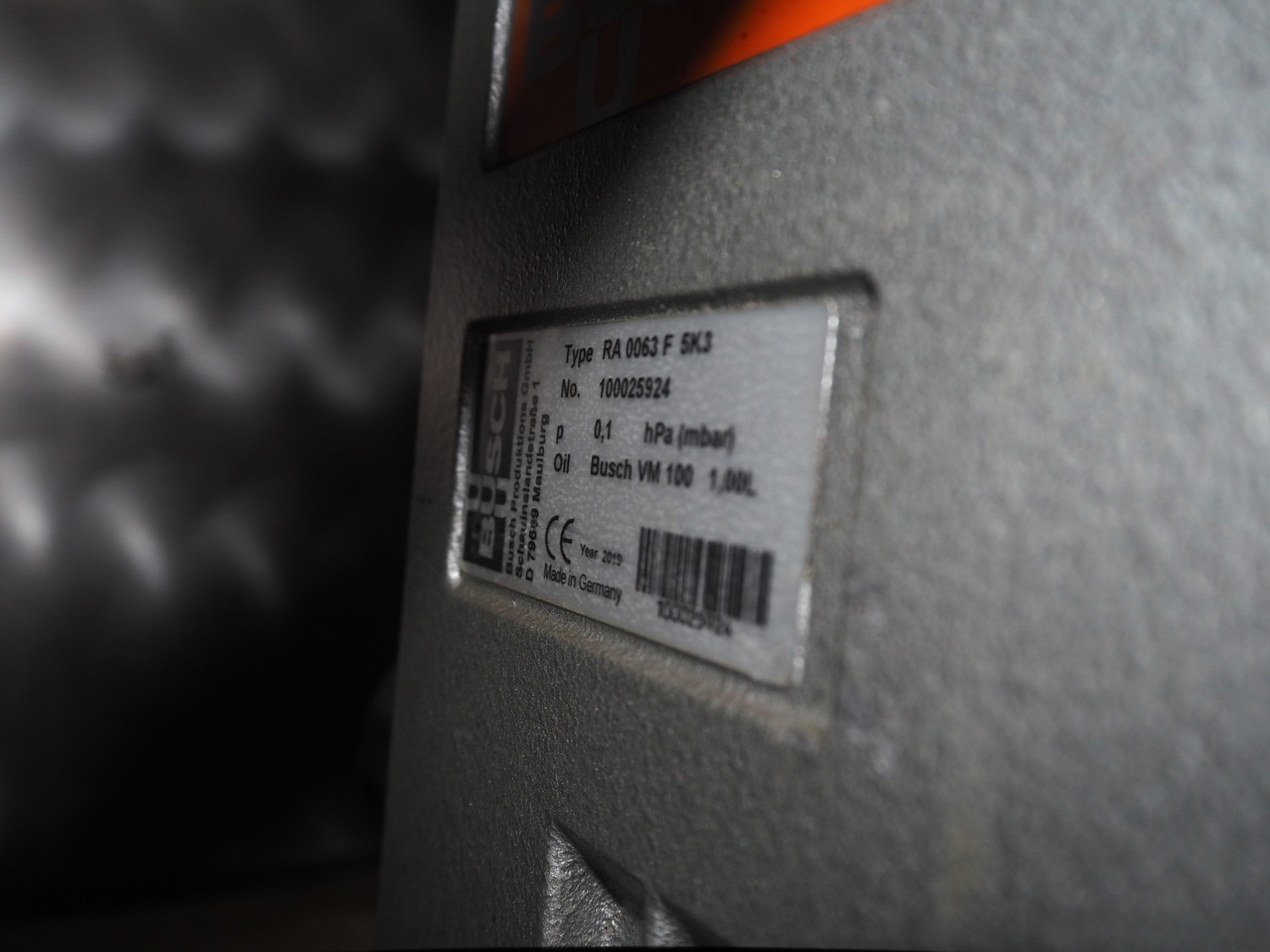 Henkelman B.V. mobile vacuum machine, type: MARLIN 52 KK, serial number: M301005182, year of construction: 2010, 400 V, 3 Ph, 50 Hz, 10.5 Amp, 3 kW, machine weight: 143 kg, seal length: (2x) 520 mm, chamber: 500 mm x 460 mm x 140 mm, Busch vacuum pump, pump type: RA 0063 F 5K3, serial number: 100025924, capacity: 63 m³ per hour, total dimensions: 680 mm x 700 mm x 1030 mm.