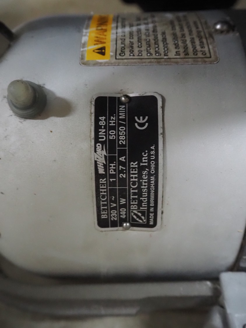 Bettcher Industries trimmer, model: UN-84, 230 V, 1 Ph, 50 Hz, 2.7 A, 440 kW, dimensions: 750 mm x 300 mm x 200 mm.