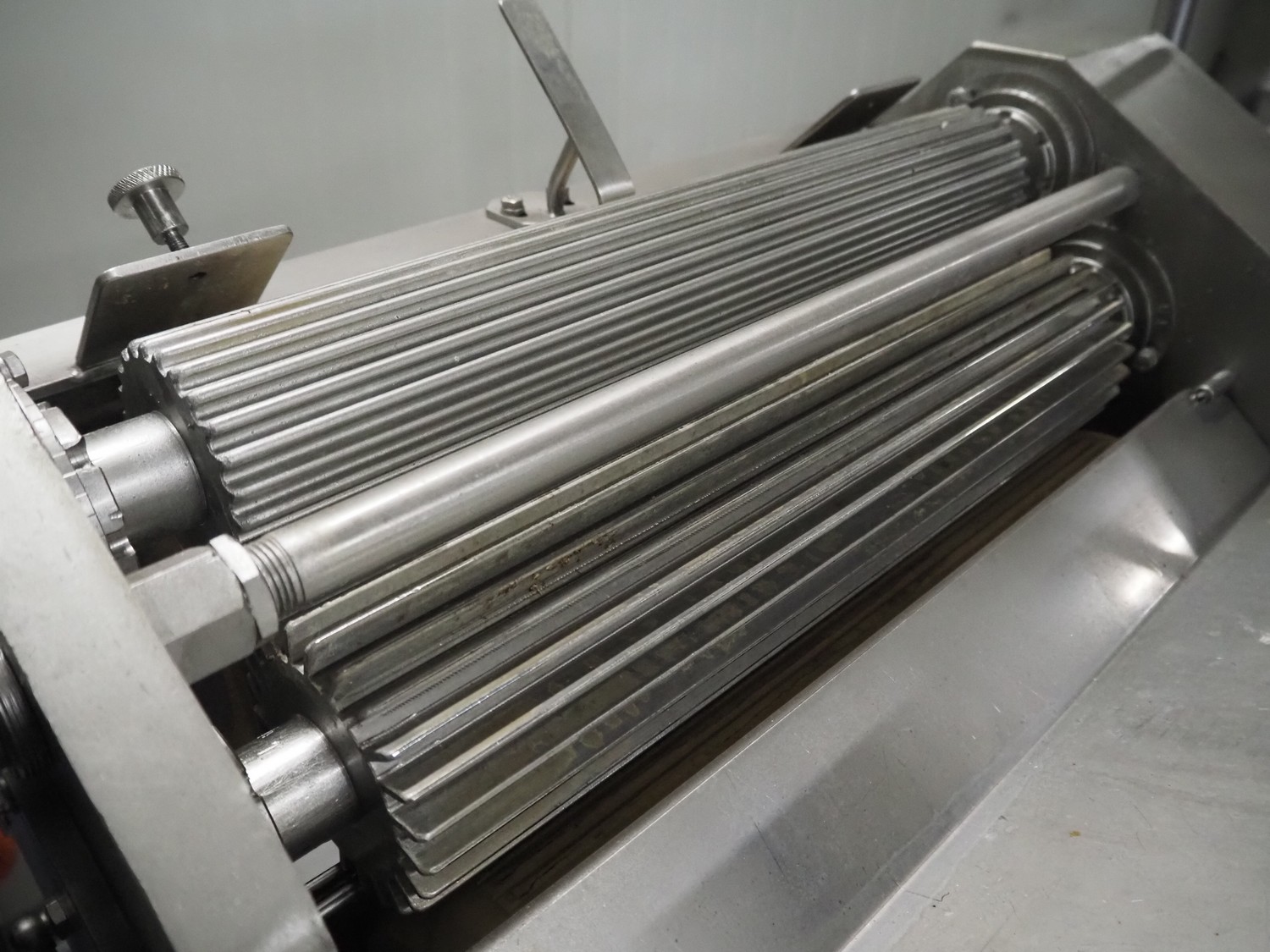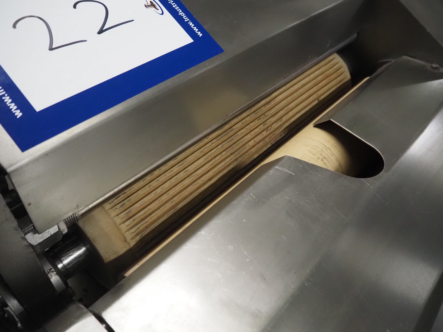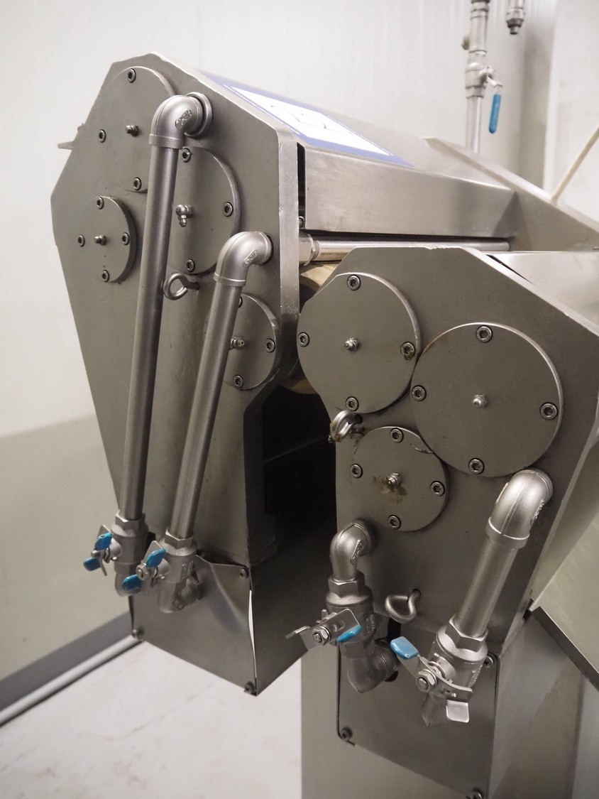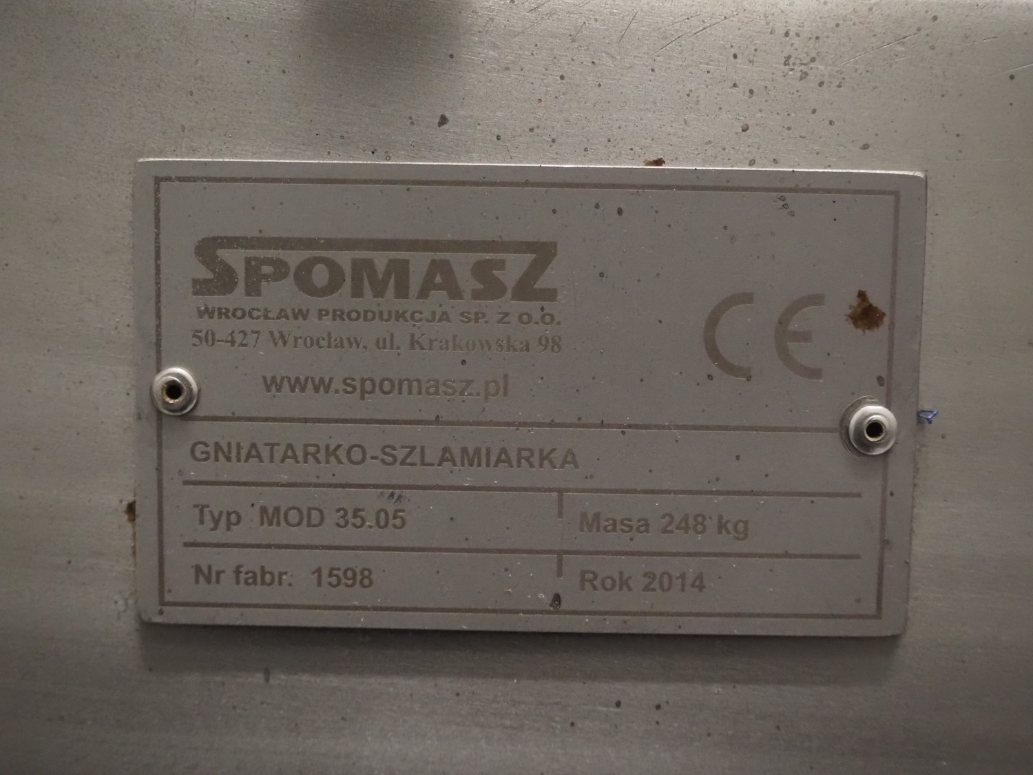 Spomasz intestine crusher, type: MOD 35.05, number: 1598, year of construction: 2014, machine weight: 248 kg, plastic rollers, roller width: 450 mm, total dimensions: 960 mm x 580 mm x 1620 mm.