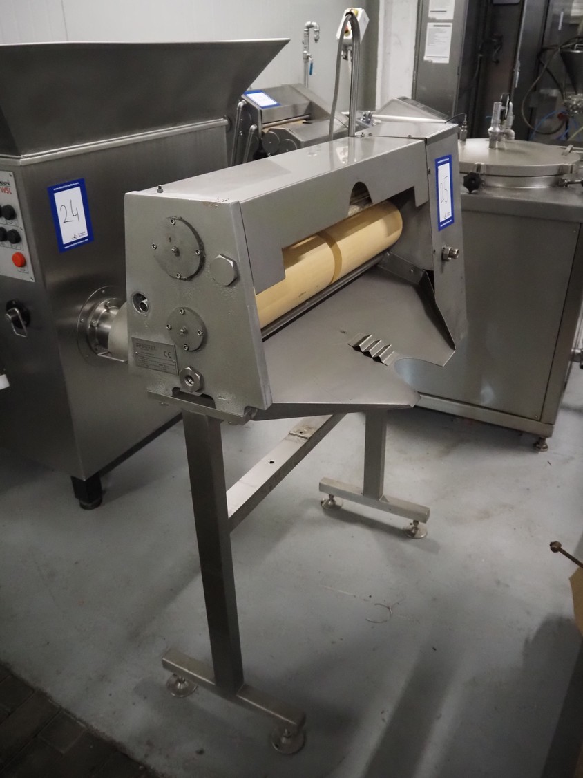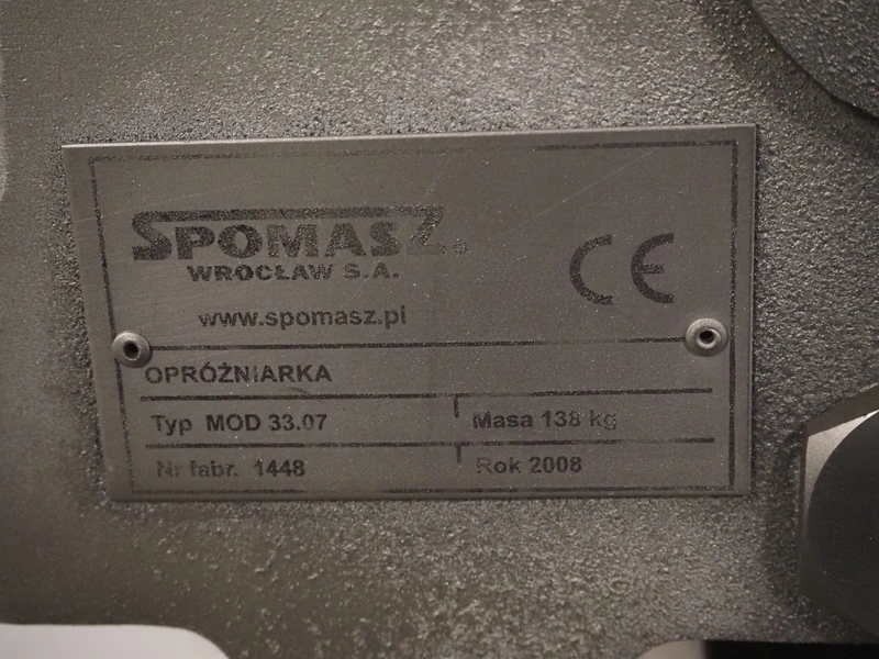 Spomasz intestine crusher, type: MOD 33.07, fabrication number: 1448, year of construction: 2008, 138 kg, plastic rollers, roller width: 800 mm, total dimensions: 1150 mm x 560 mm x 1600 mm.
