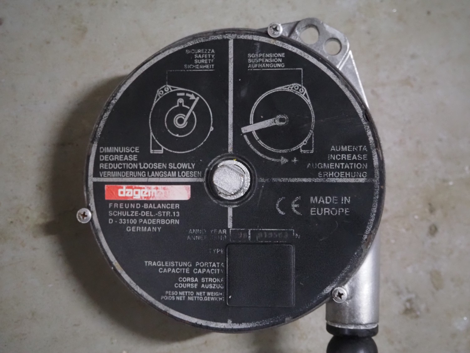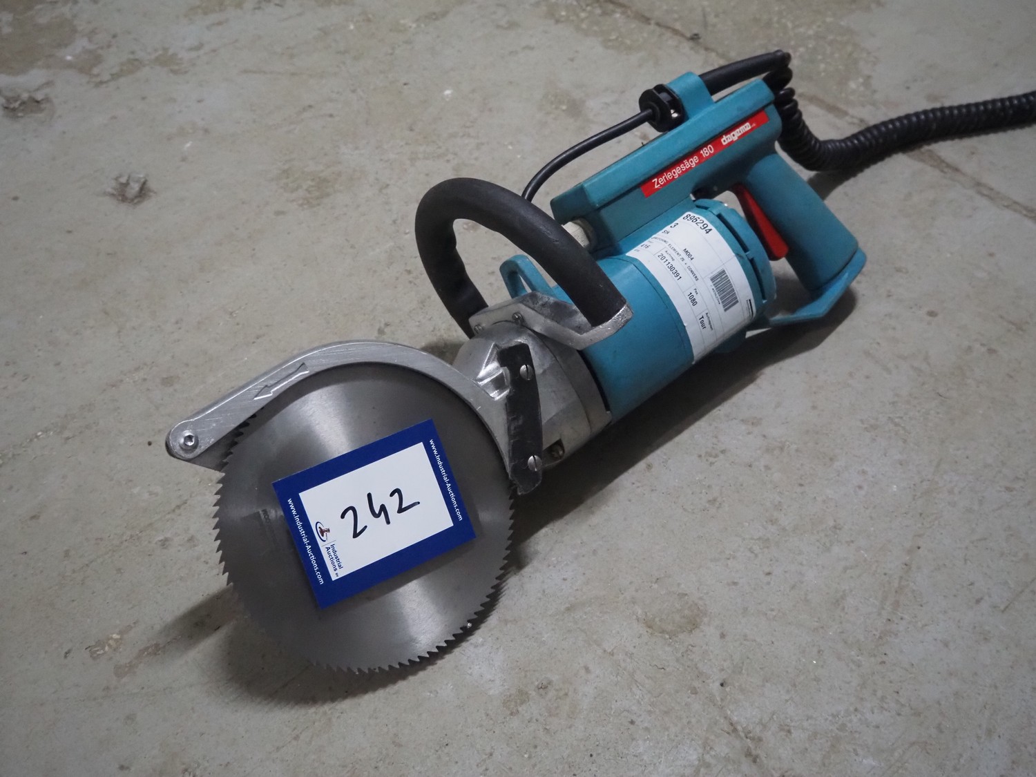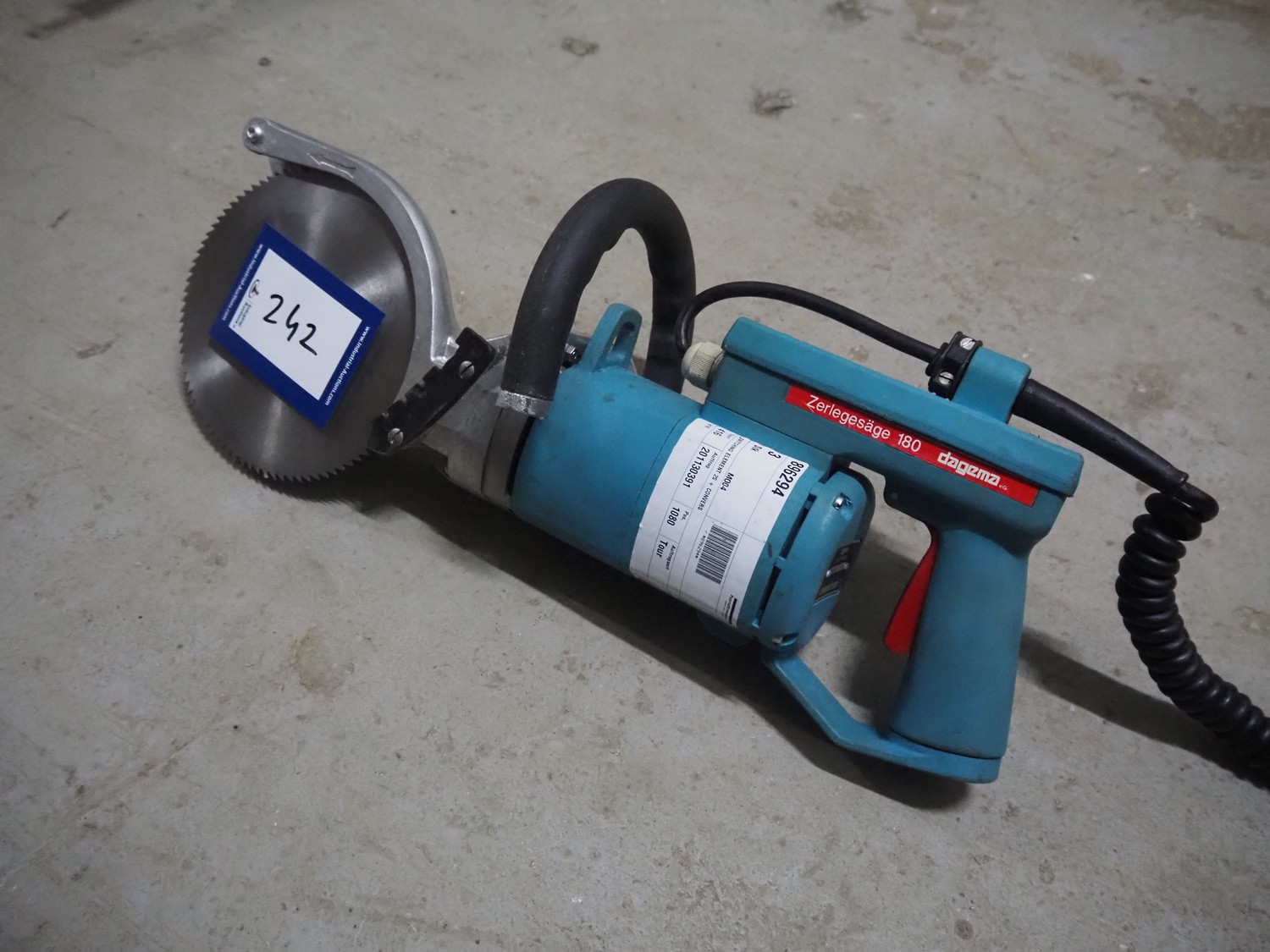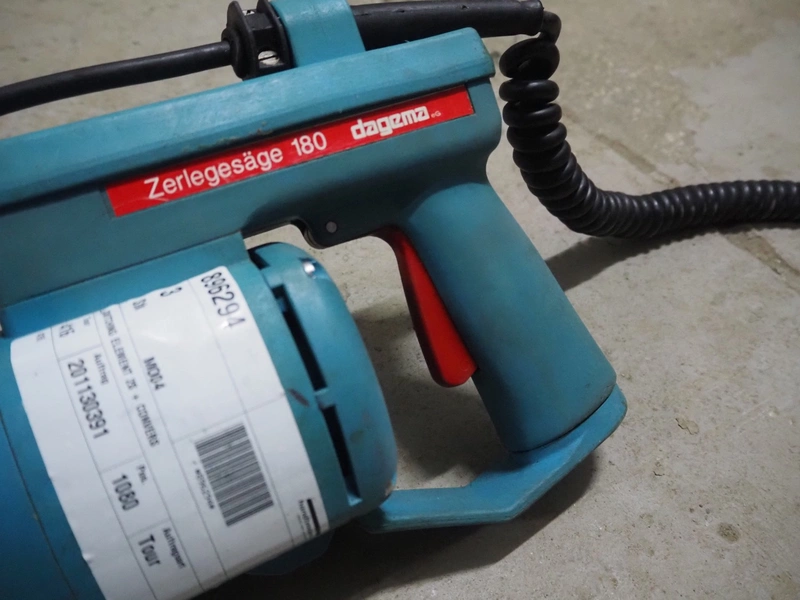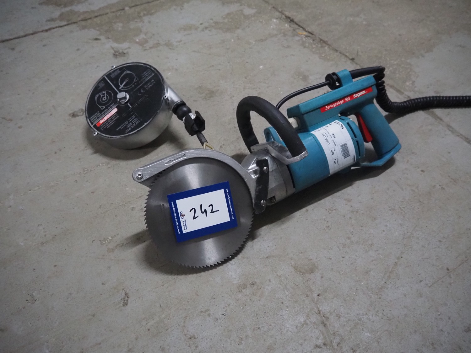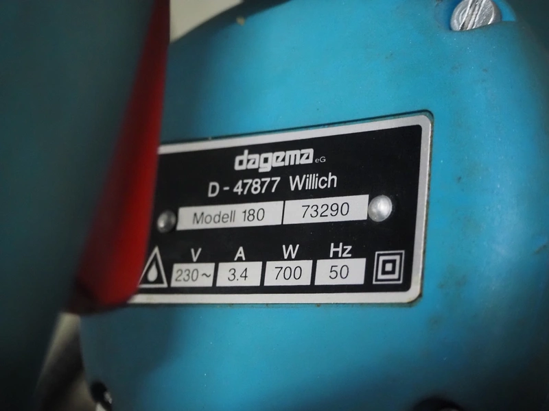 Dagema circulair saw, model: 180, number: 73290, 230 V, 1 Ph, 50 Hz, 3.4 A, 700 W, saw diameter: 180 mm, total dimensions: 530 mm x 250 mm x 200 mm. Including Dagema balancer.