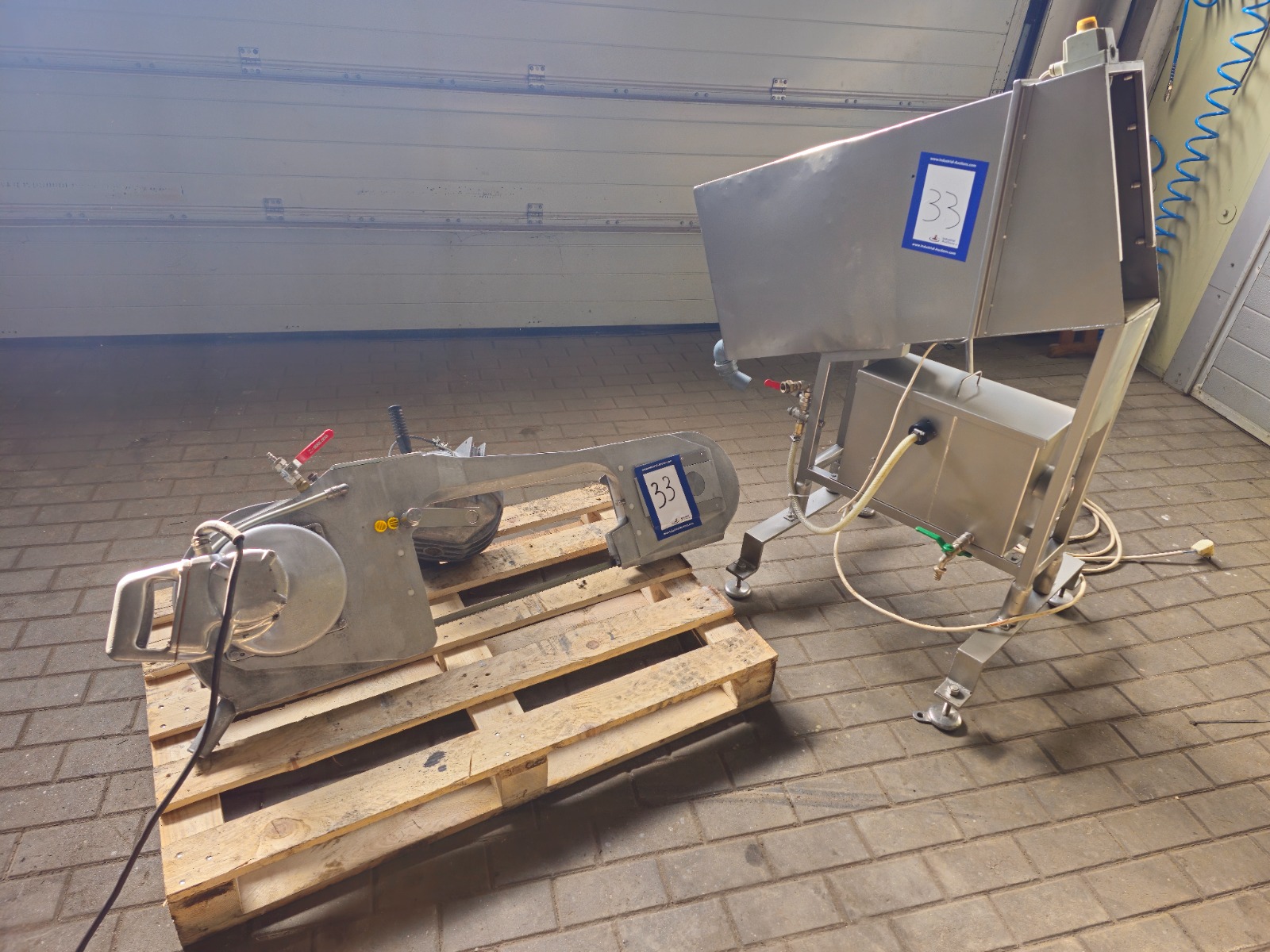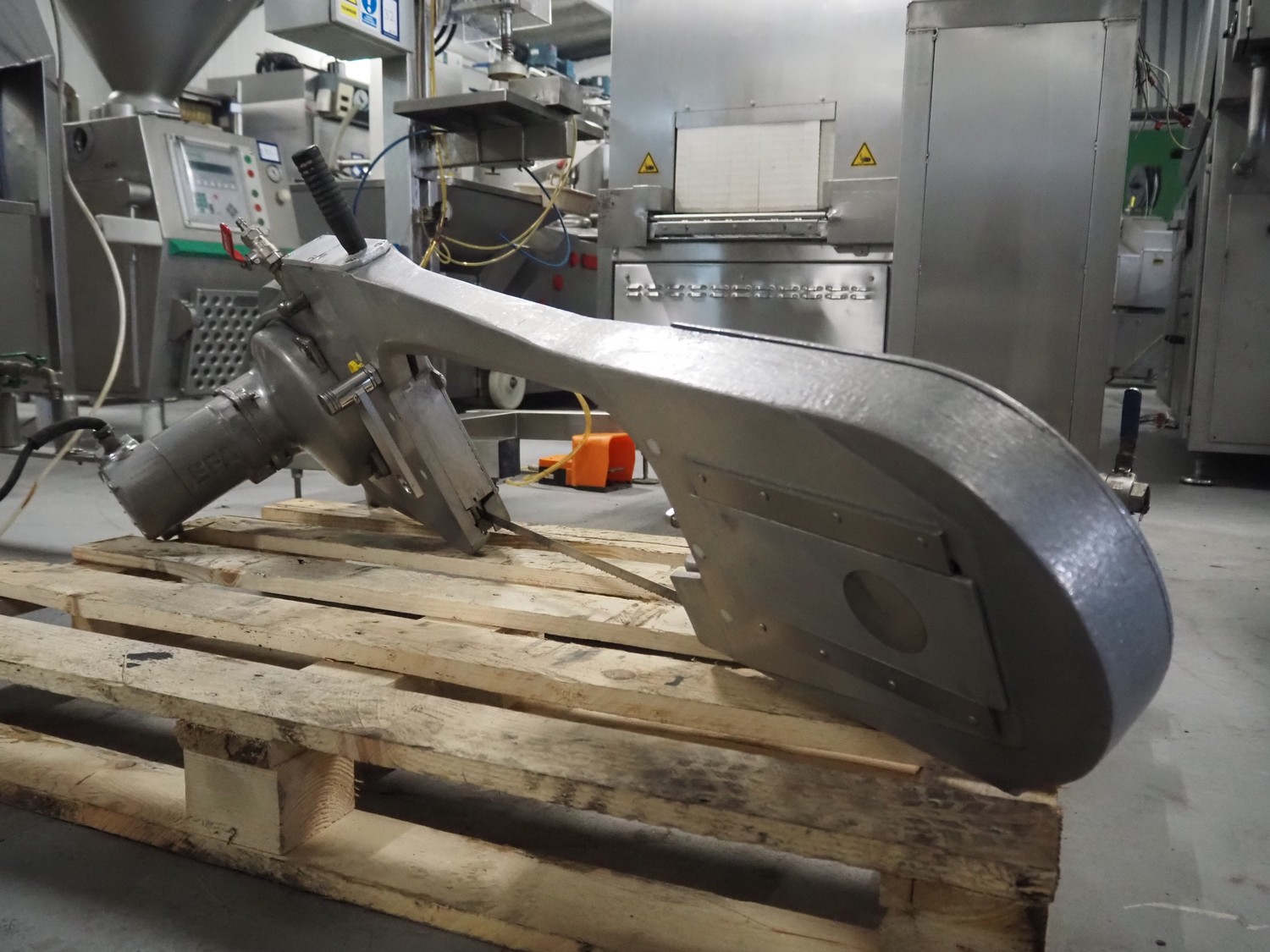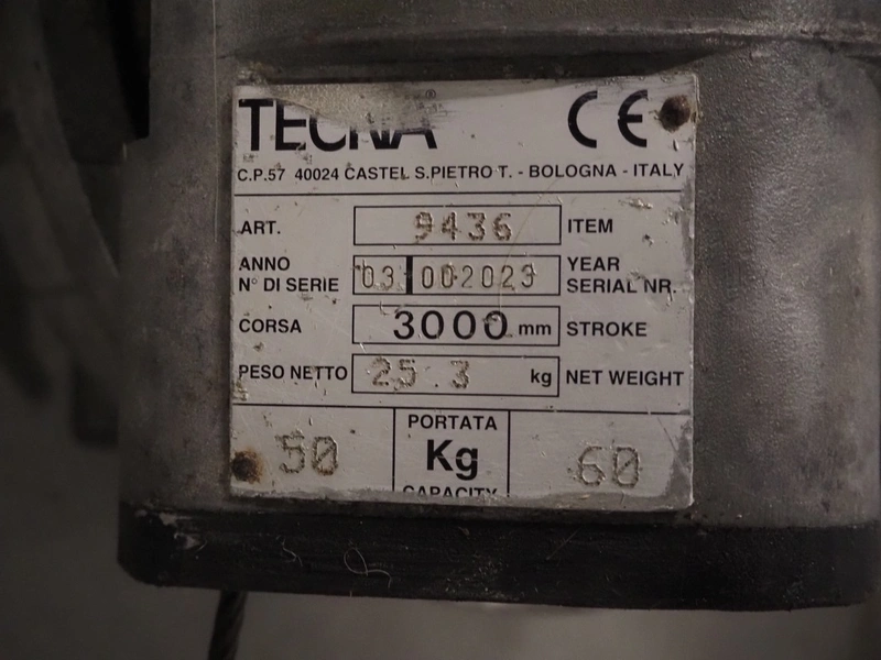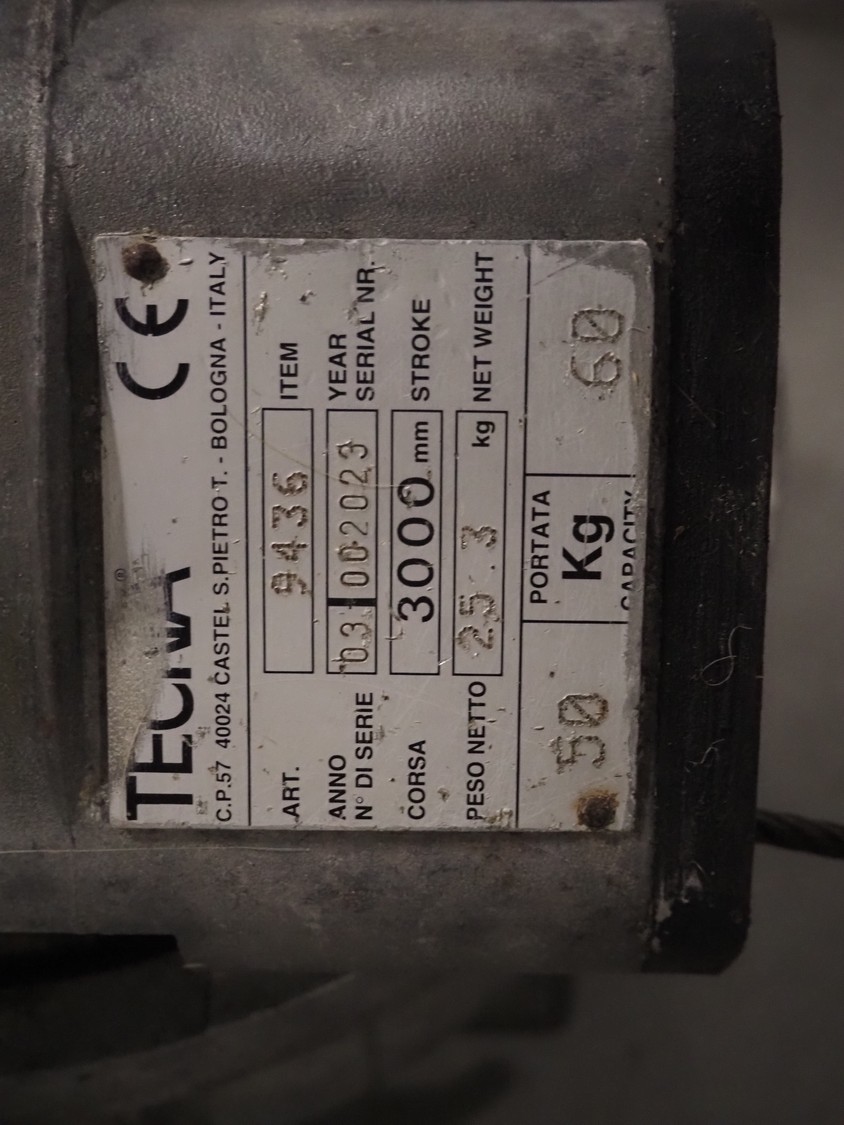 EFA splitting saw with balancer, Tecna balancer, type: 9436, number: 002023, stroke: 3000 mm, capacity: 50/60 kg. SB 287 E, working width: 460 mm, total dimensions: 1500 mm x 400 mm x 600 mm, s/s heated tub, inside dimensions: 900 mm x 200 mm x 420 mm.