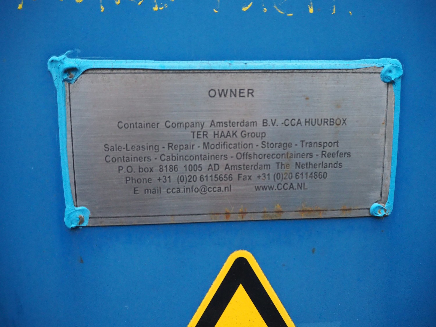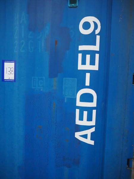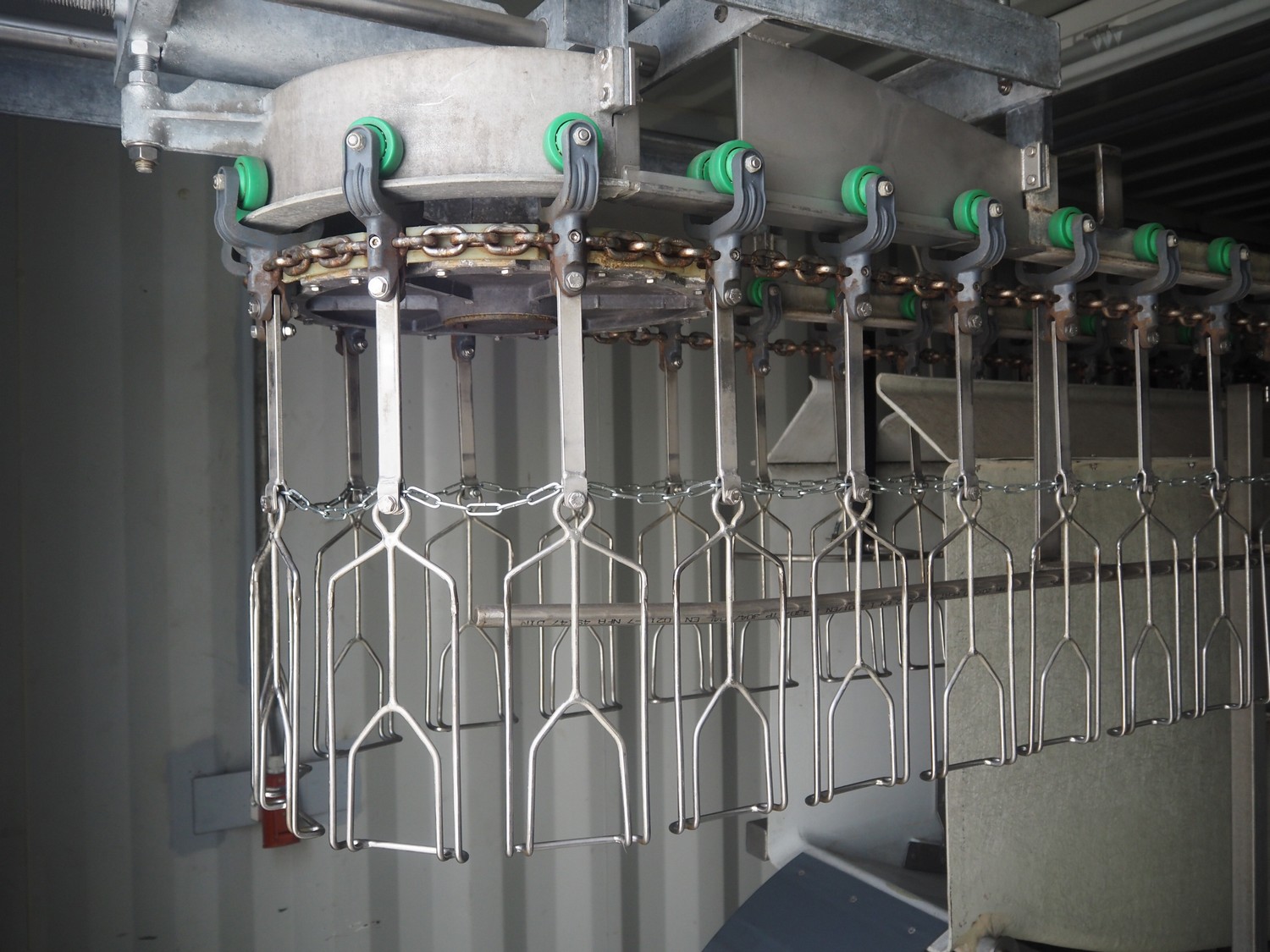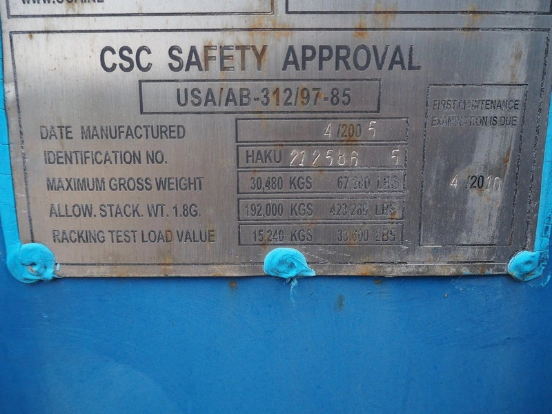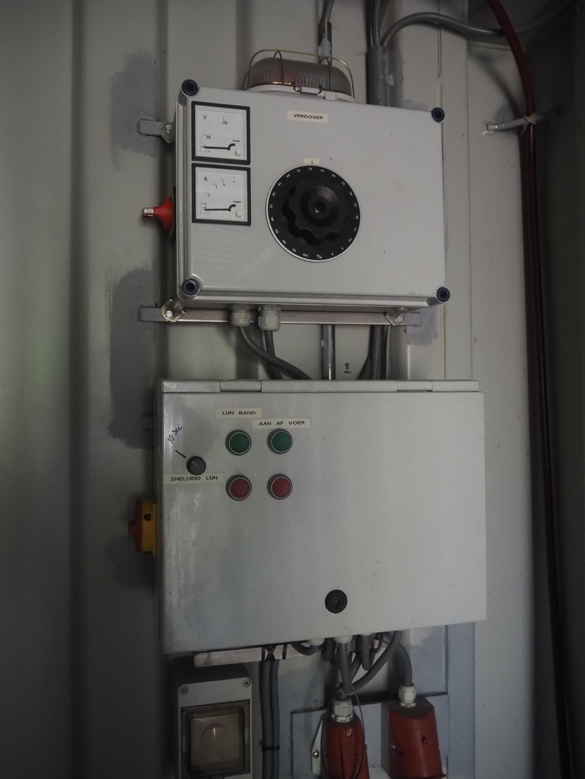Steel 20 ft. container with Stork stunning line for chicken, model stunning line: B-5, length stunning line: 2200 mm, type container: SP-STDT-02(F), identification number: HAKU 212586 5, container weight: 2185 kg, inside volume: 33.2 m³, loading capacity: 30480 kg, total dimensions container: 5900 mm x 2350 mm x 2390 mm. Not sea worthy.