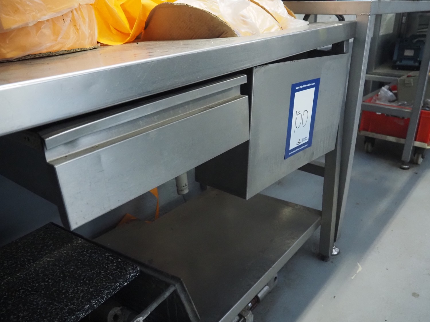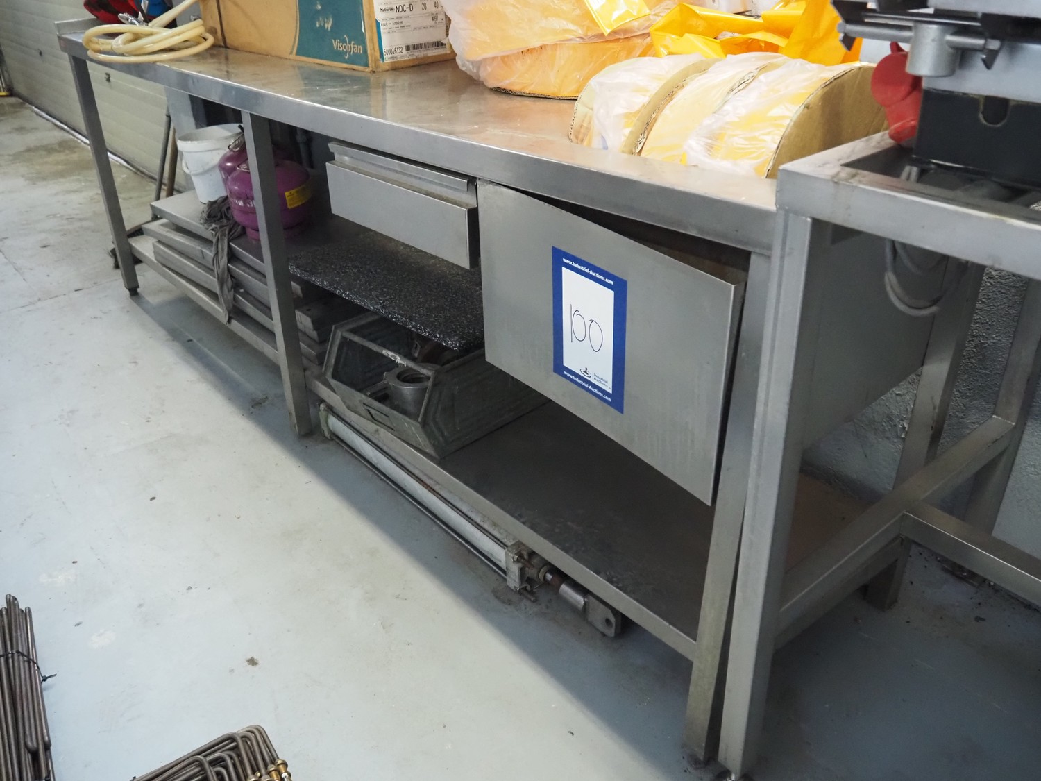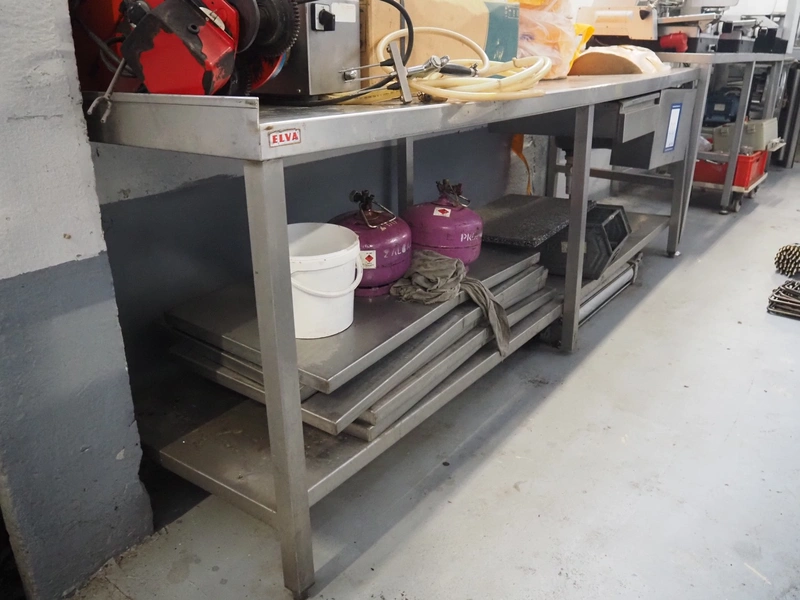 Elva s/s table with sink and drawer, dimensions: 2560 mm x 700 mm x 840 mm.
