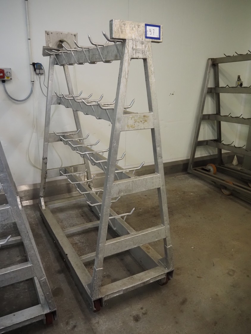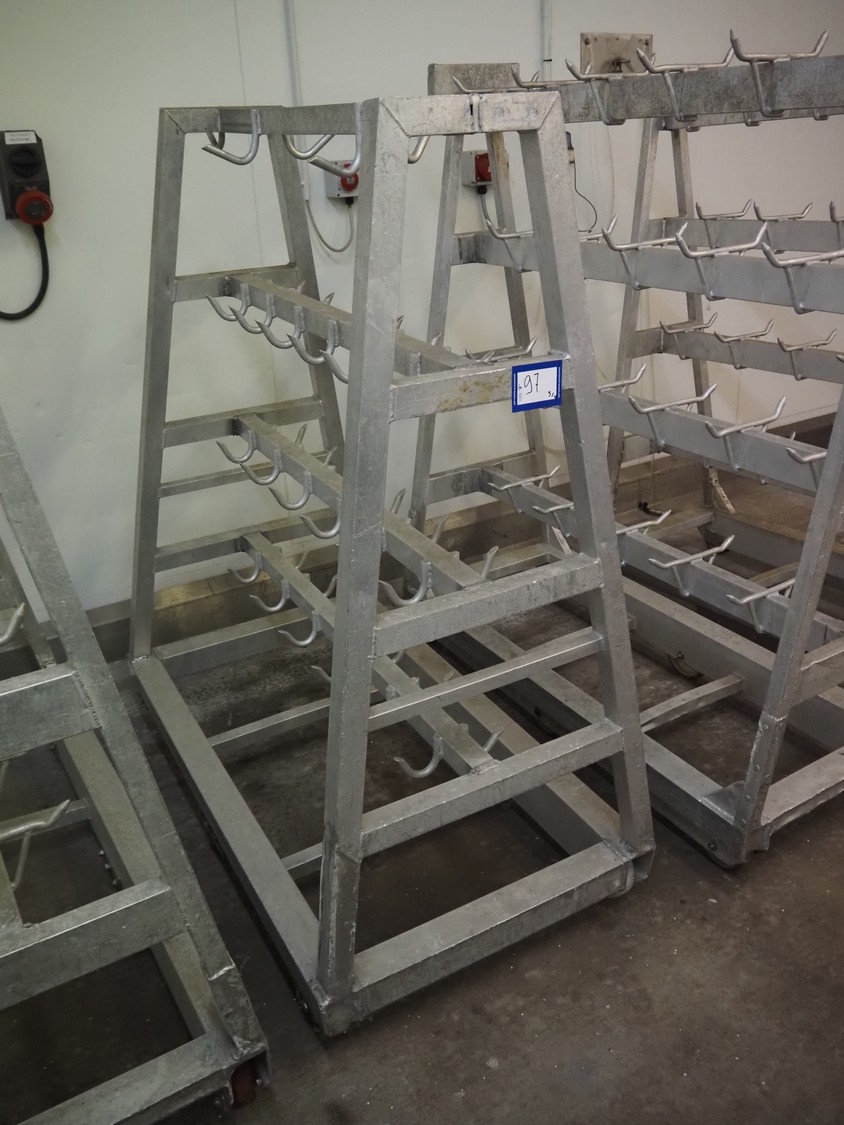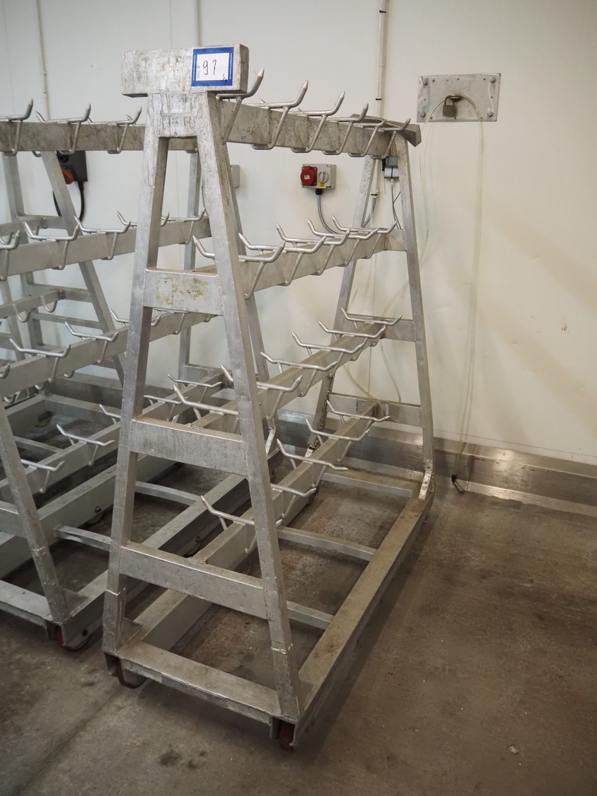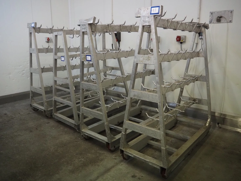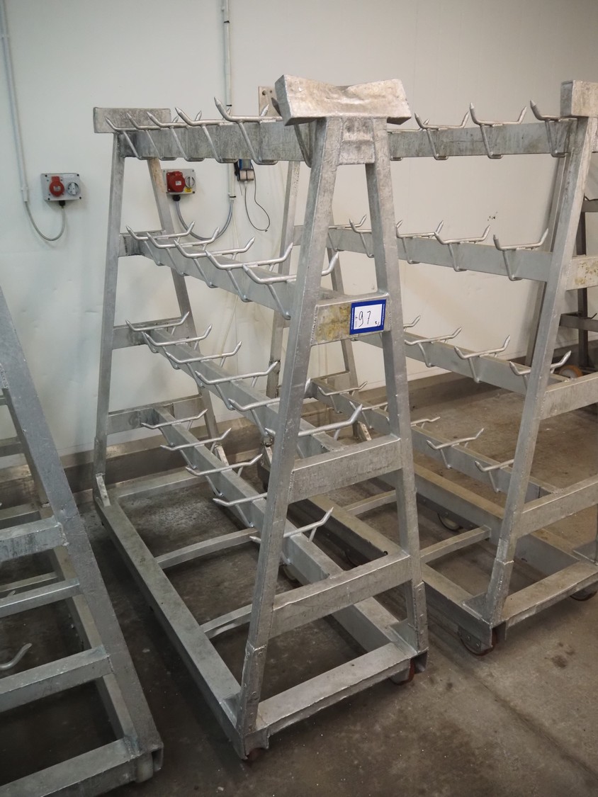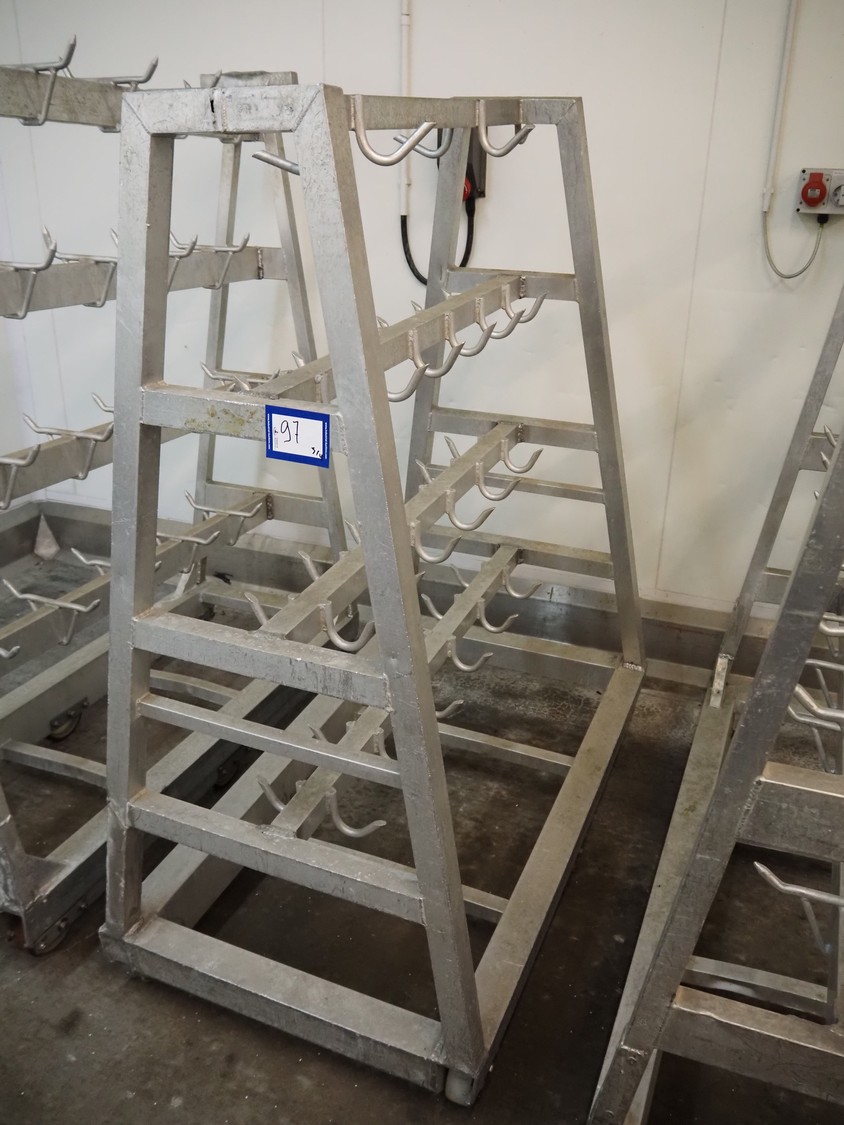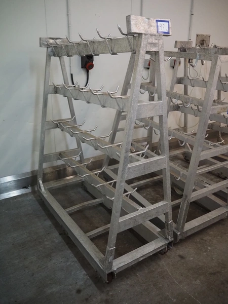 4 Aluminum trolleys with hooks, dimensions: (4x) 1570 mm x 670 mm x 1850 mm.