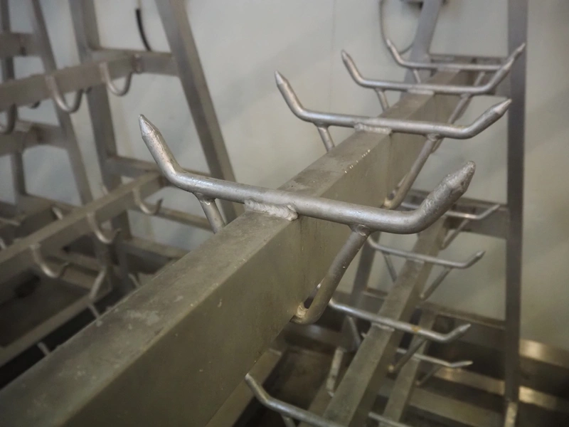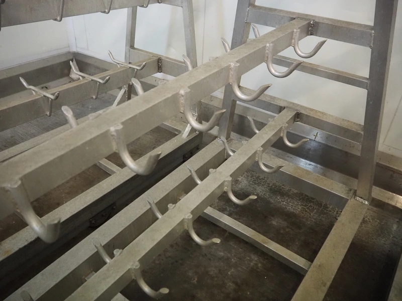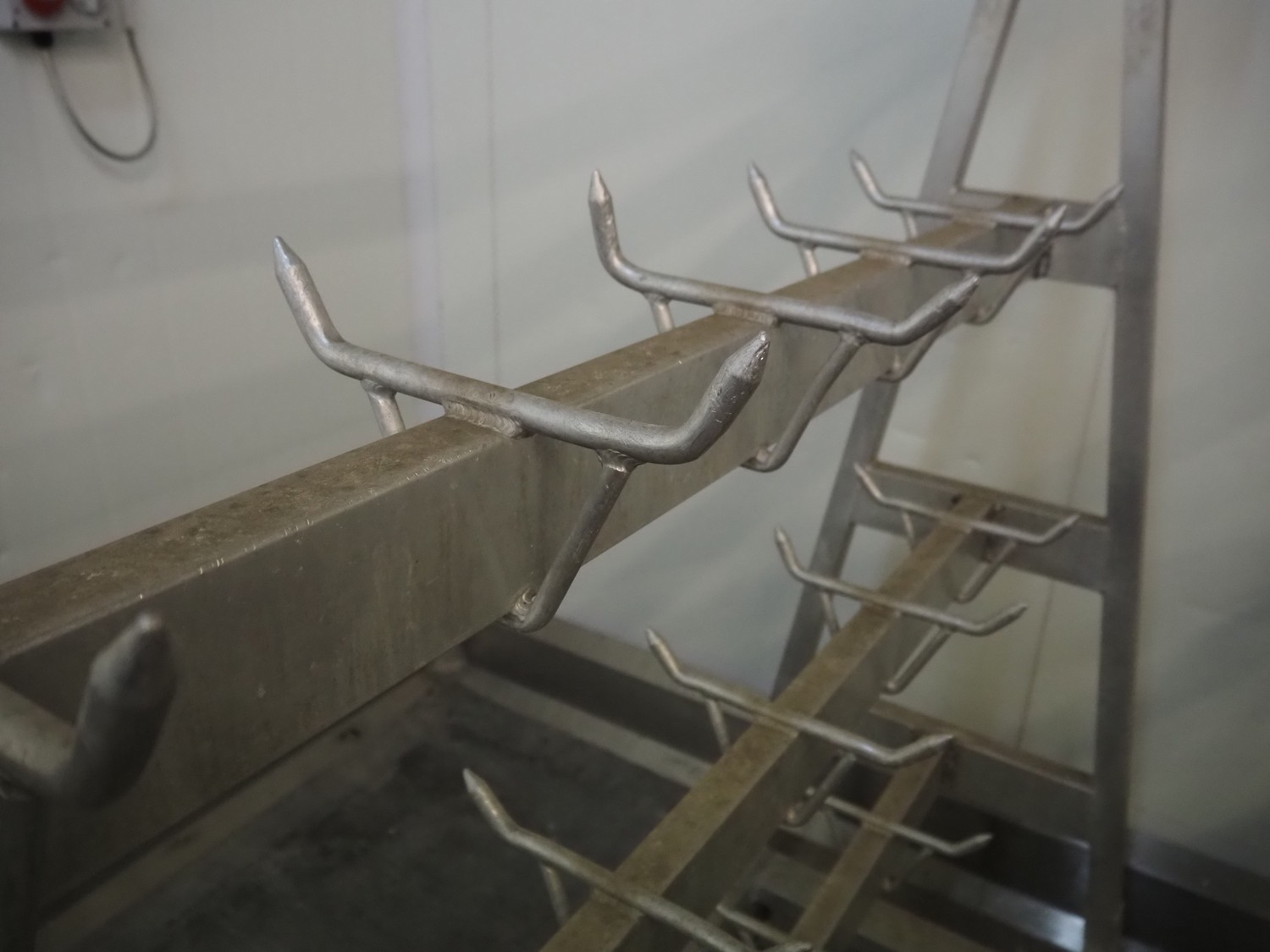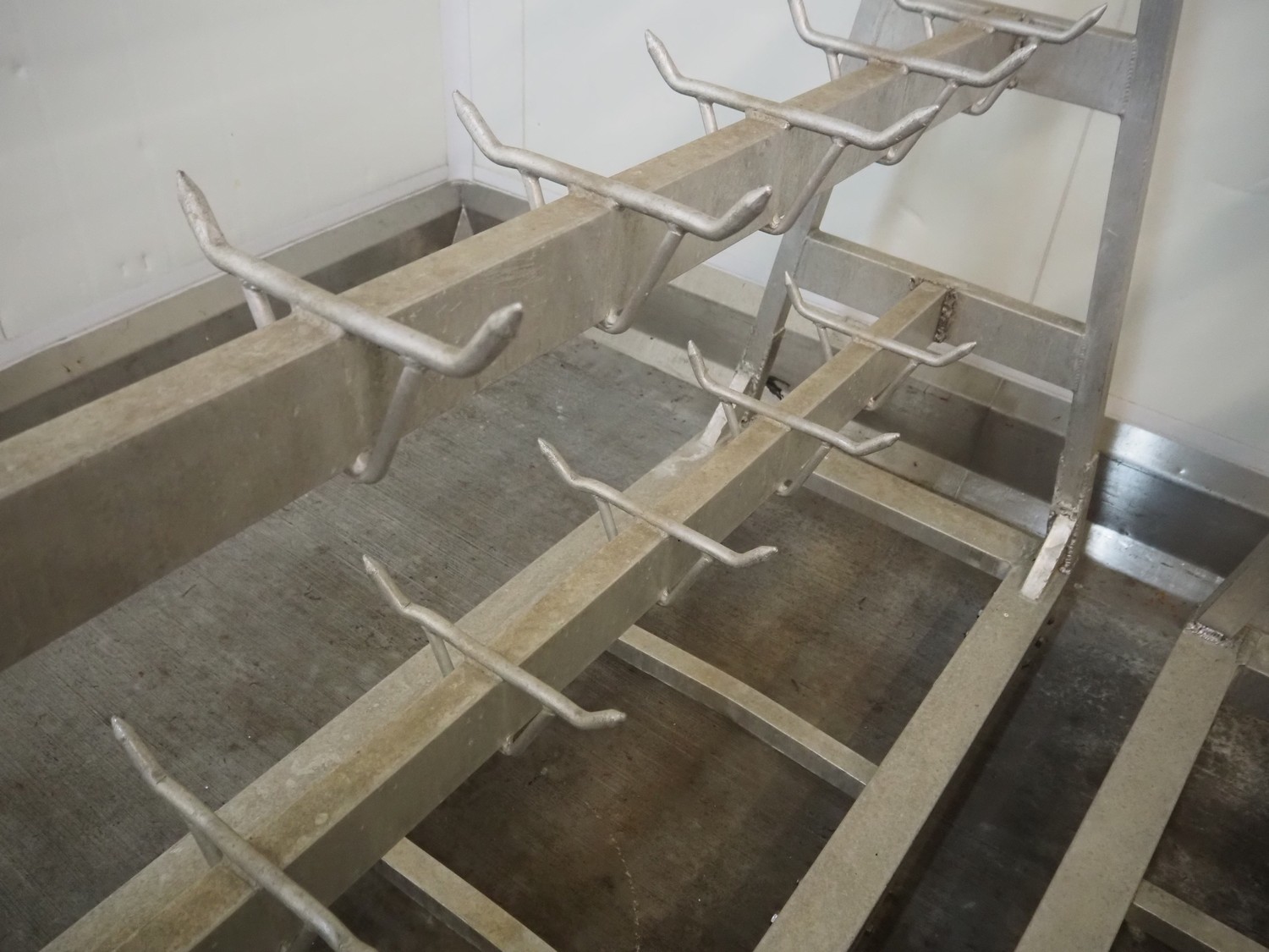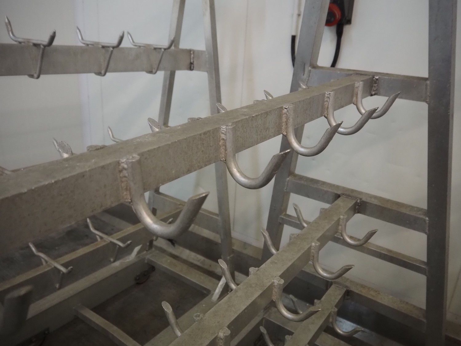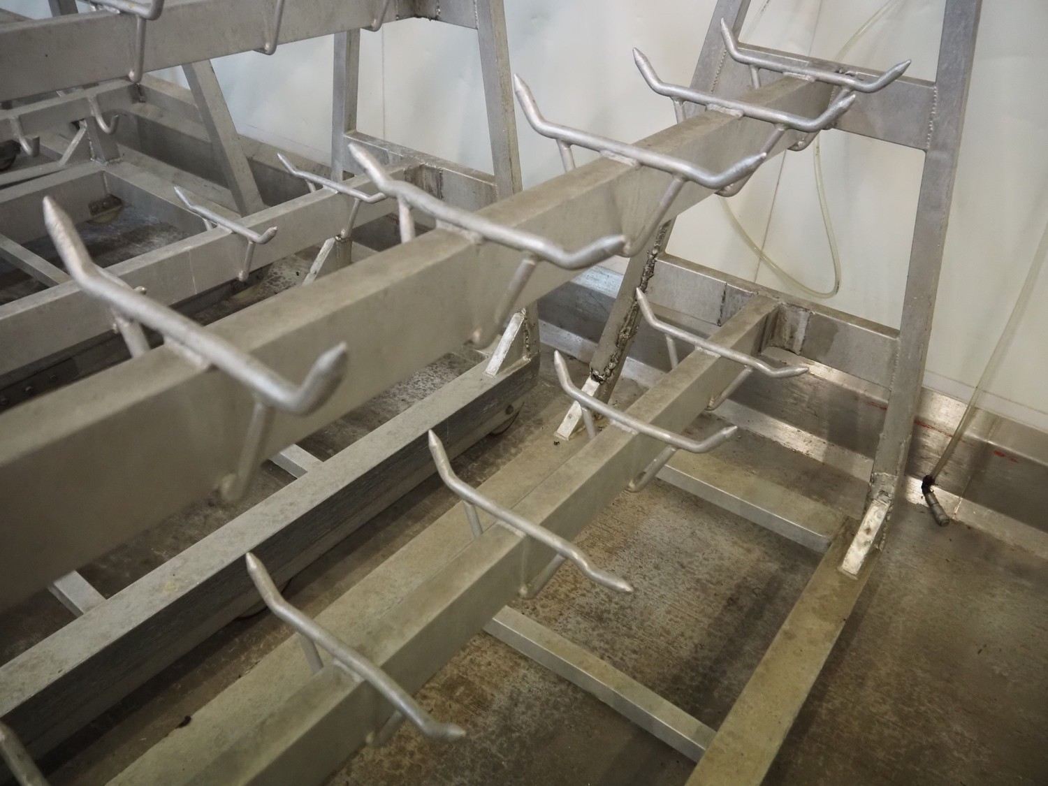 4 Aluminum trolleys with hooks, dimensions: (4x) 1570 mm x 670 mm x 1850 mm.