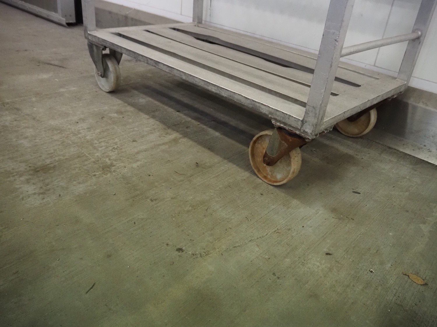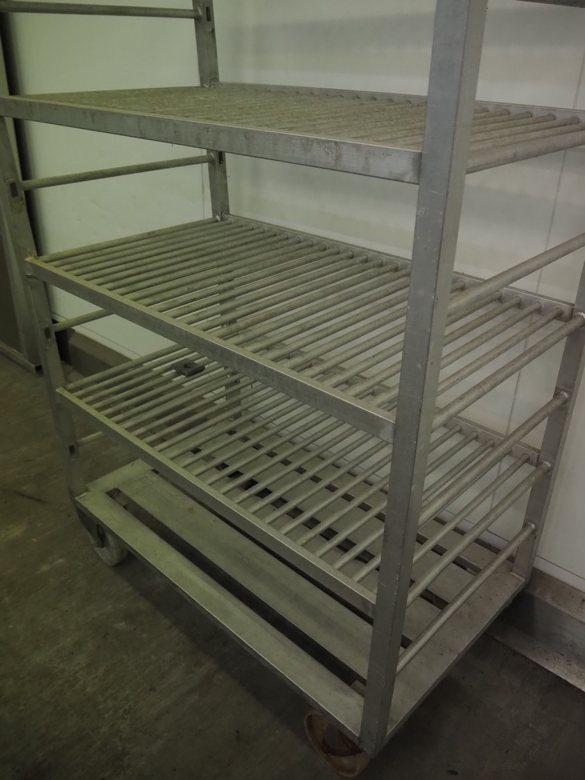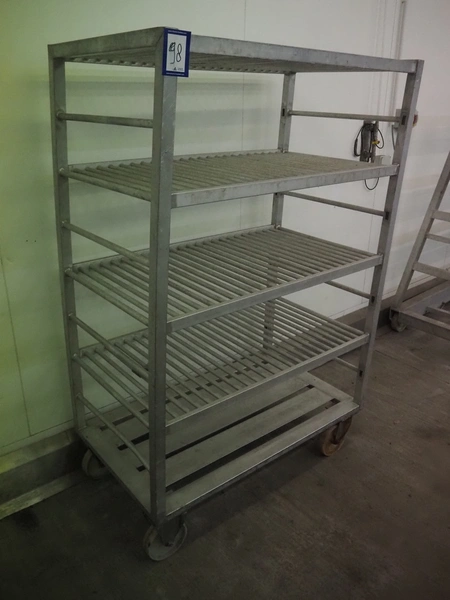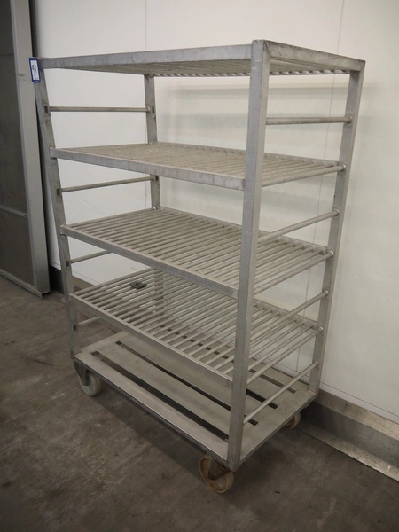 Aluminum trolley with 5 floors, floor dimensions: 1200 mm x 670 mm, total dimensions: 1200 mm x 670 mm x 1790 mm.