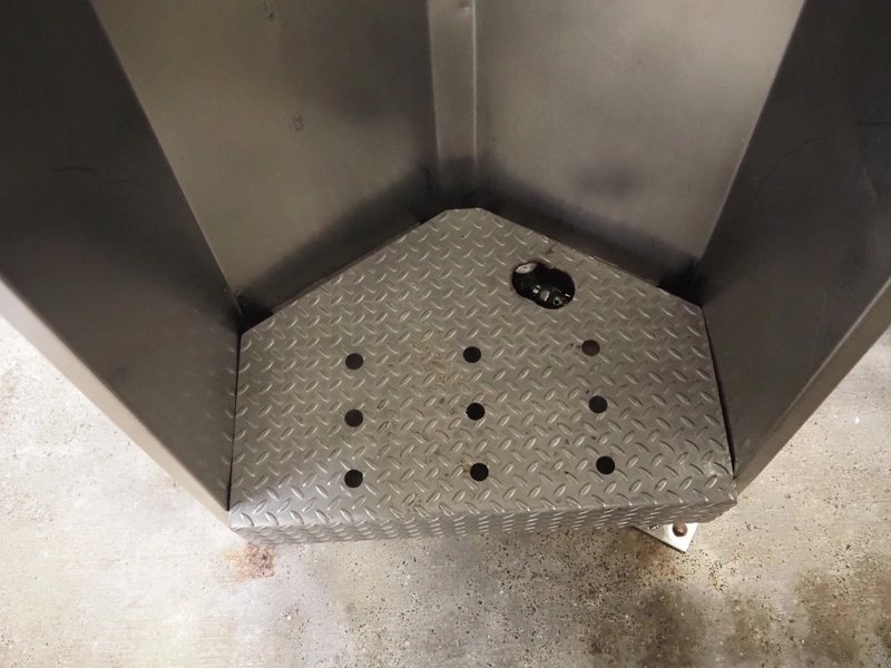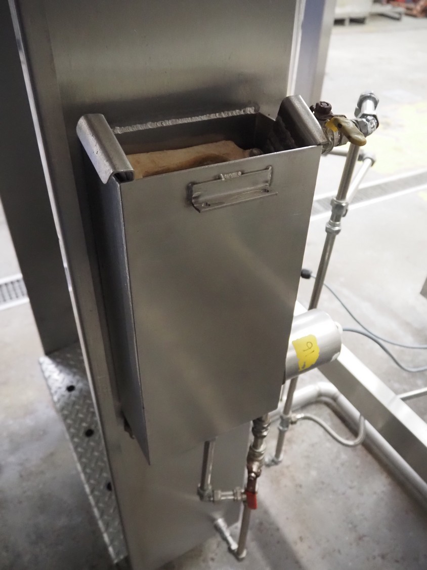 S/s apron washer with knife sterilizer, dimensions: 700 mm x 500 mm x 1520 mm.