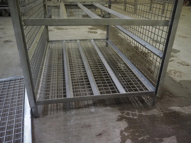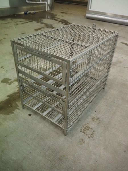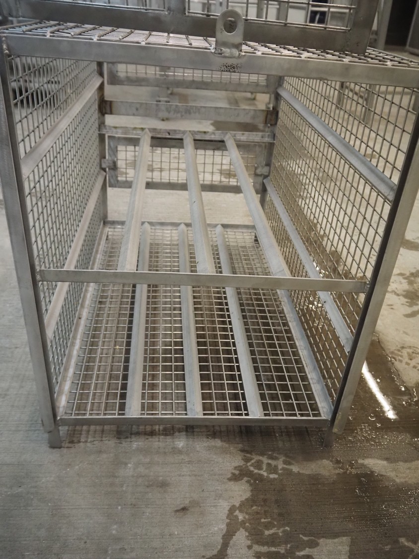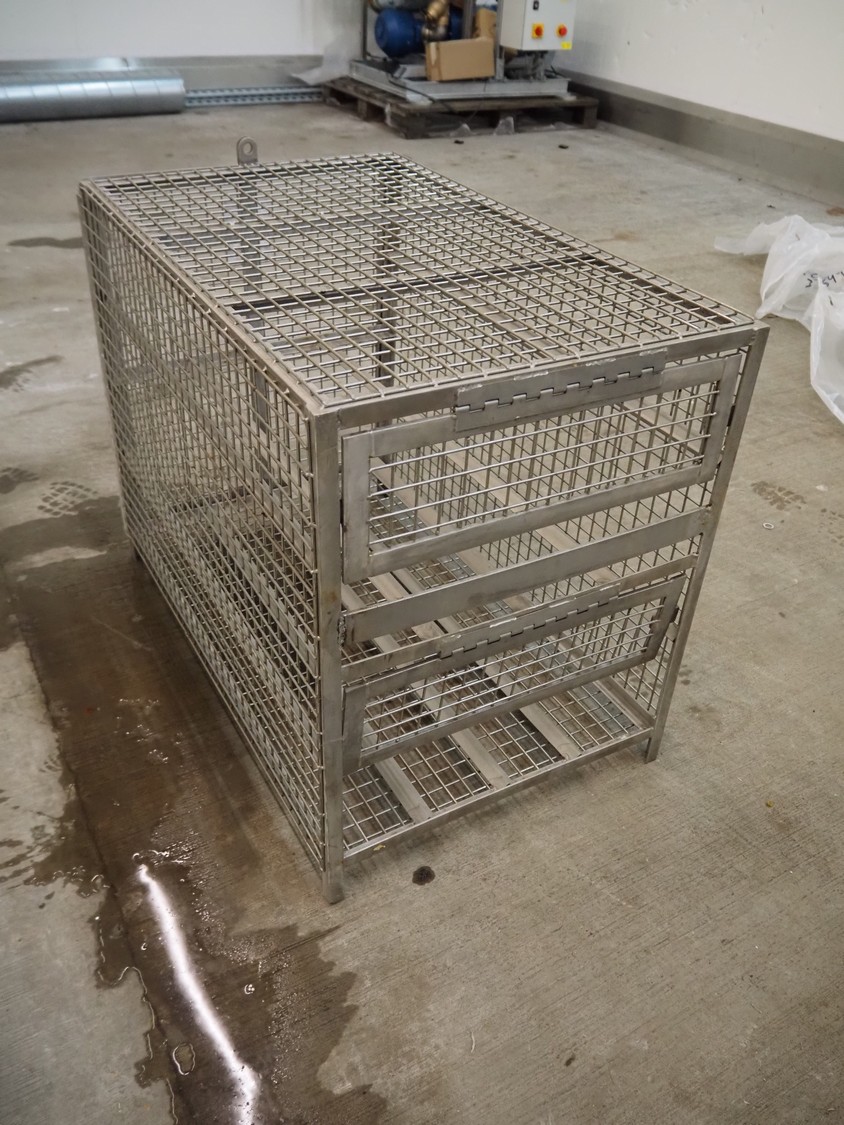 S/s cage with 2 floors, floor dimensions: 820 mm x 520 mm, total dimensions: 820 mm x 520 mm x 650 mm.
