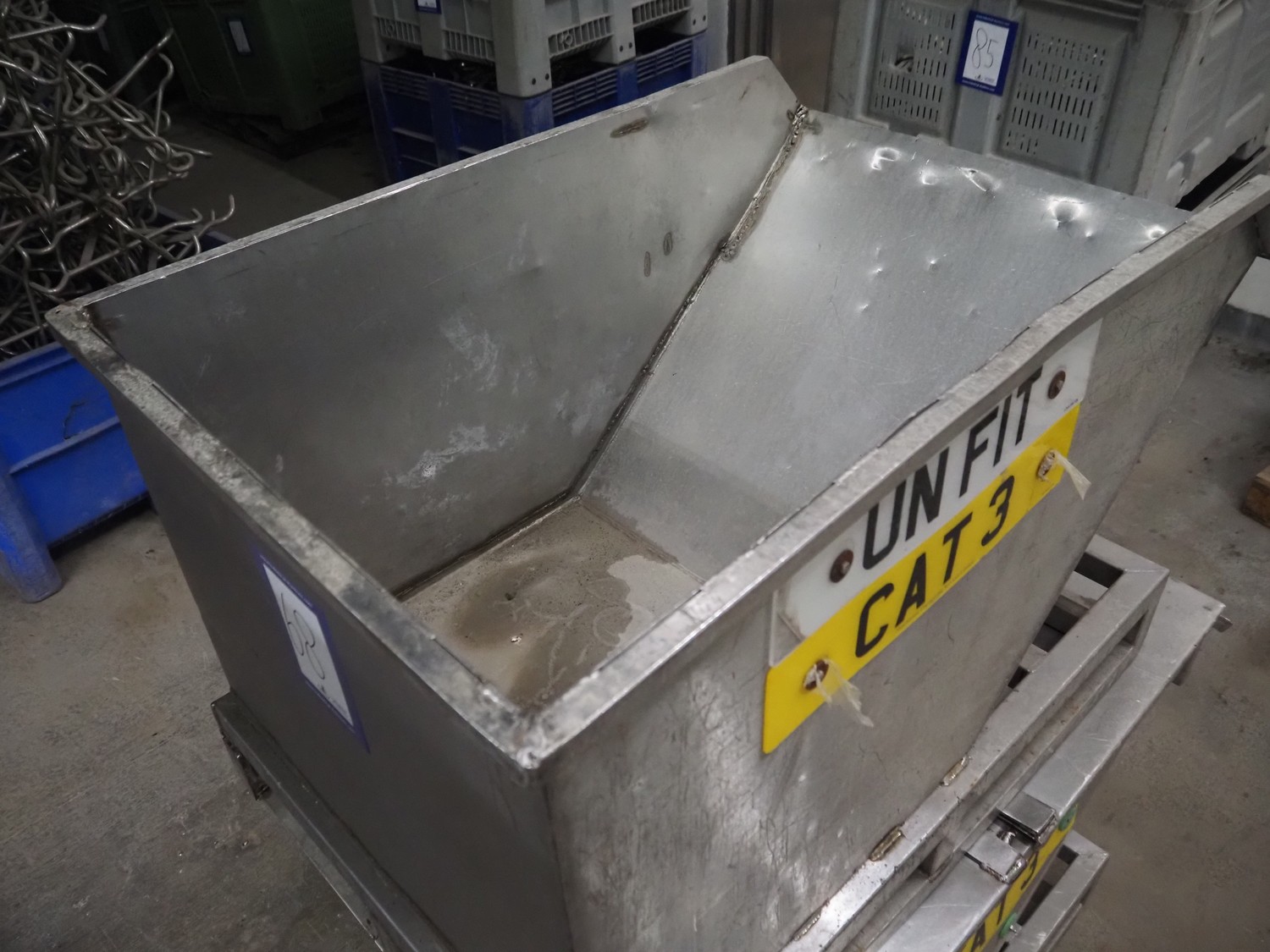 2 s/s tubs, dimensions: (2x) 1200 mm x 800 mm x 800 mm.