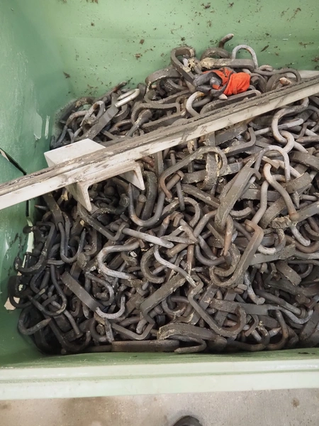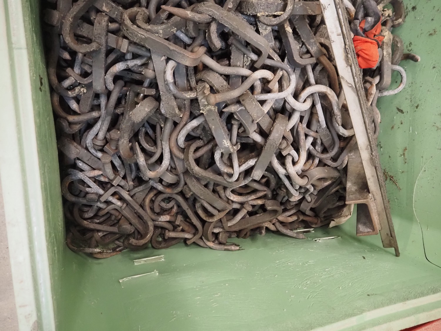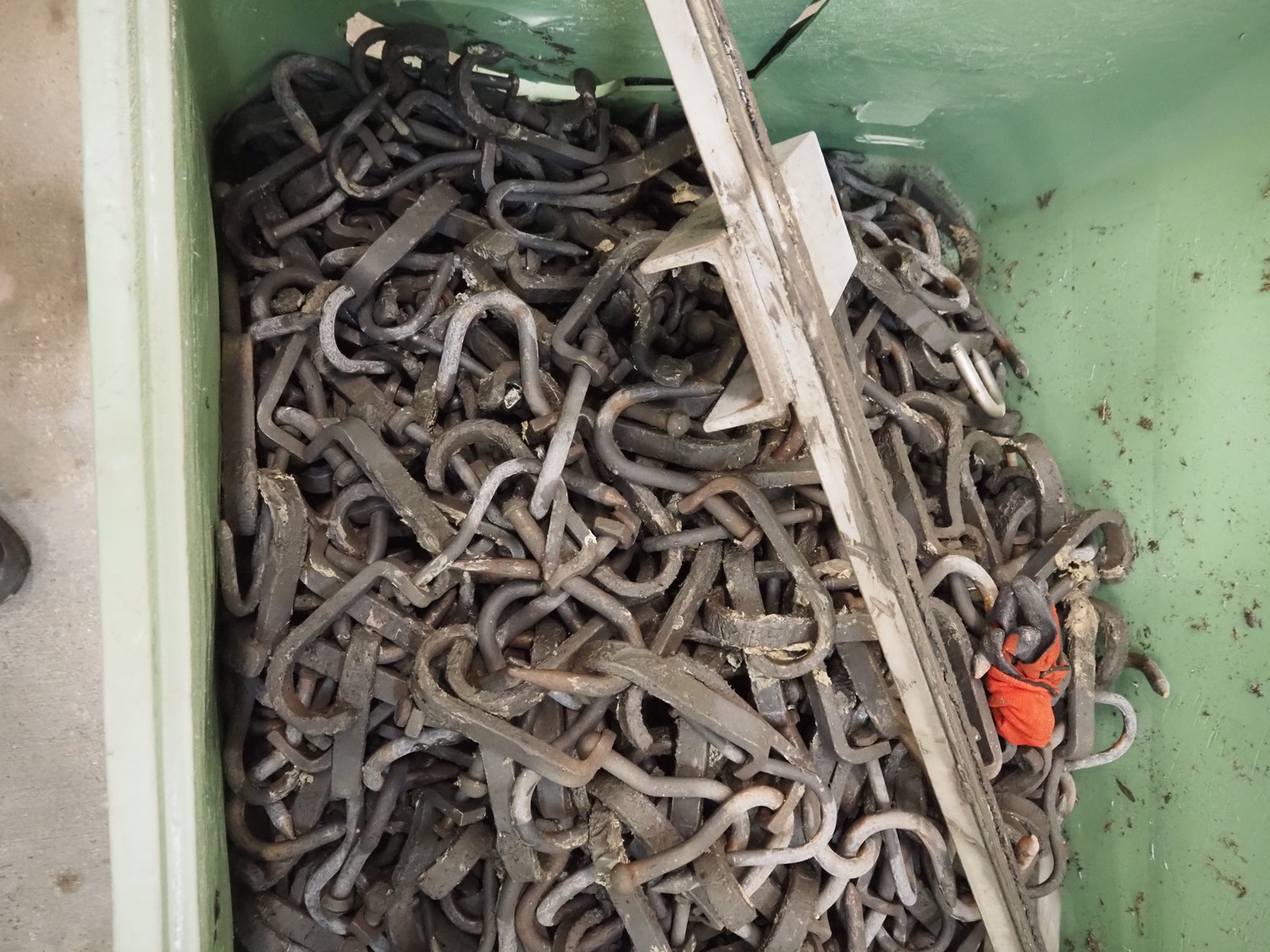 Block pallet box with steel hooks, dimensions: 130 mm x 120 mm.
