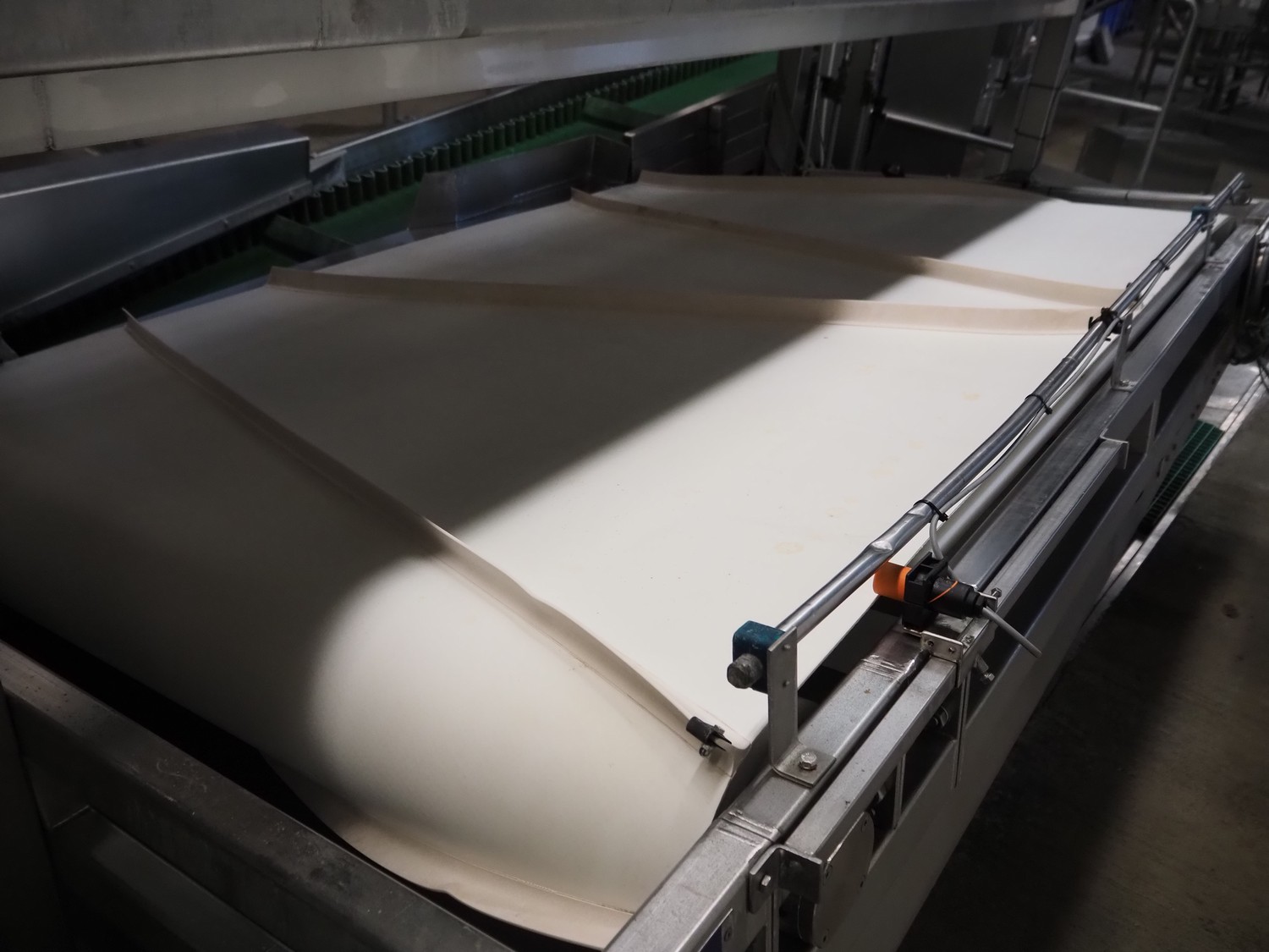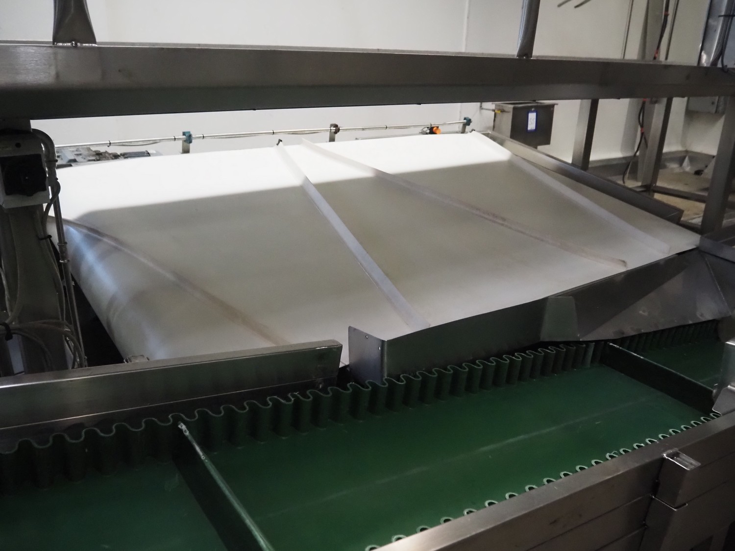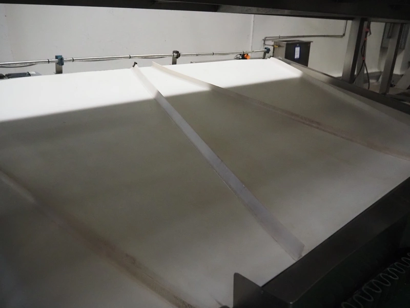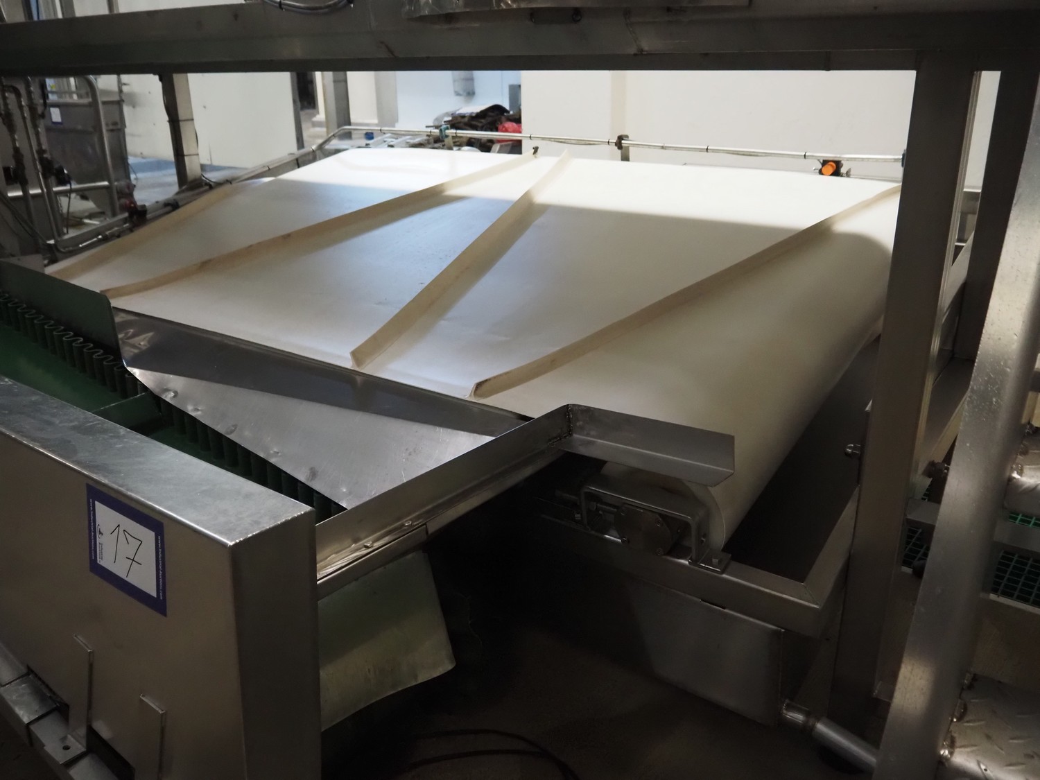 Banss Schlacht- und Fördertechnik GmbH conveyor for white organs, plastic belt, belt width: 1700 mm, total dimensions: 3100 mm x 2100 mm x 700 mm.