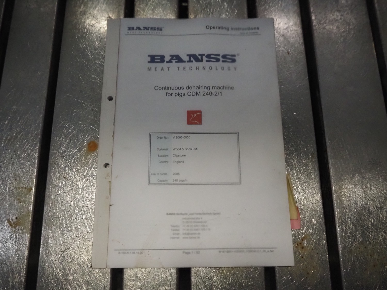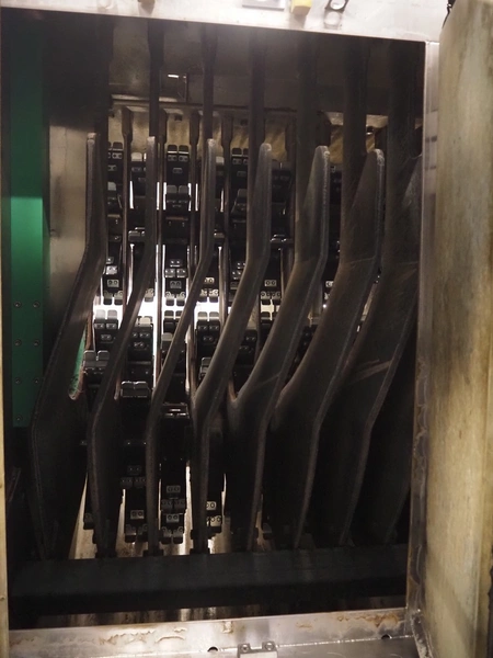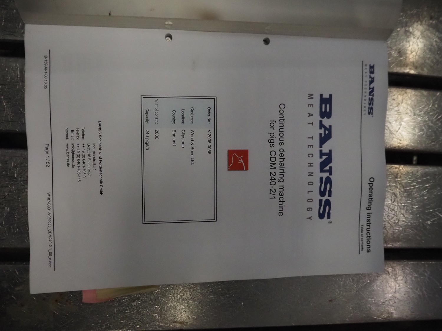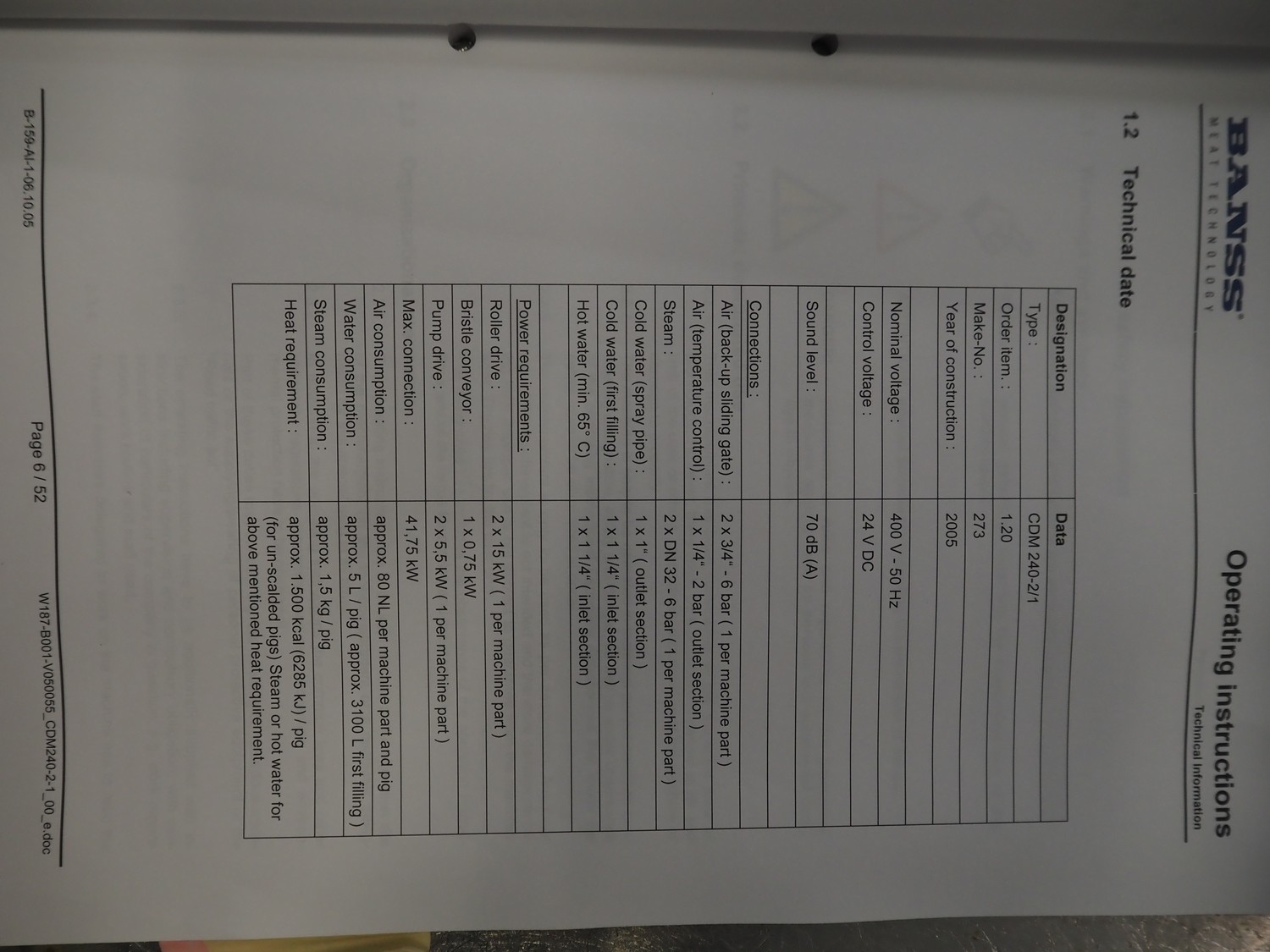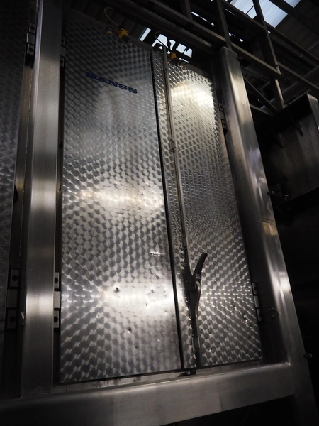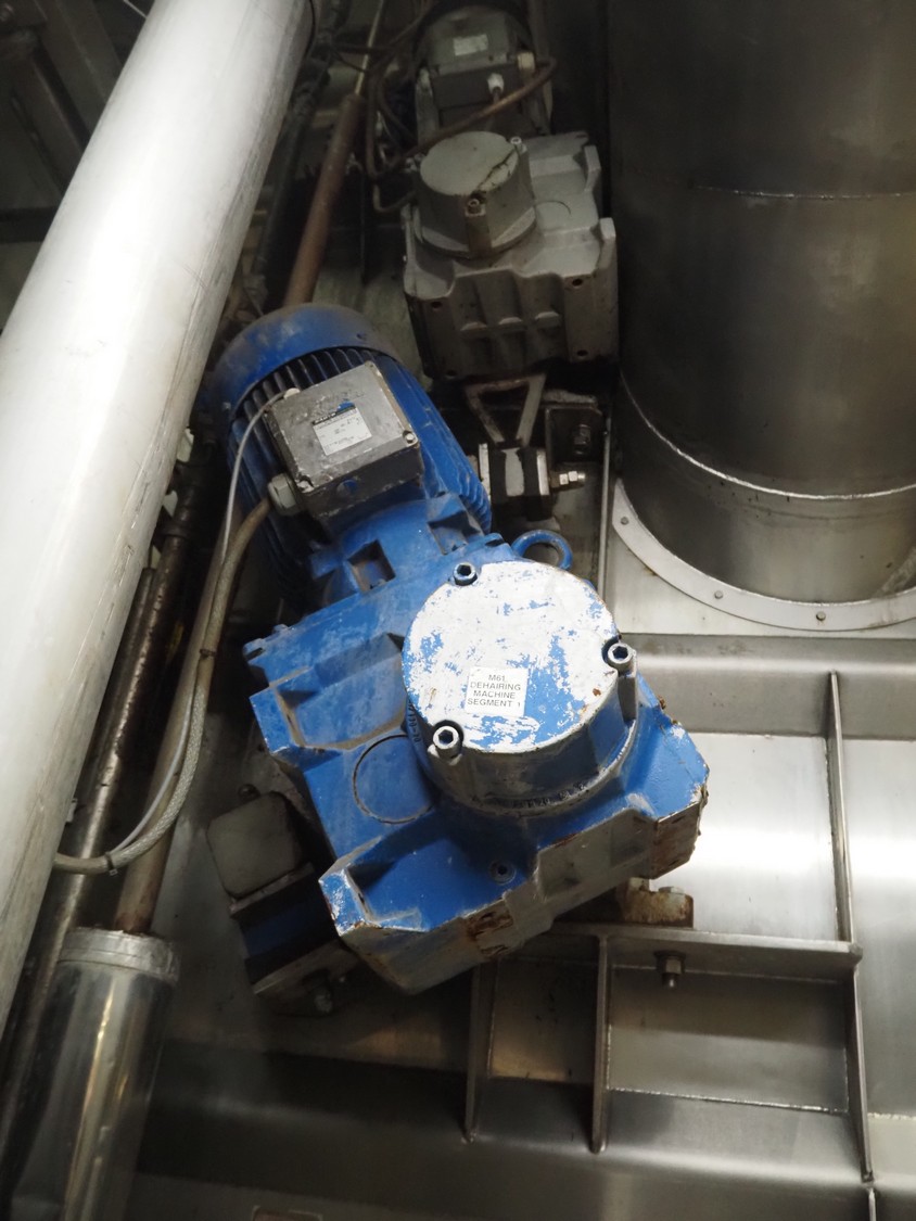 Banss Schlacht- und Fördertechnik GmbH continuous dehairing machine, type: 240-2/1 EV, serial number: 273, year of construction: 2005, 400 V, 50 Hz, 41.75 kW, capacity: 240 pigs / 120 sows per hour, dimensions: (2x) 3500 mm x 2200 mm x 3800 mm.
