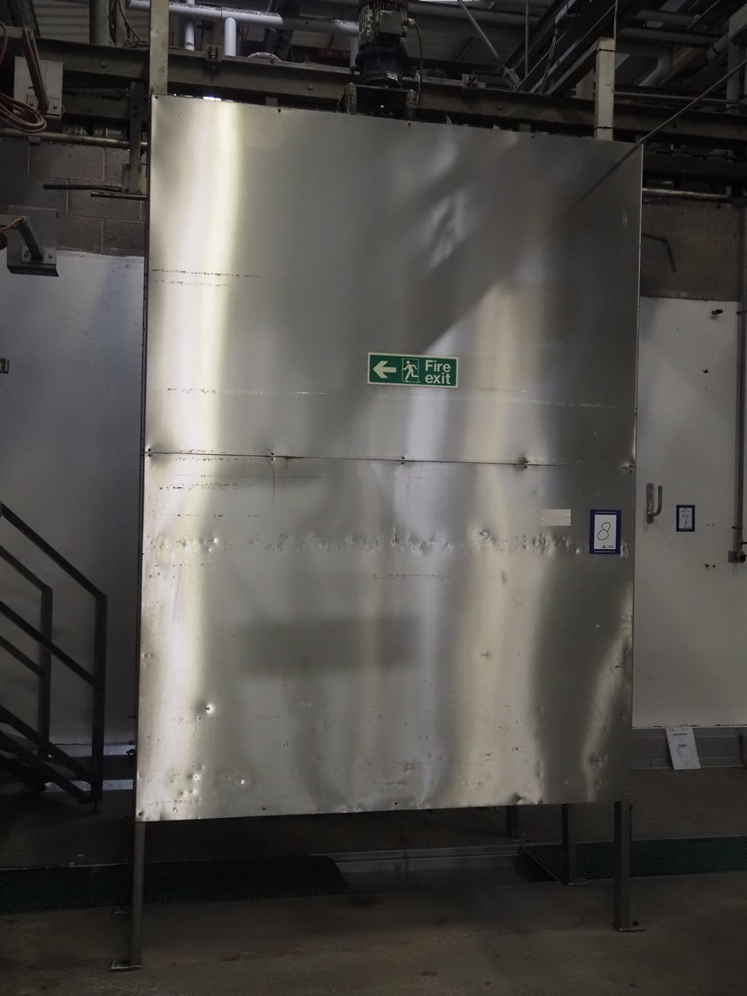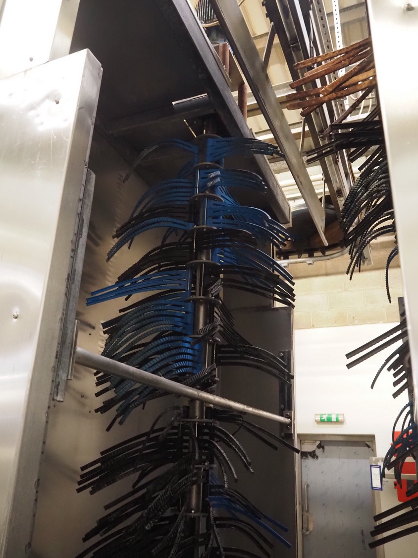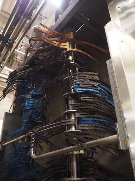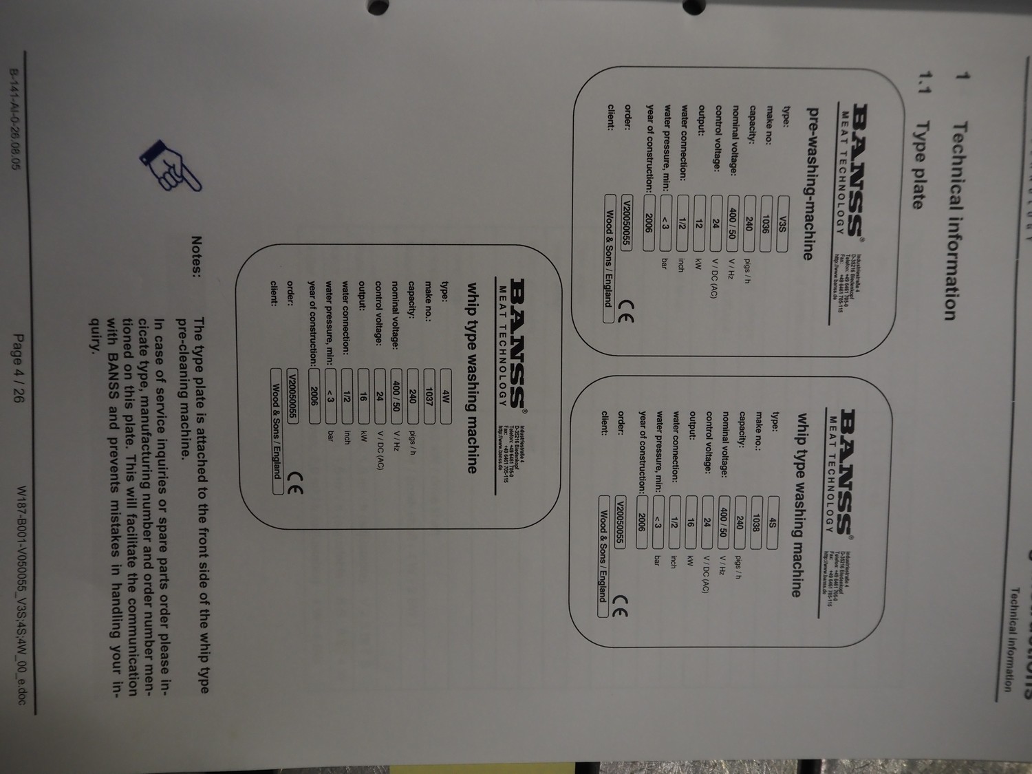 Banss Schlacht- und Fördertechnik GmbH pre-washing machine, type: V3S, serial number: 1036, year of construction: 2006, 400 V, 50 Hz, 12 kW, 3 whips, whip length: 2500 mm, total dimensions: (2x) 2150 mm x 700 mm x 4200 mm.
