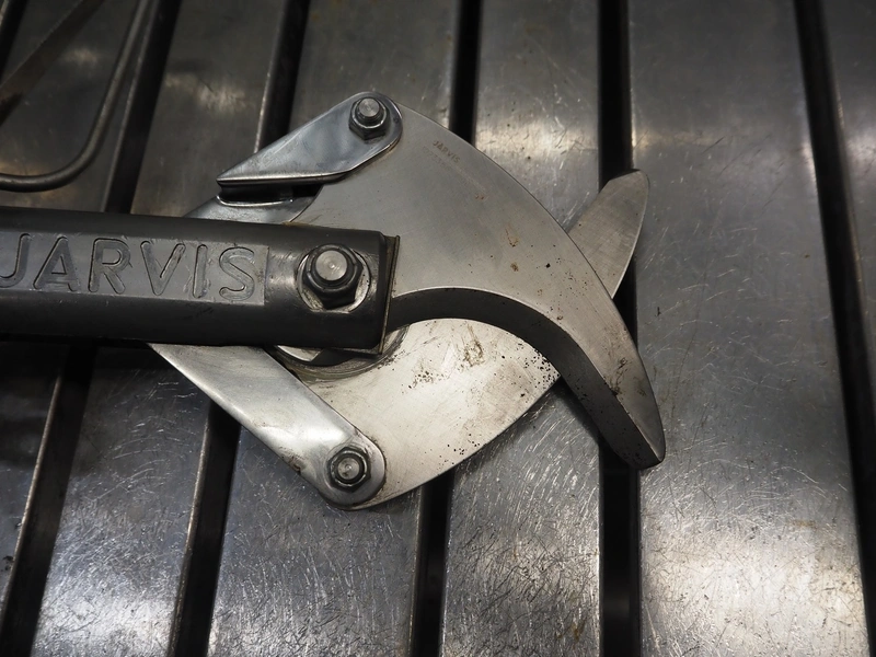 Jarvis leg cutter with balancer and hydraulic unit, dimensions: 660 mm x 270 mm x 150 mm.