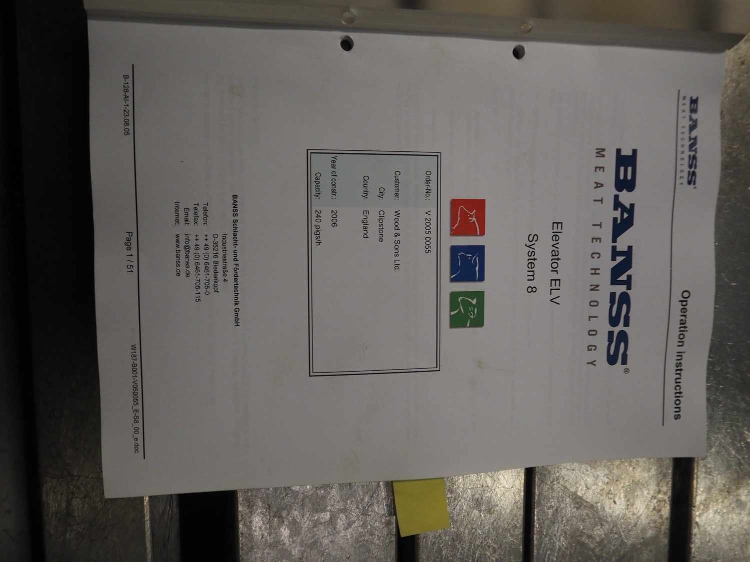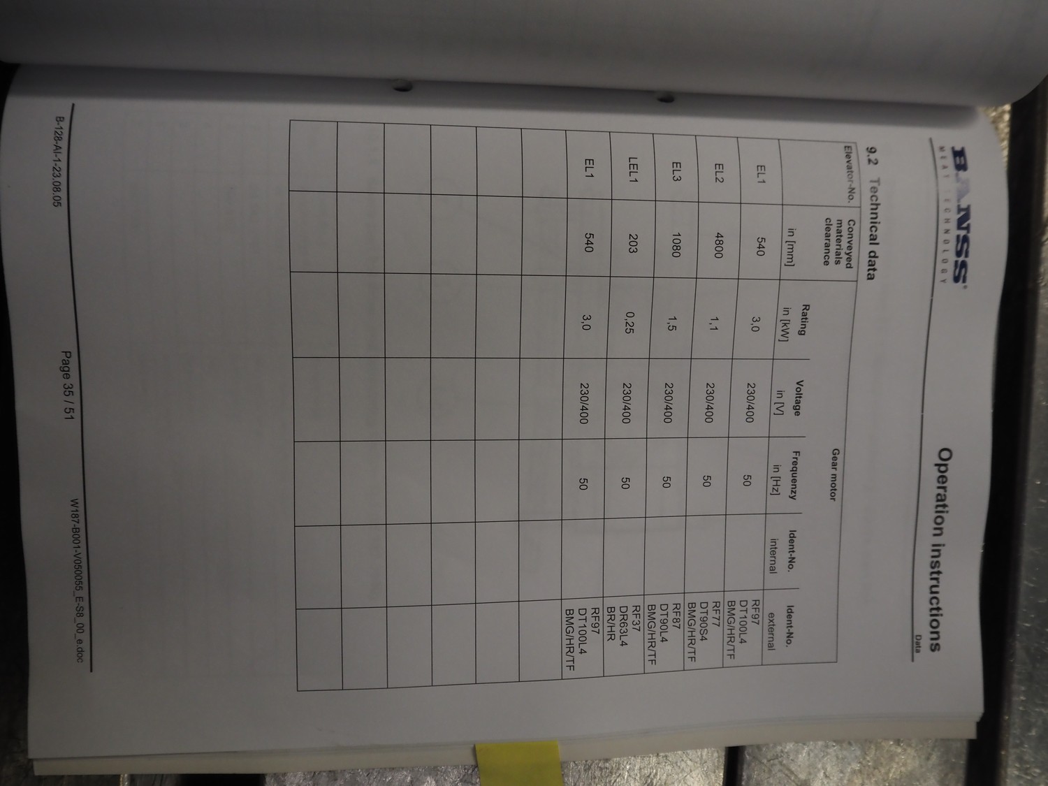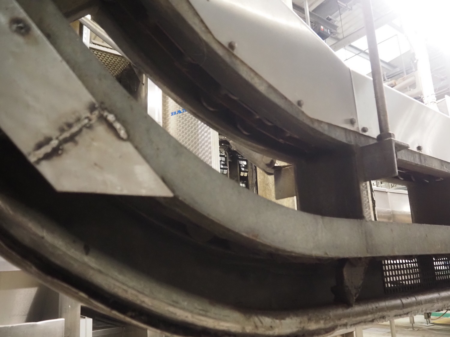 Banss Schlacht- und Fördertechnik GmbH slide shackle continuous bush conveyor chain elevator, year of construction: 2006, 230/400 V, 50 Hz, 3.0 kW, elevating height: 2400 mm, total dimensions: 5500 mm x 250 mm x 2500 mm.
