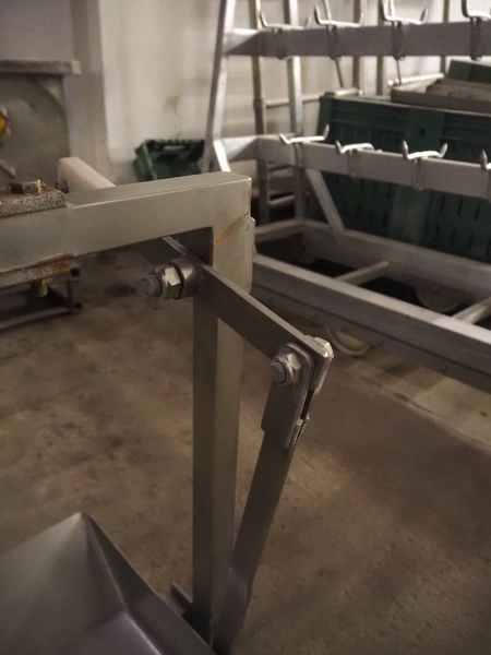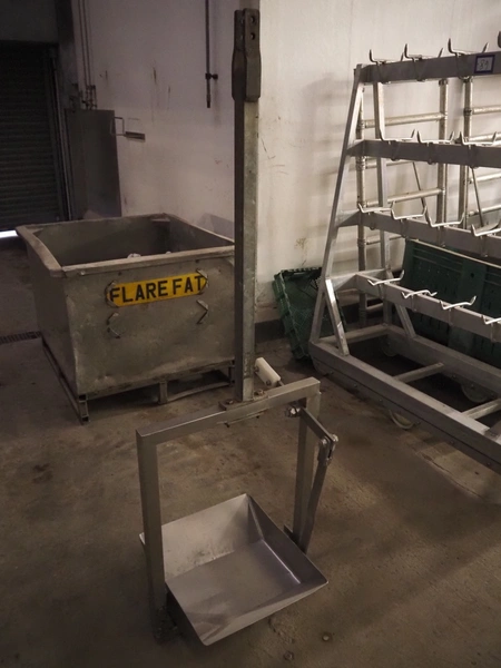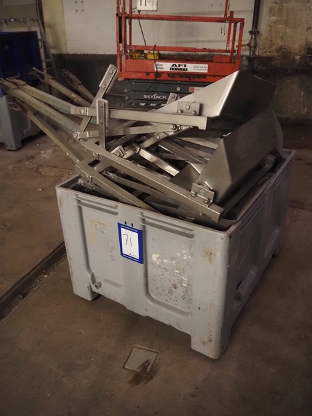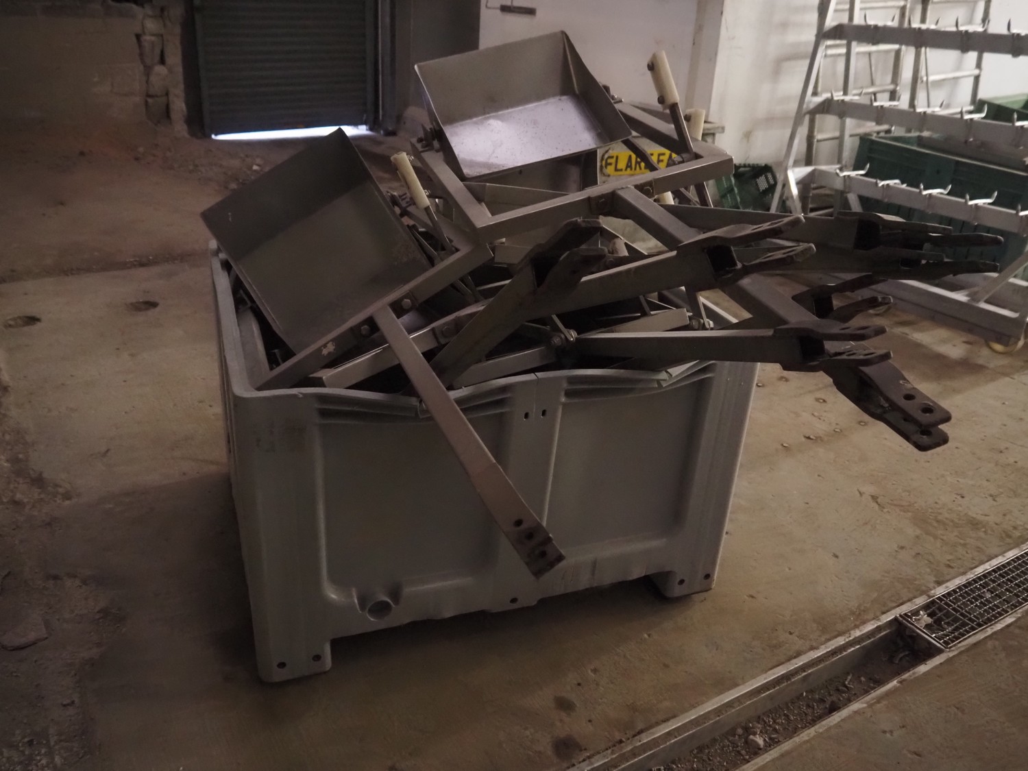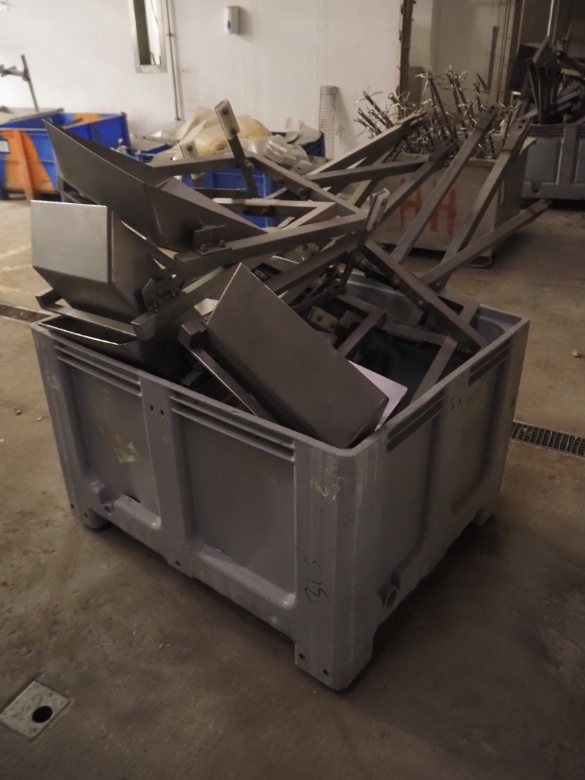 Block pallet box with 8 s/s organ trays, inside dimensions: 440 mm x 500 mm x 130 mm, total dimensions: (8x) 600 mm x 500 mm x 1750 mm.