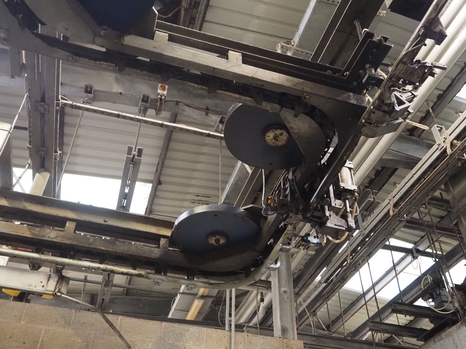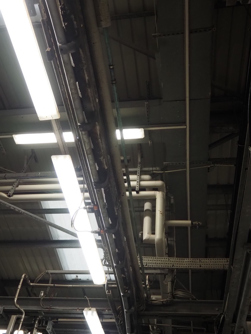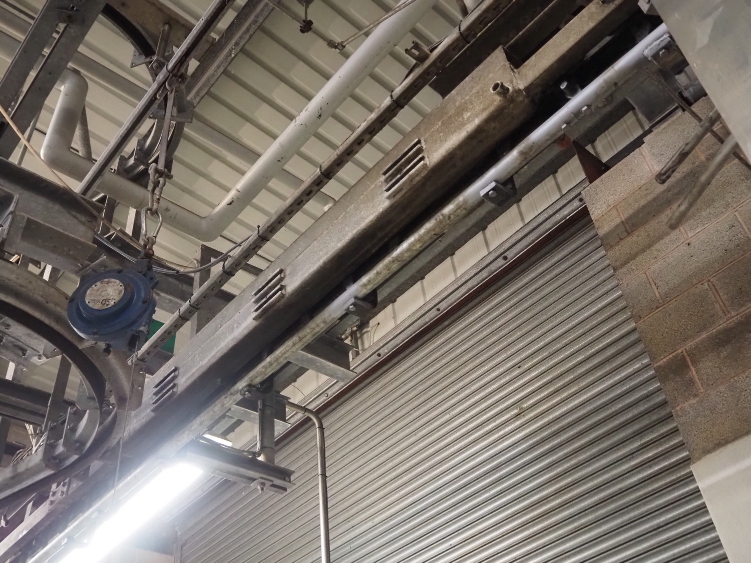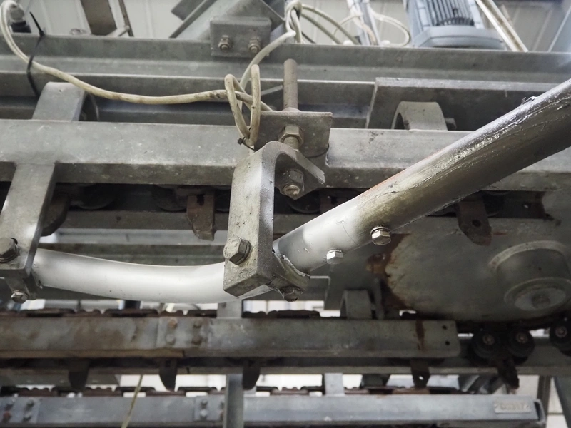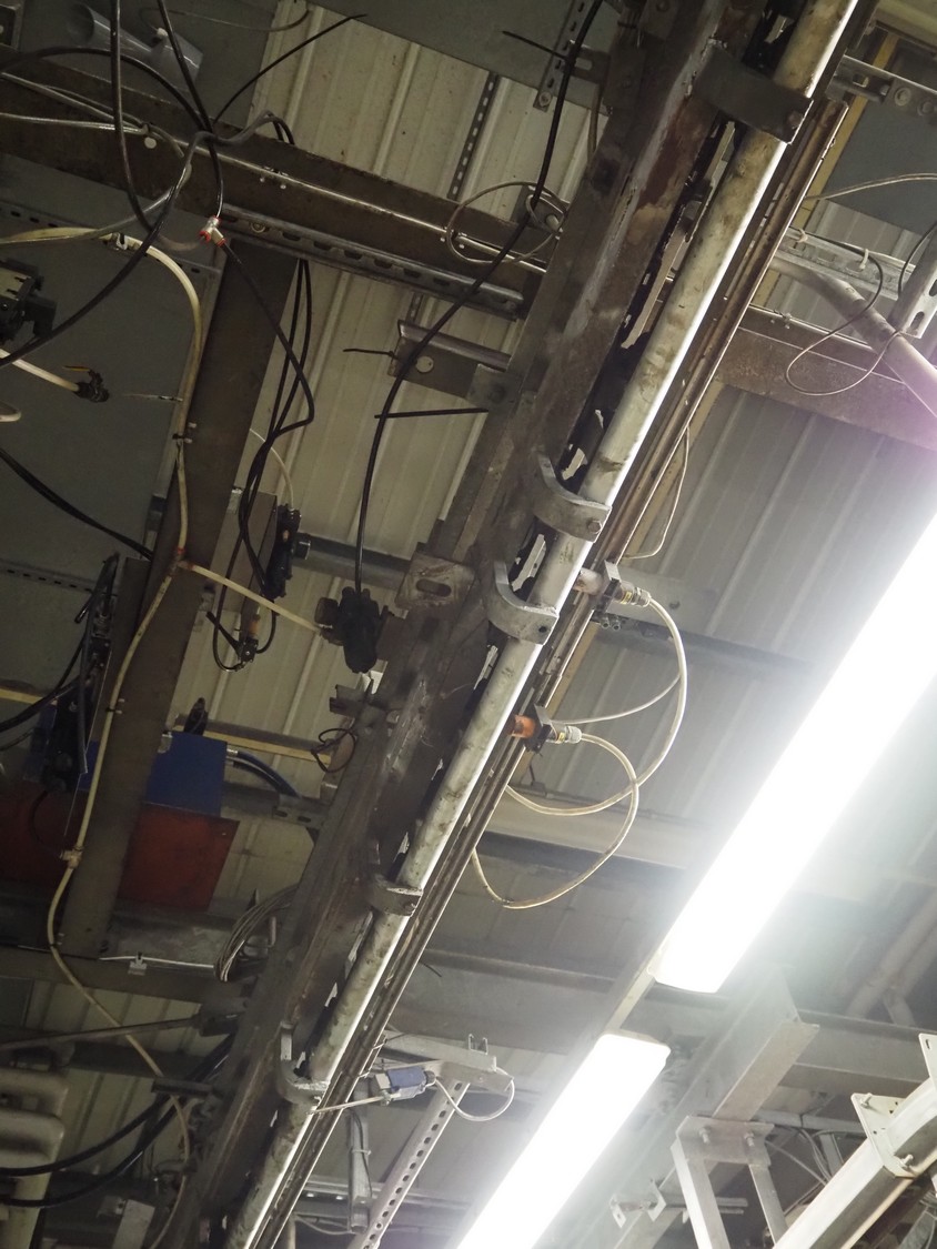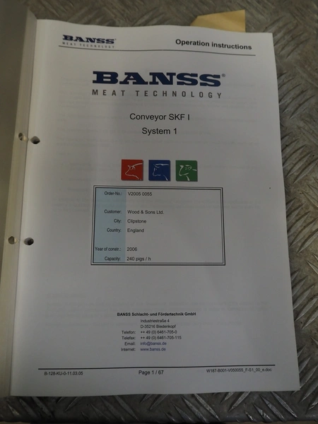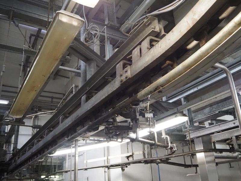 Banss Schlacht- und Fördertechnik GmbH tube rail conveyor, year of construction: 2006, capacity: 240 pigs / 120 sows per hour, tube diameter: 49 mm, approximate length tube rail: 52 meters, approximate length chain conveyor: 100 meters.