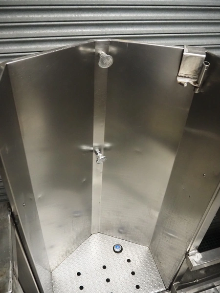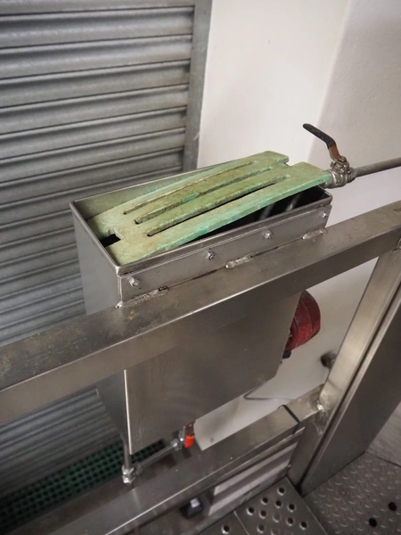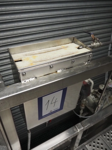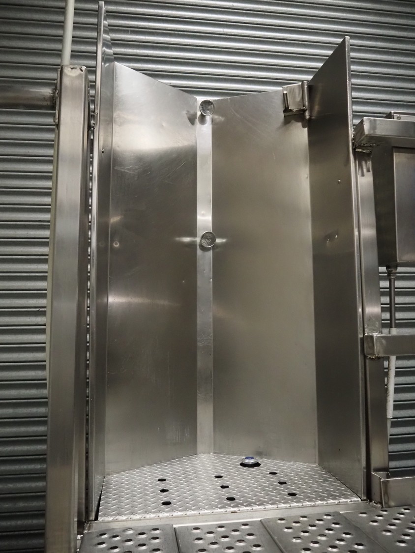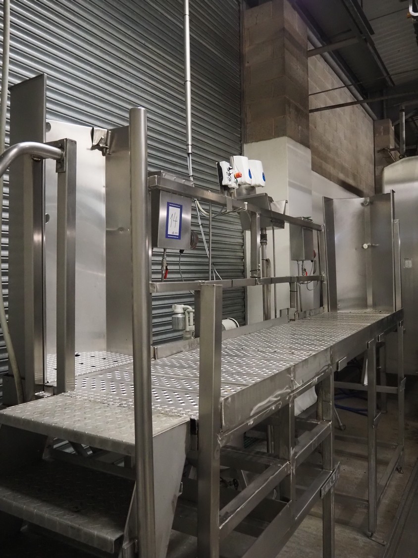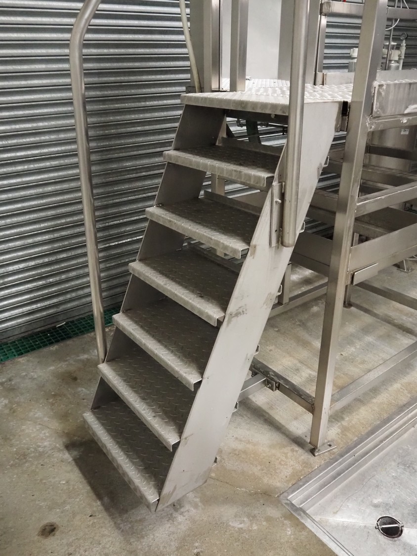 S/s platform with 2 knife sterilizers, sinks and apron washers, working height: 1440 mm, total dimensions: 4700 mm x 1350 mm x 2700 mm.