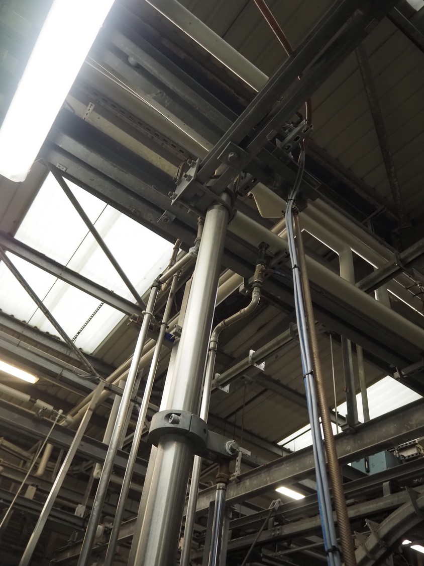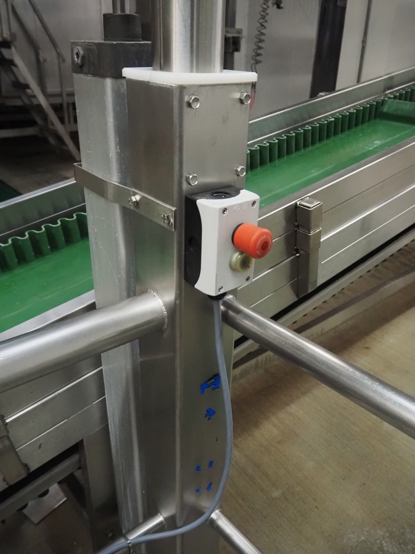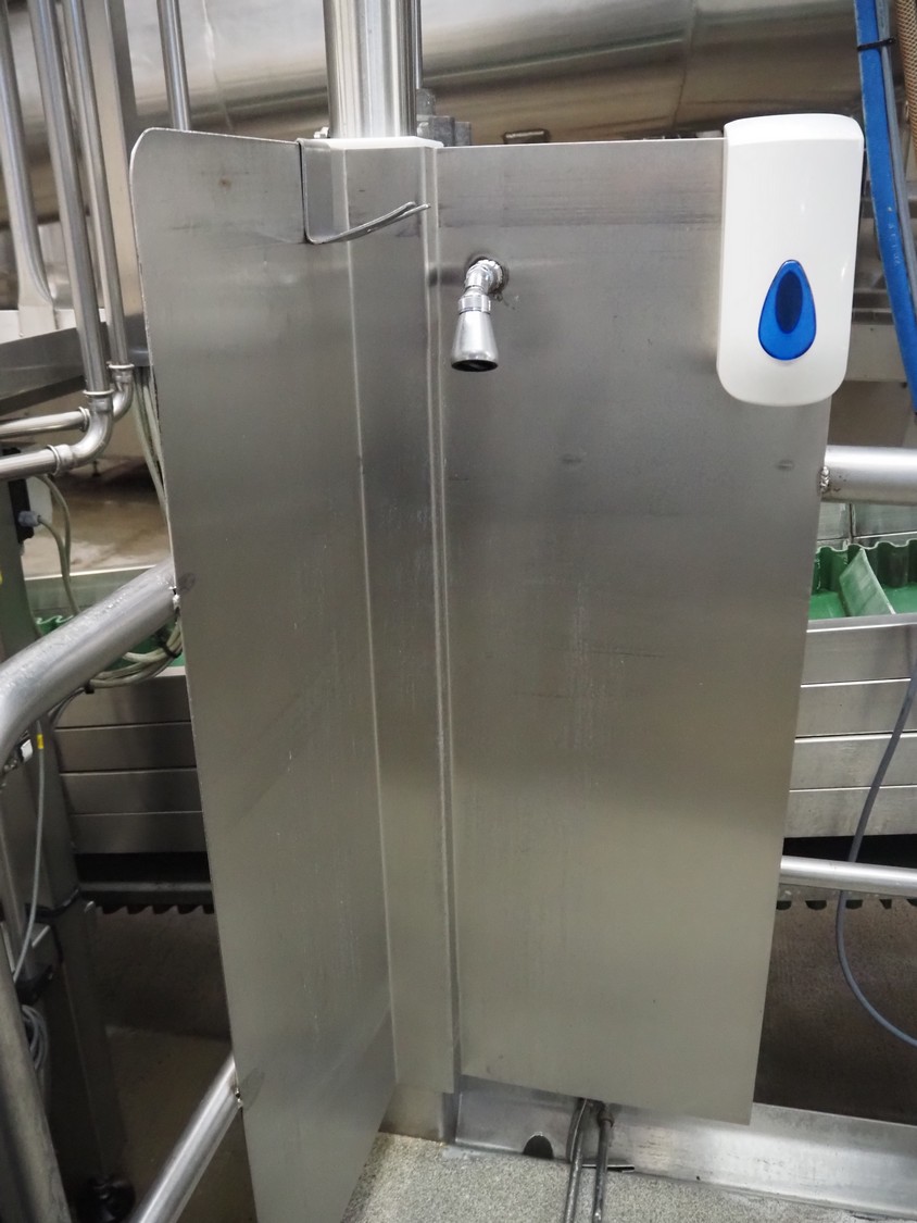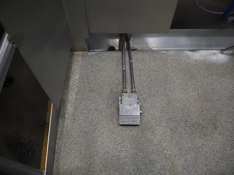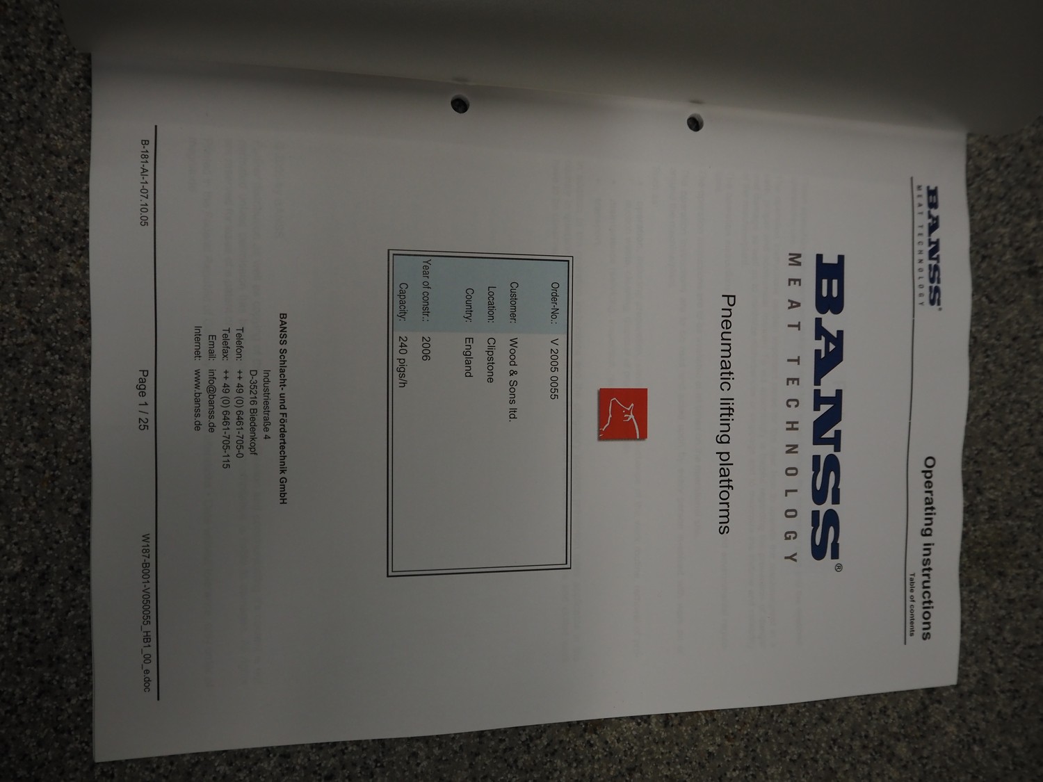 Banss Schlacht- und Fördertechnik GmbH in height adjustable working platform with apron washer and knife sterilizer, type: 2/S, serial number: 1019, year of construction: 2006, capacity: 300 kg, maximum height: 1500 mm, total dimensions: 1800 mm x 1250 mm x 4150 mm.