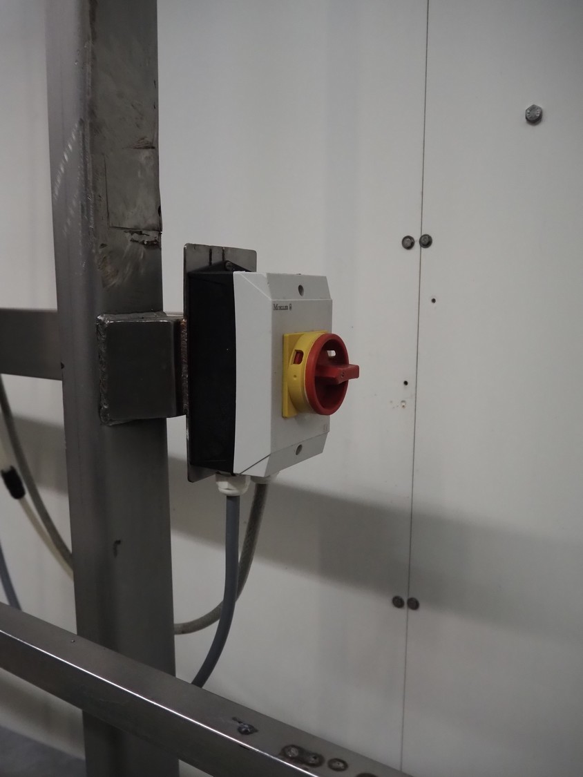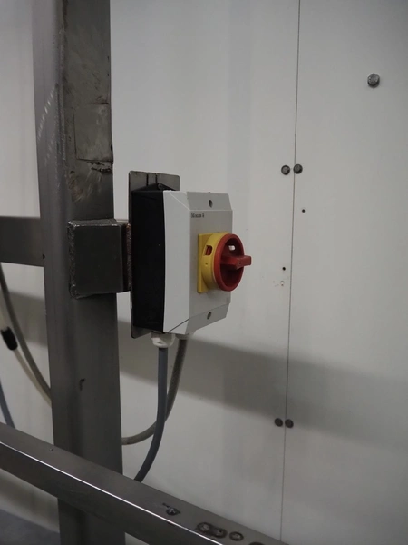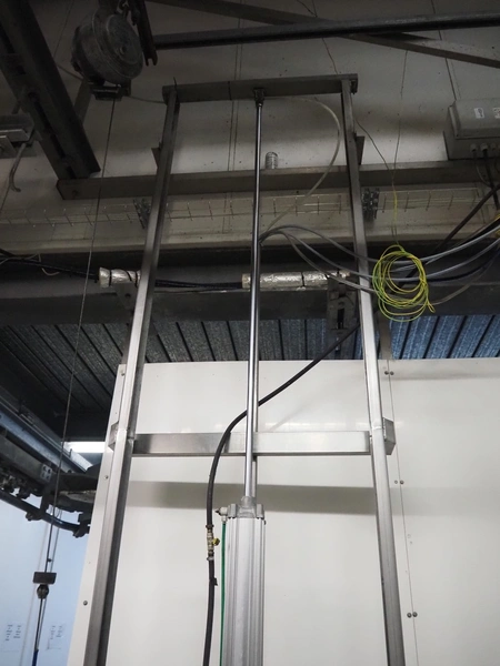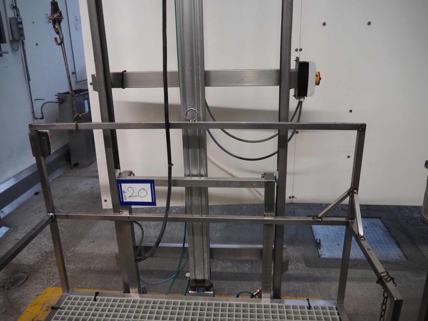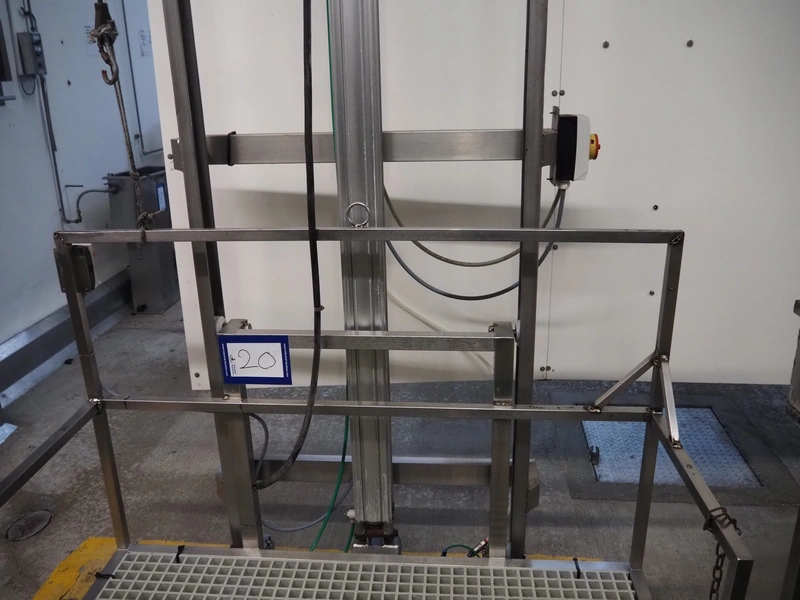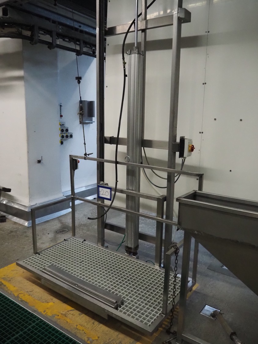 Banss Schlacht- und Fördertechnik GmbH in height adjustable working platform, maximum lifting height: 1880 mm, total dimensions: 1580 mm x 1050 mm x 4400 mm.