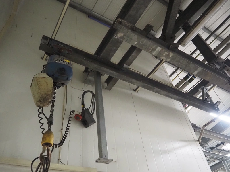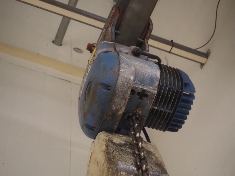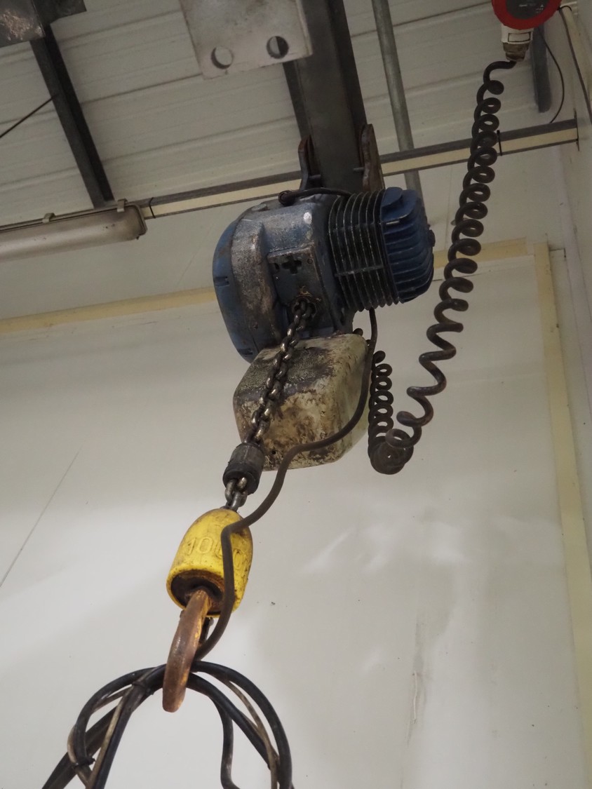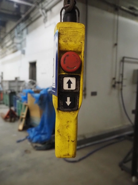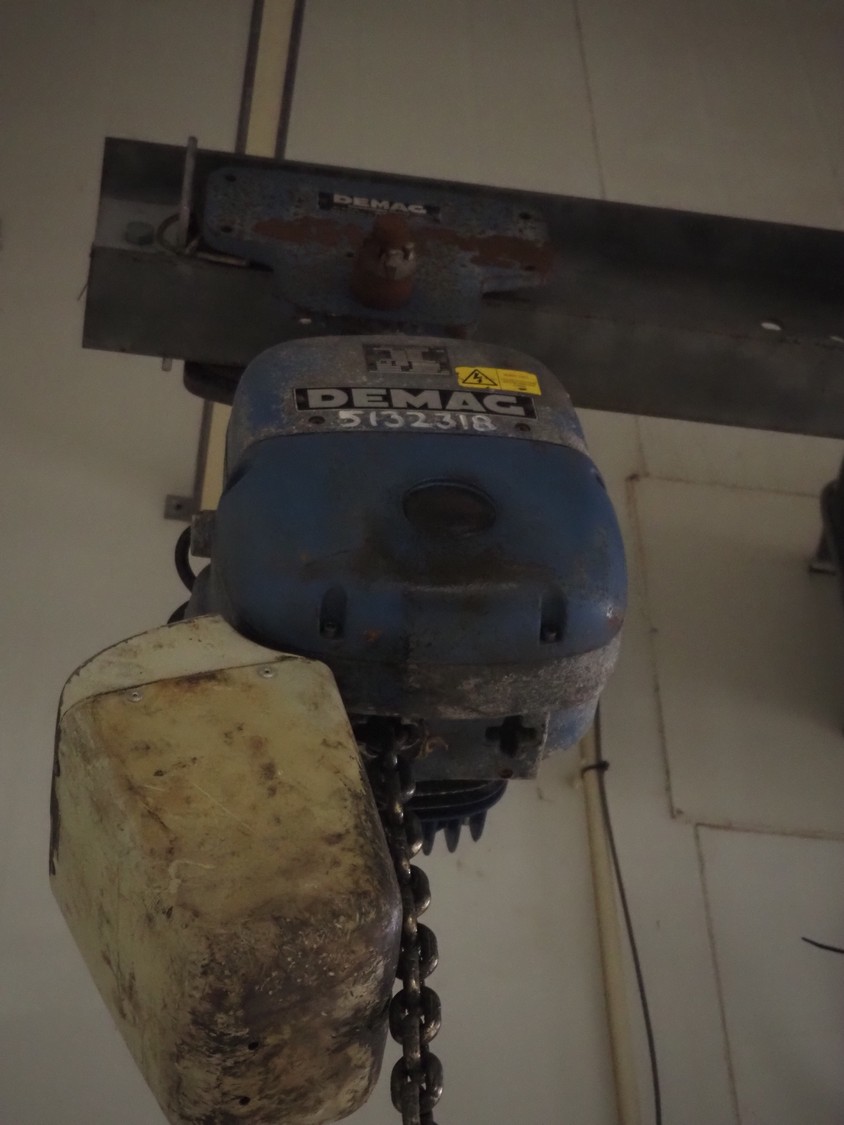 Demag hoist, dimensions: 300 mm x 300 mm x 600 mm.
