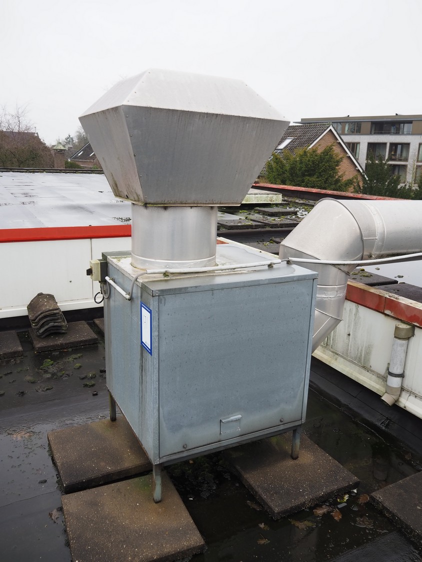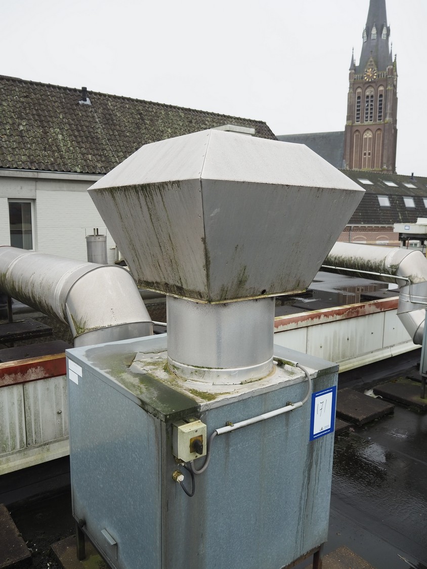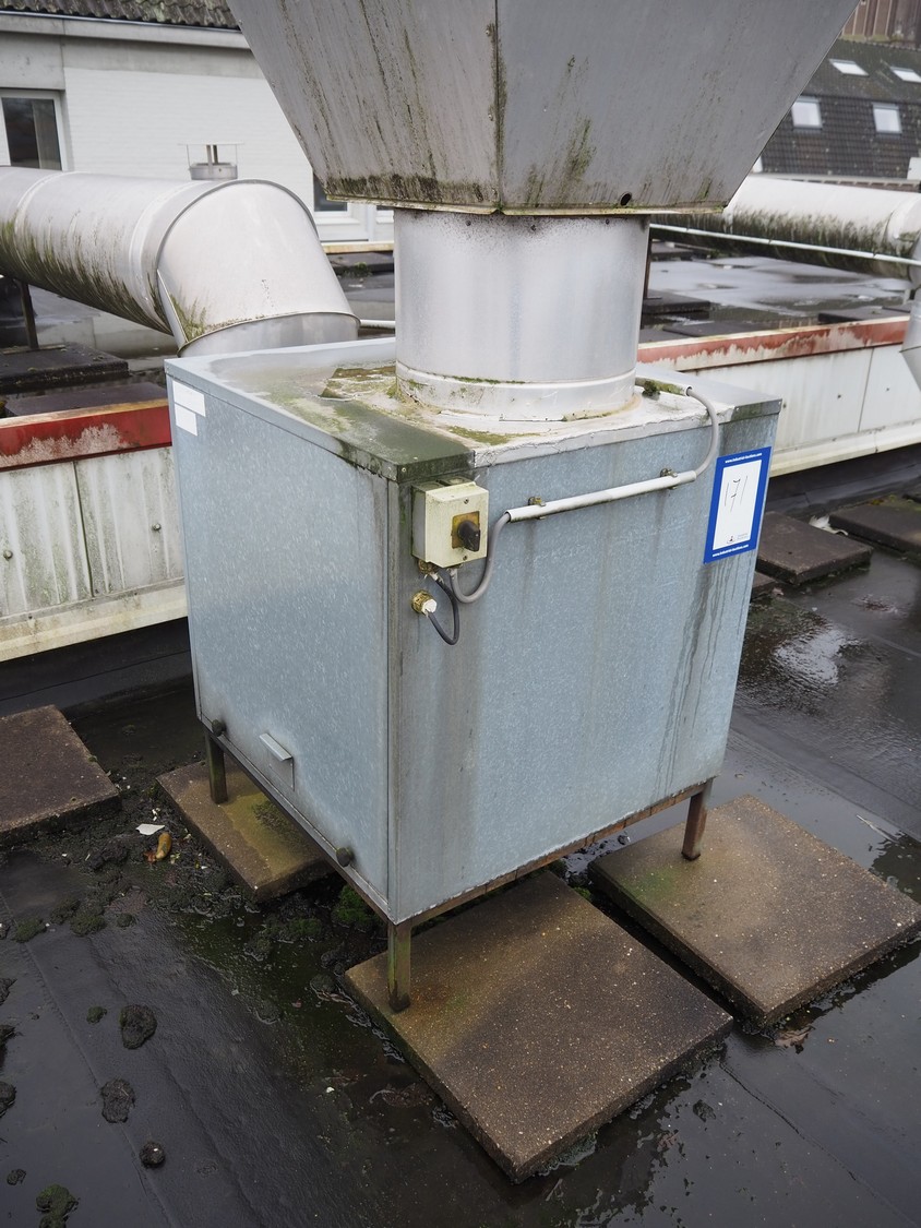 Roof fan, dimensions: 800 mm x 800 mm x 1800 mm.