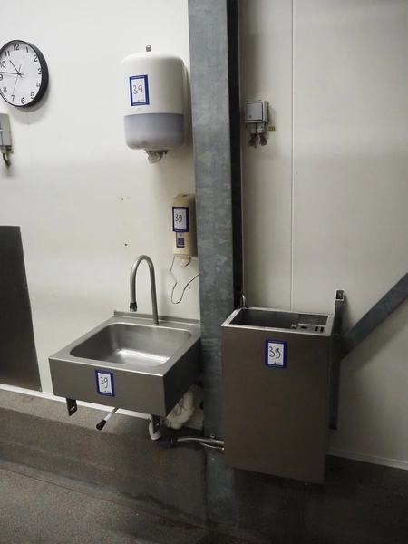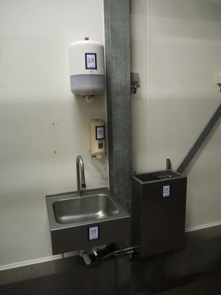 S/s sink, dimensions: 500 mm x 500 mm x 600 mm, s/s knife sterilizer, dimensions: 370 mm x 220 mm x 570 mm, soap dispenser, dimensions: 100 mm x 100 mm x 270 mm, paper dispenser, dimensions: 250 mm x 250 mm x 350 mm.