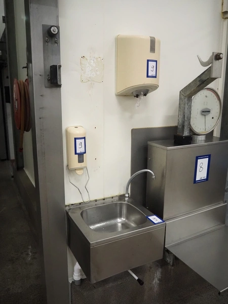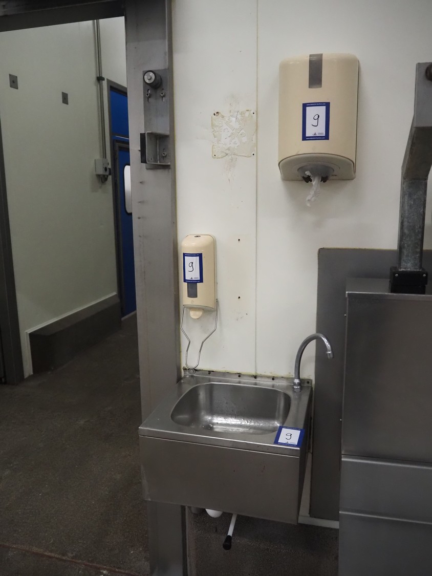 S/s sink, dimensions: 470 mm x 410 mm x 250 mm, soap dispenser, dimensions: 100 mm x 100 mm x 270 mm, paper dispenser, dimensions: 250 mm x 250 mm x 350 mm.