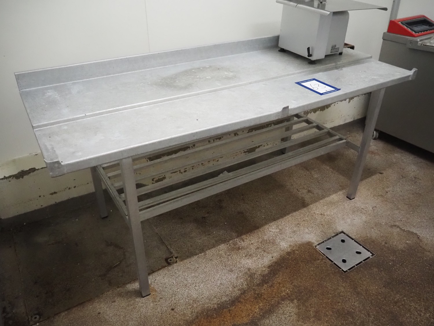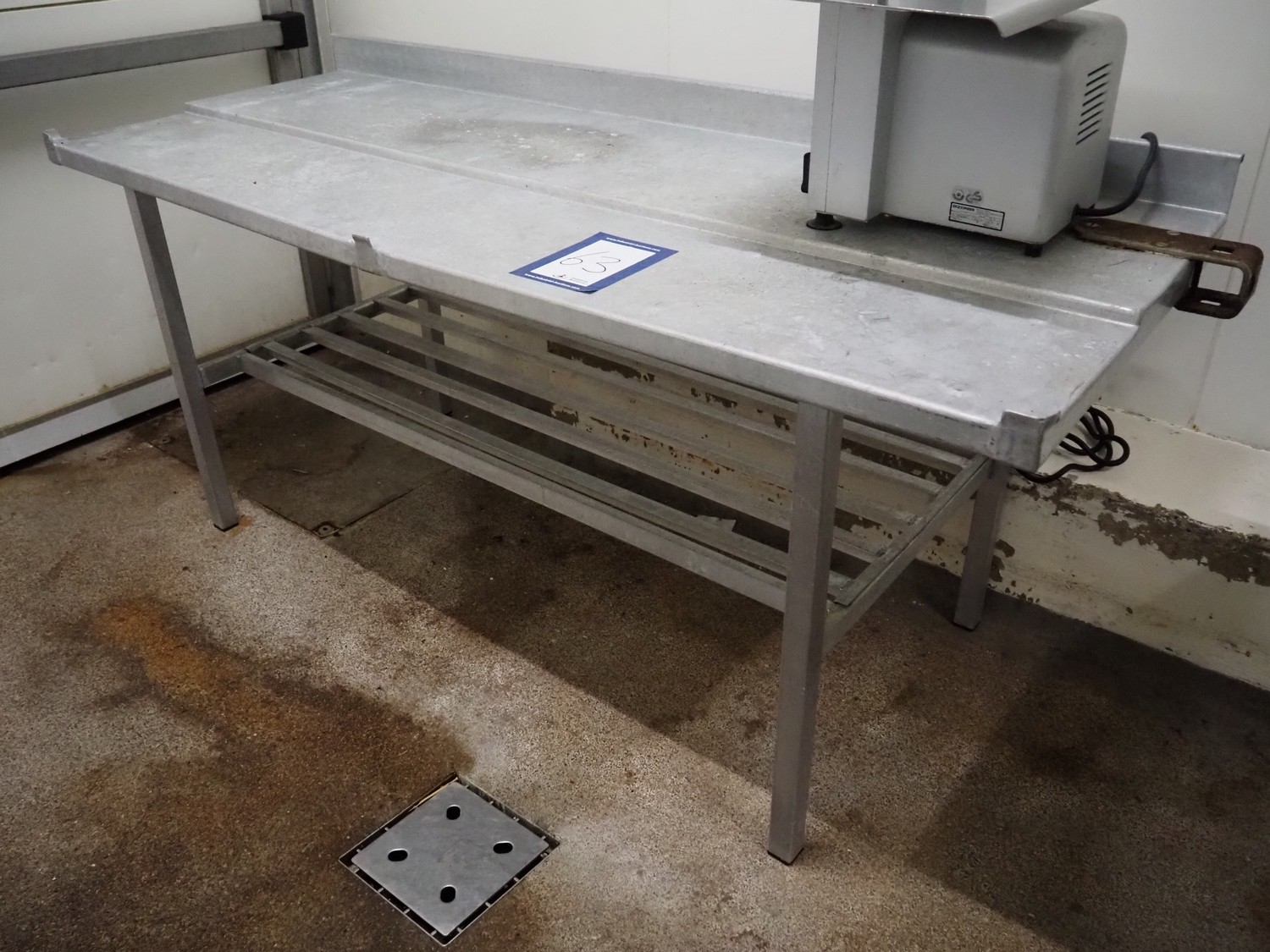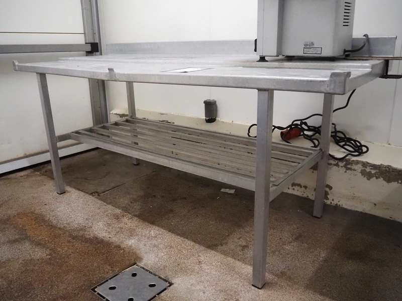 Steel table, dimensions: 2000 mm x 750 mm x 950 mm.