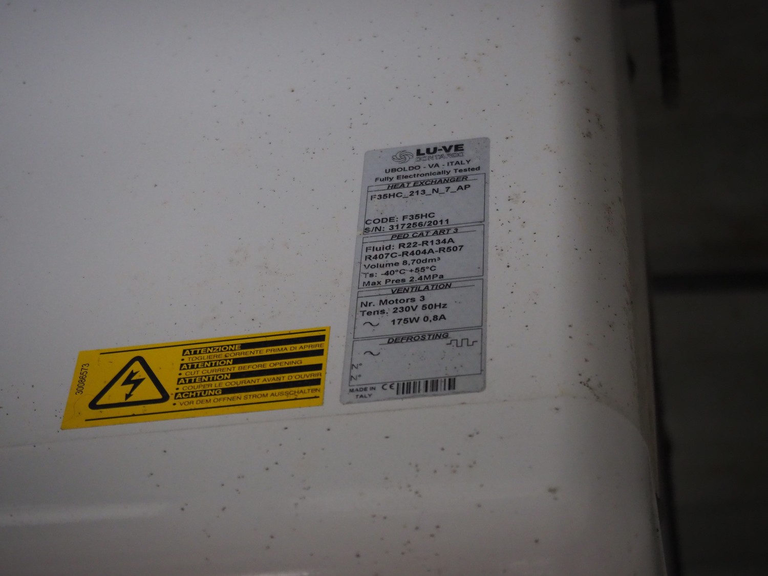 LU-VE evaporator, type: F35HC_213_N_7_AP, serial number: 317256/2011, 230 V, 50 Hz, 175 W, 0.8 A, refrigerant: R22/R134a/R407c/R404a/R507, dimensions: 2000 mm x 400 mm x 500 mm.