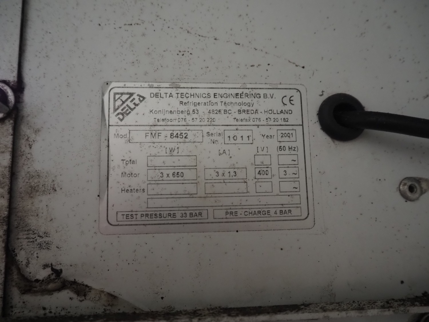 Delta Technics Engineering B.V. evaporator, model: FMF-8452, serial number: 1011, year of construction: 2001, 400 V, 3 Ph, 50 Hz, 3 A, 650 W, 2 fans, dimensions: 2000 mm x 600 mm x 600 mm.