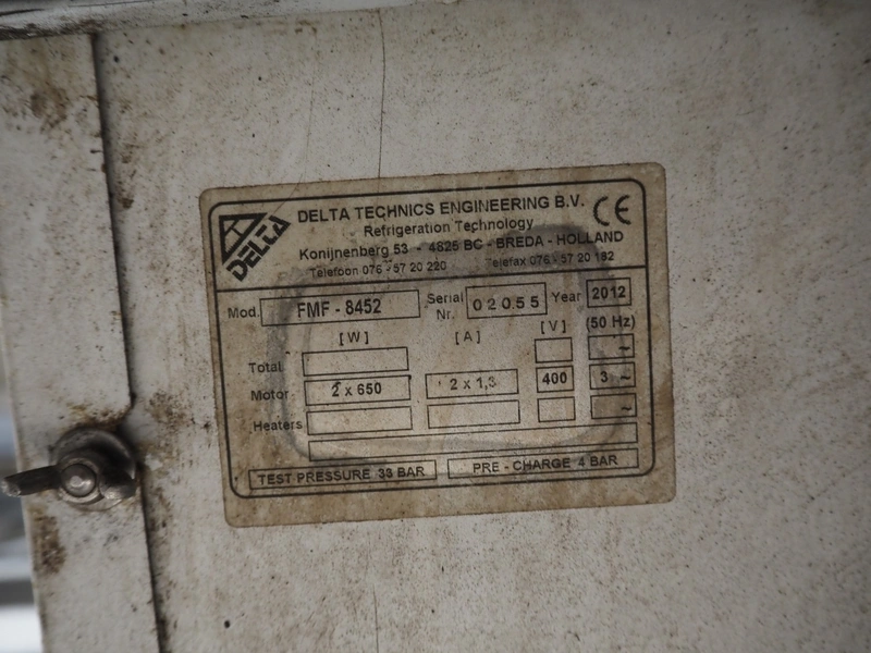 Delta Technics Engineering B.V. evaporator, model: FMF-8452, serial number: 02055, year of construction: 2012, 400 V, 3 Ph, 50 Hz, 3 A, 650 W, 2 fans, dimensions: 2000 mm x 600 mm x 600 mm.