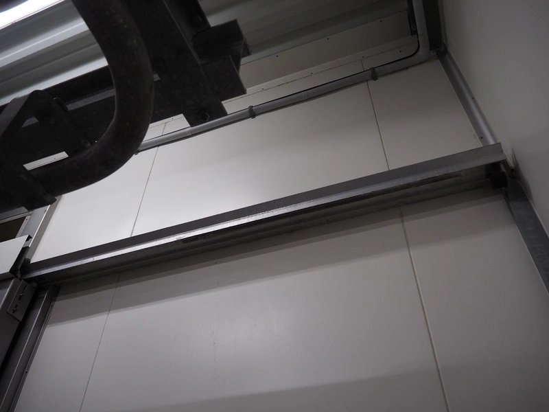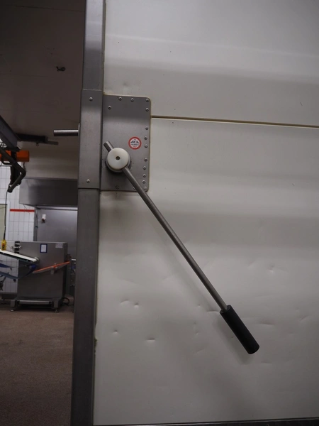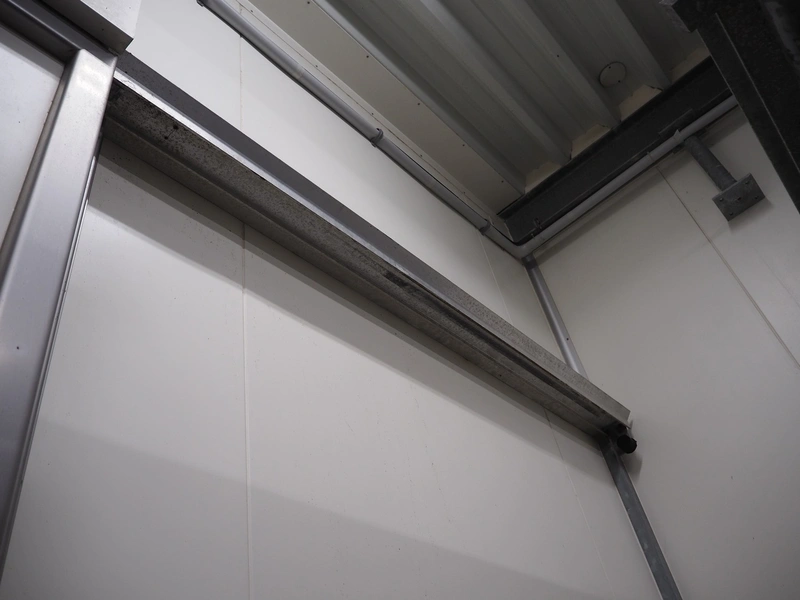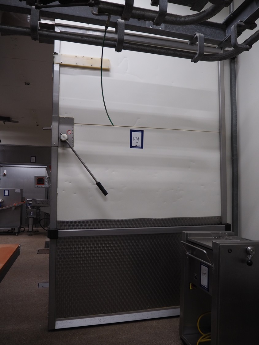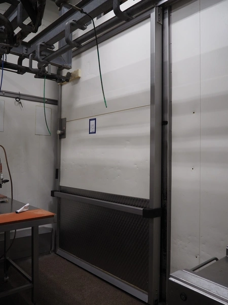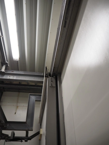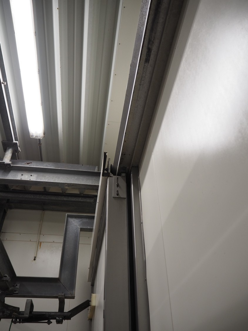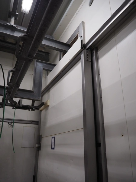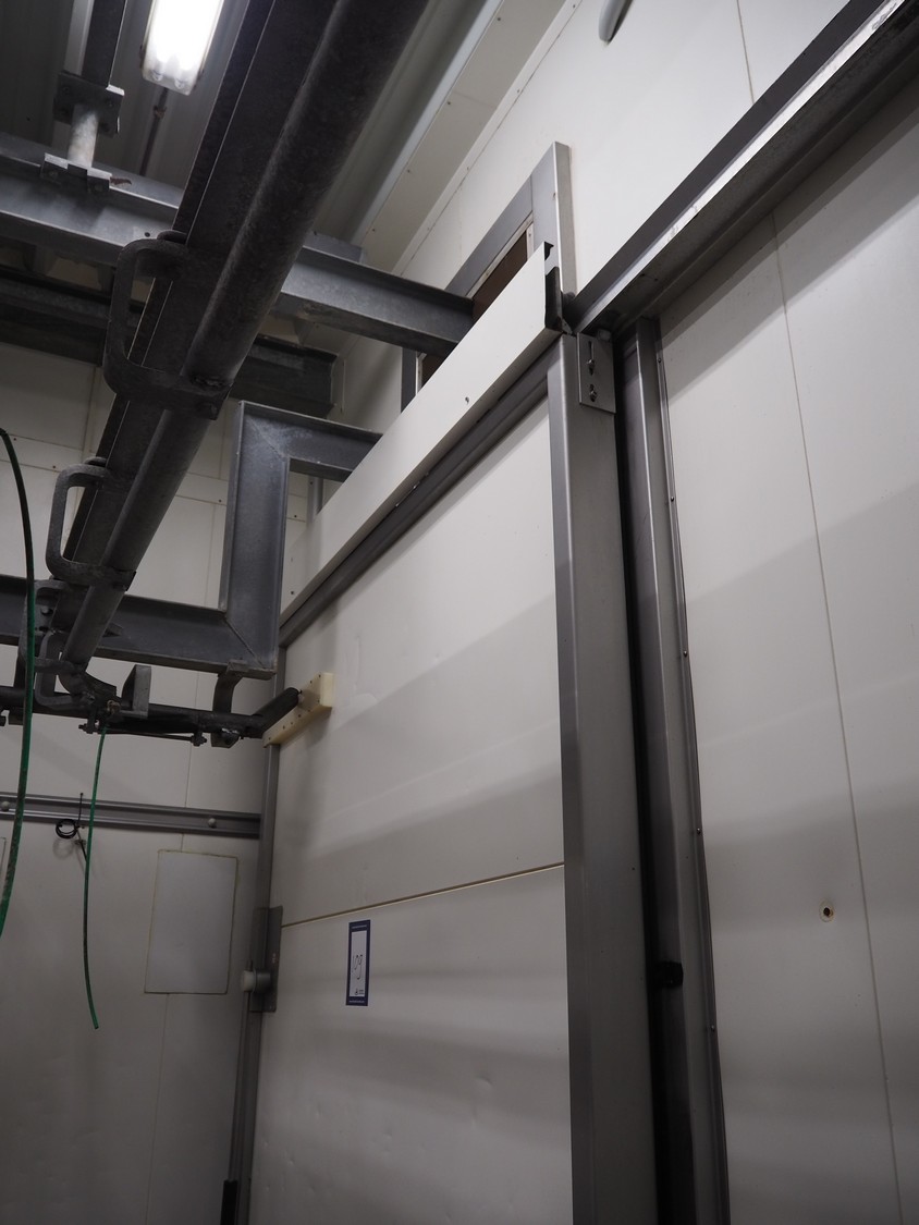 S/s refrigeration sliding door, dimensions door: 1900 mm x 3000 mm, thickness: 115 mm, rail length: 3850 mm.