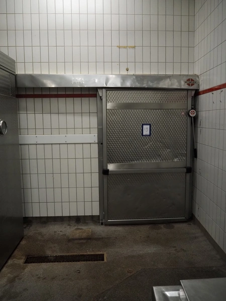 Metaflex s/s refrigeration sliding door, dimensions door: 1420 mm x 2300 mm, thickness: 115 mm, rail length: 3200 mm.